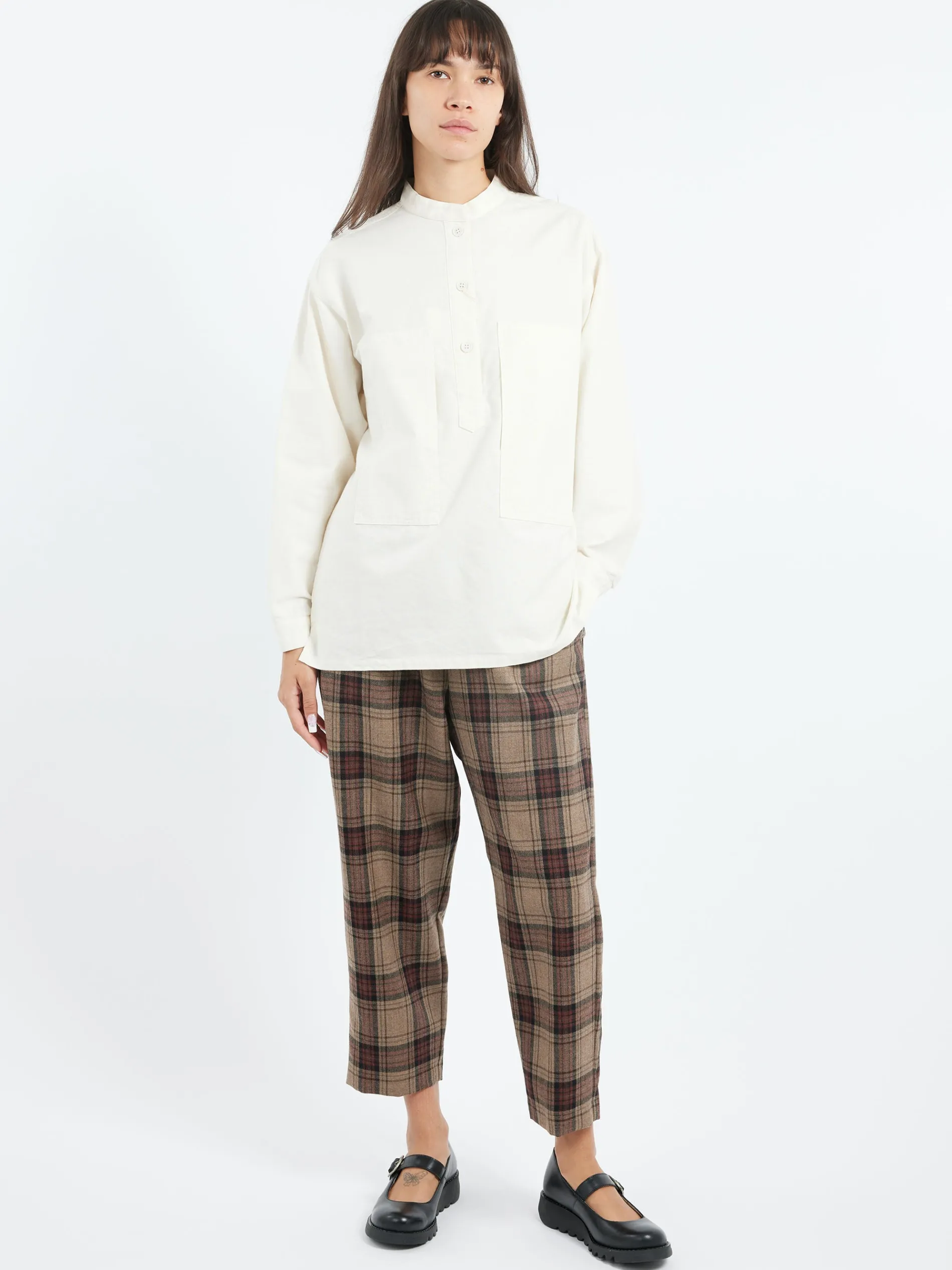Sarahwear loose-fitting pullover shirt made from a woven Oxford fabric that has been garment-washed for a natural luster.
