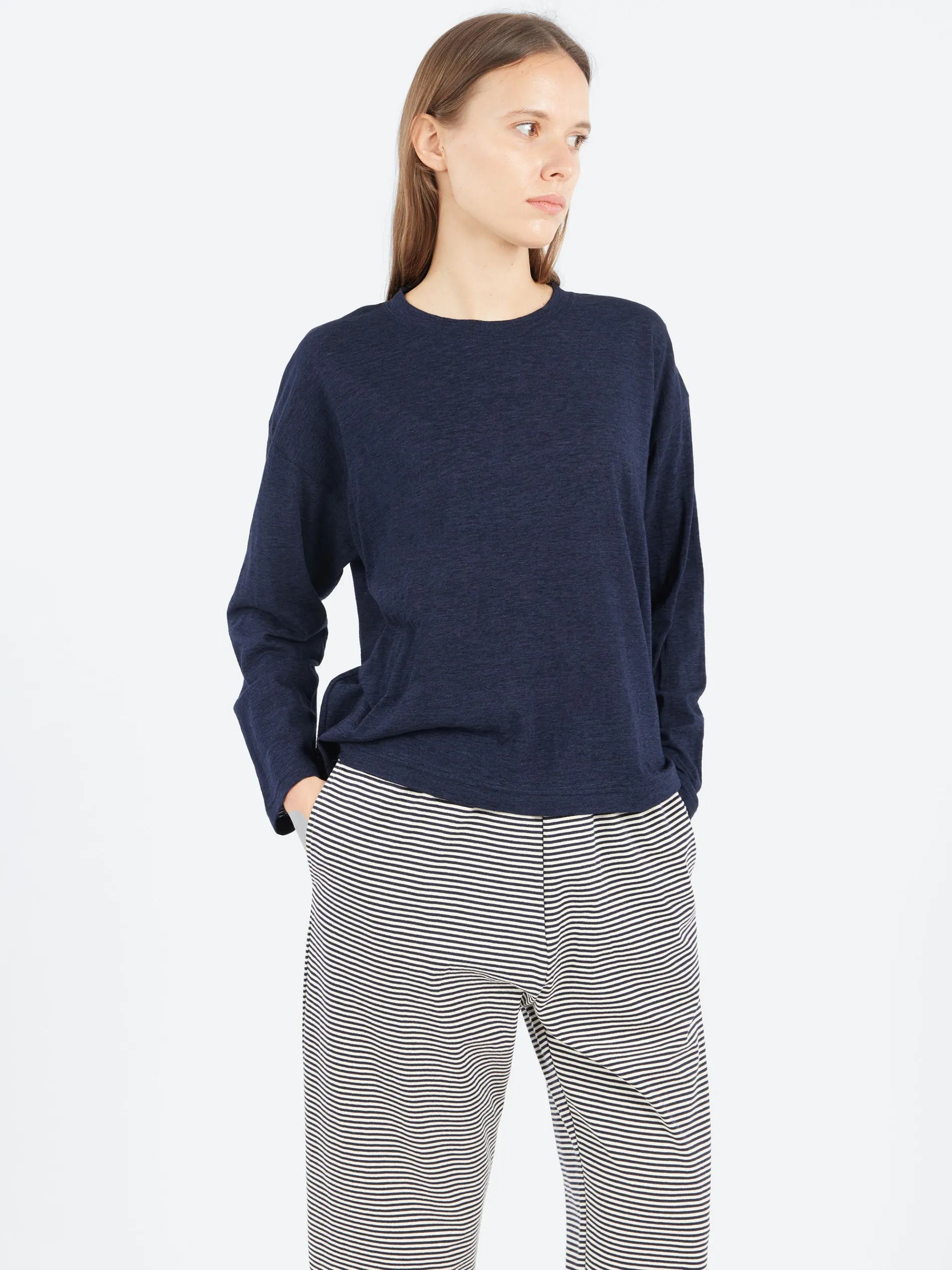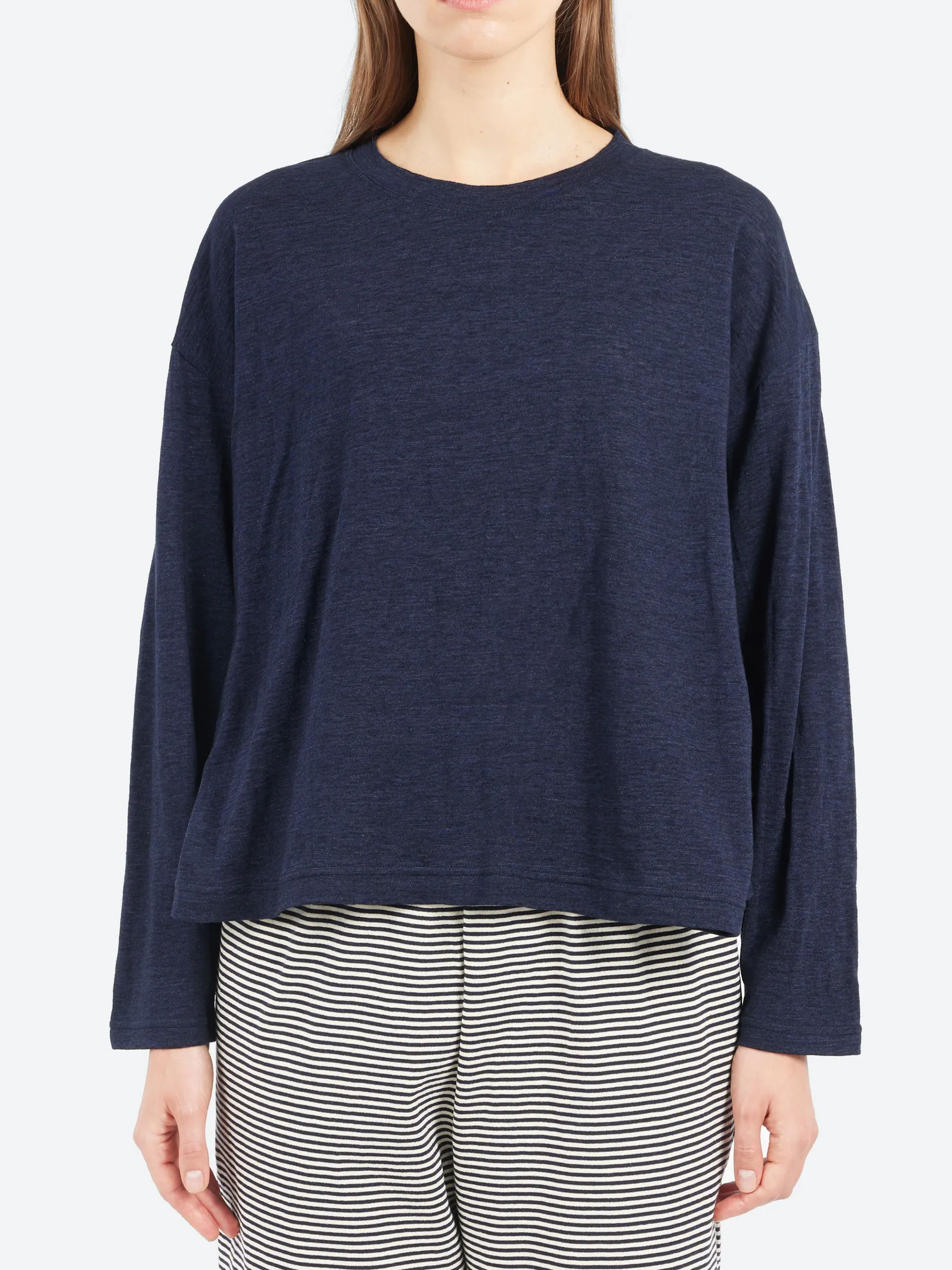 The Sarahwear Crewneck Tee made from environmentally friendly yarn, the jersey fabric is crafted by blending recycled cotton. This unique material gives the knit a natural, uneven texture with excellent elasticity, while offering a cool and gentle feel against the skin.
