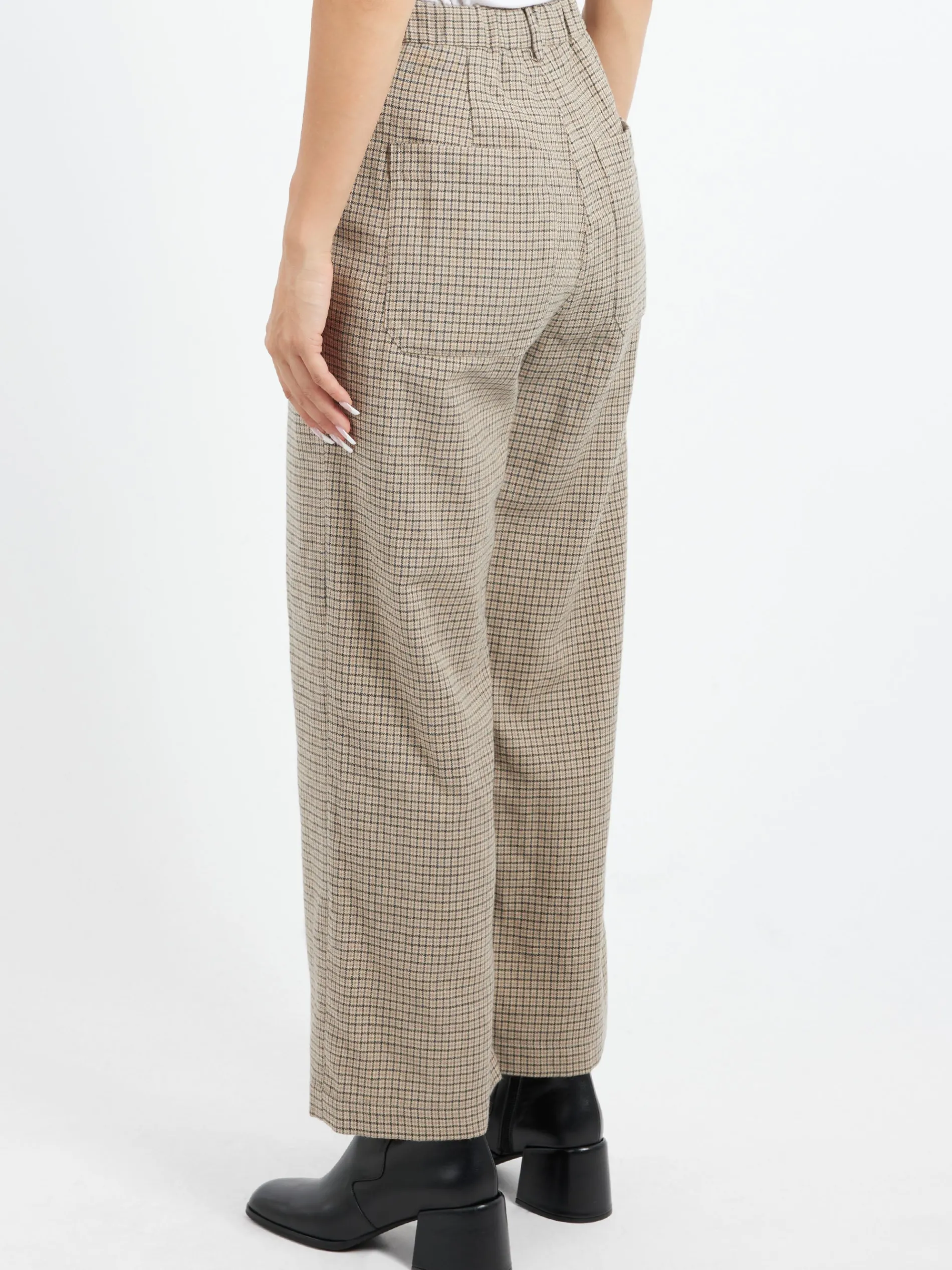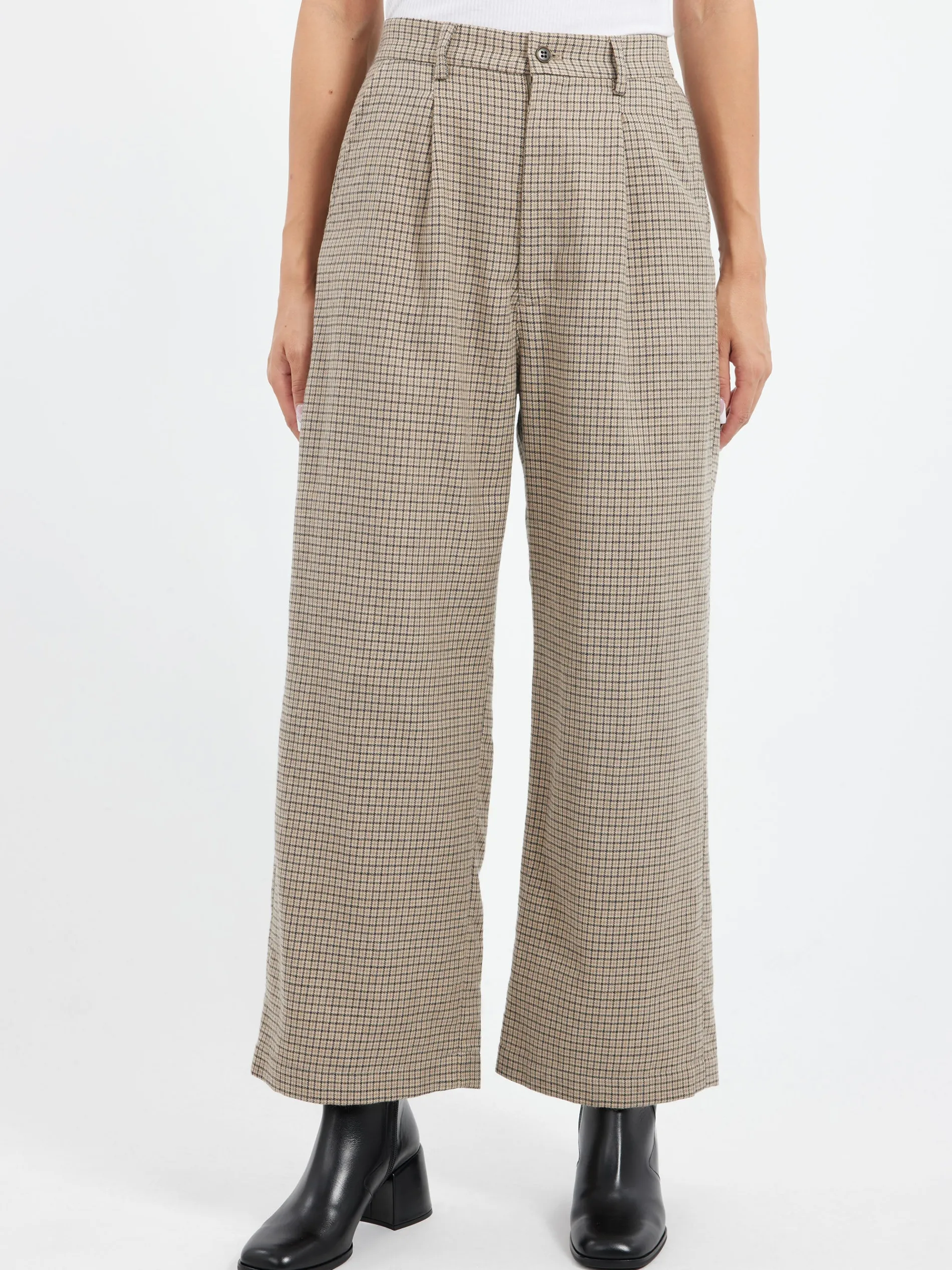 Sarahwear classic pleated pants in a wool blend and cut with a straight-leg silhouette.