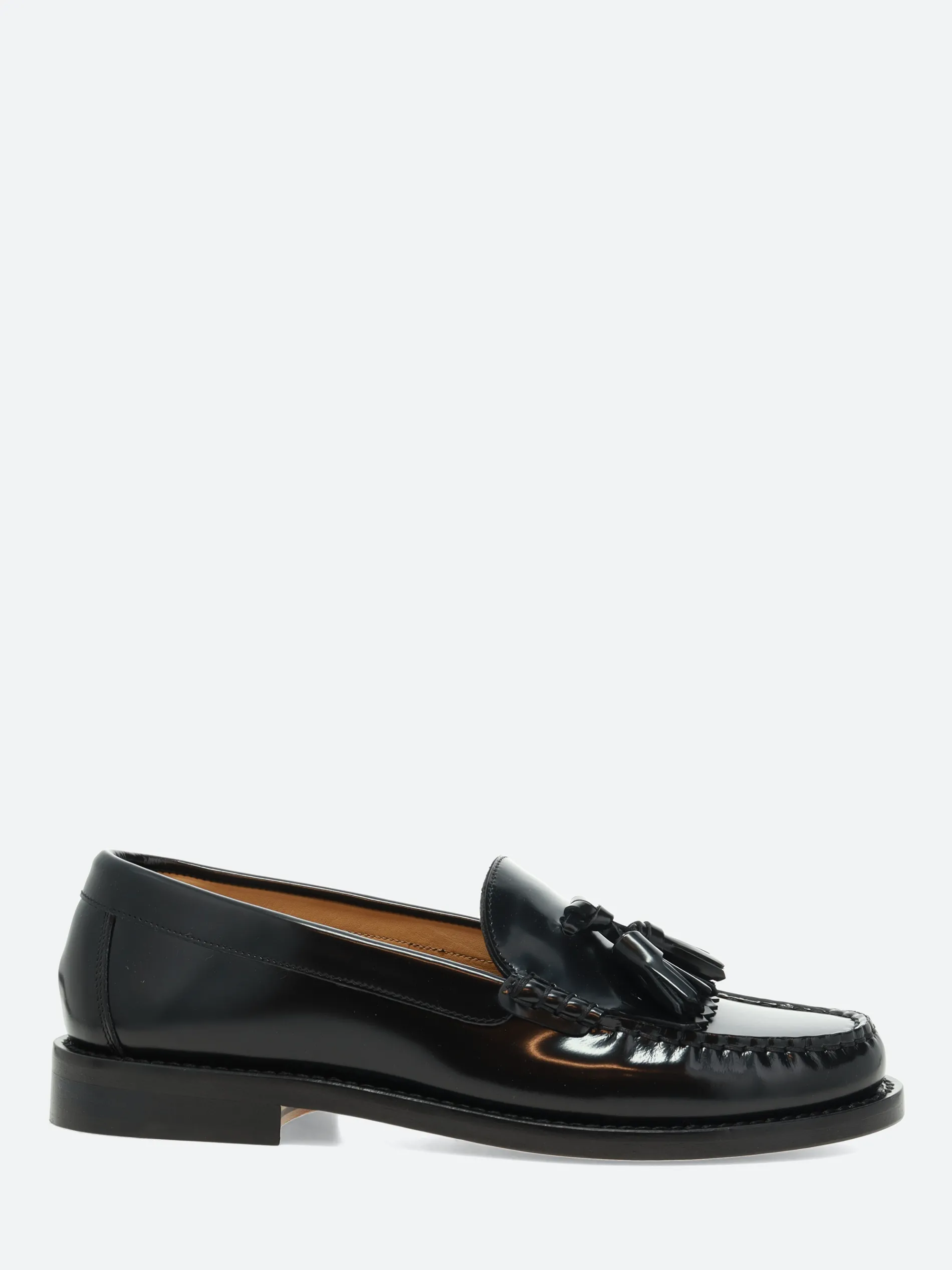 Handcrafted loafer in leather. Rounded toe with tonal stitched upper and tassel detail. Leather lined. Leather outsole with anti-slip rubber. Subtle stacked heel for added comfort.