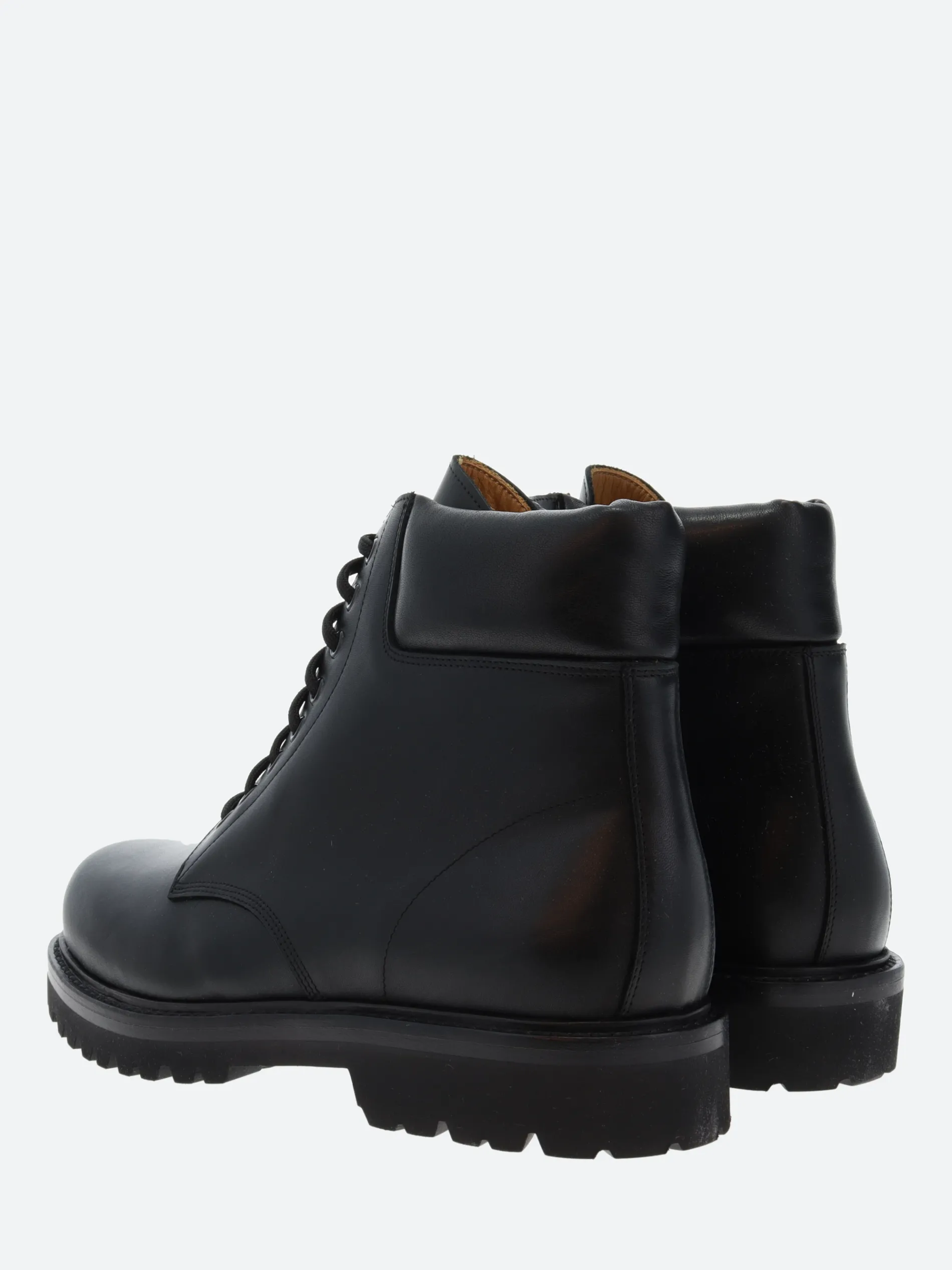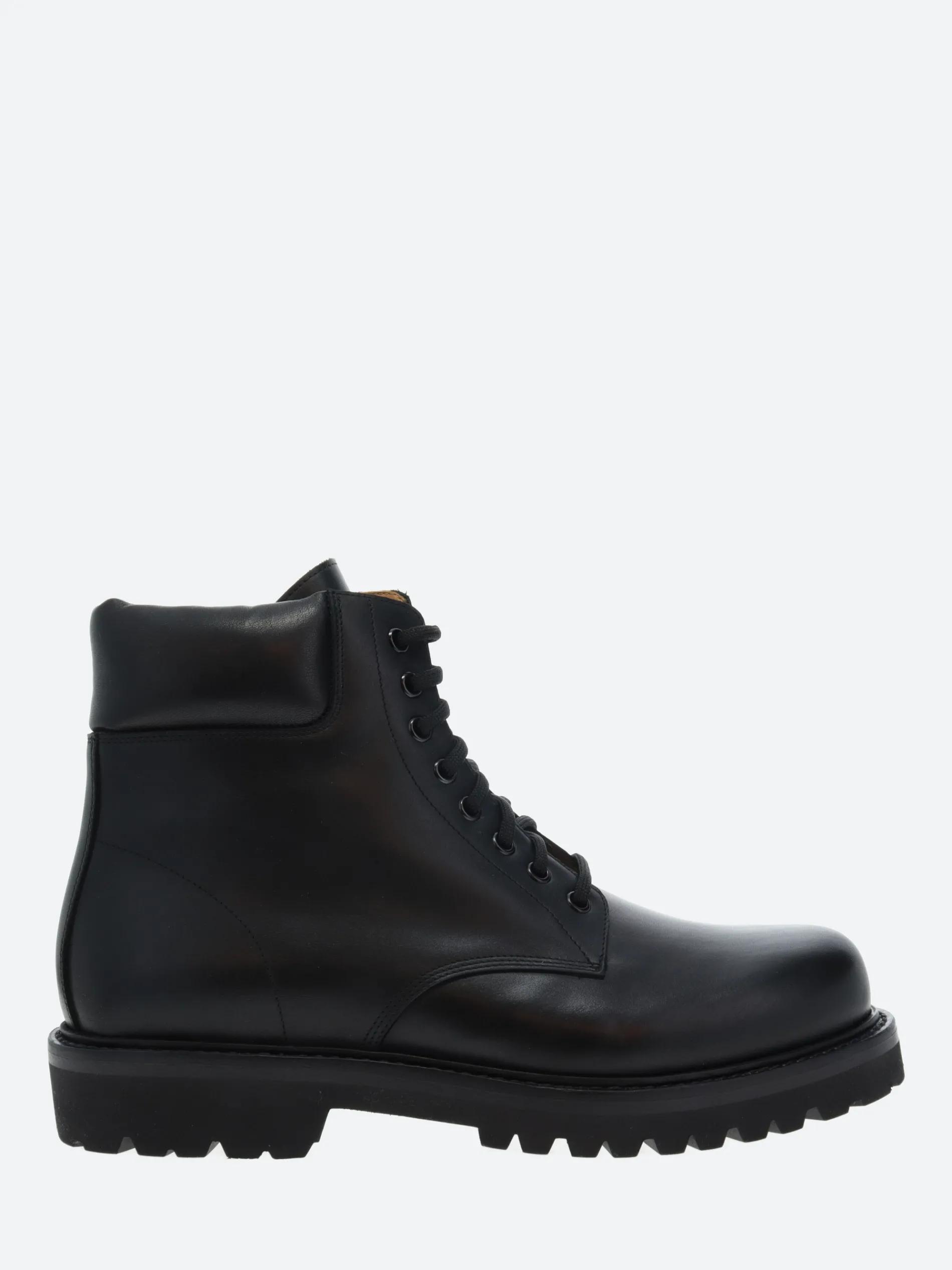 Boots in full grain cow skin, calf lining, leather midsole and Vibram EVA outsole.