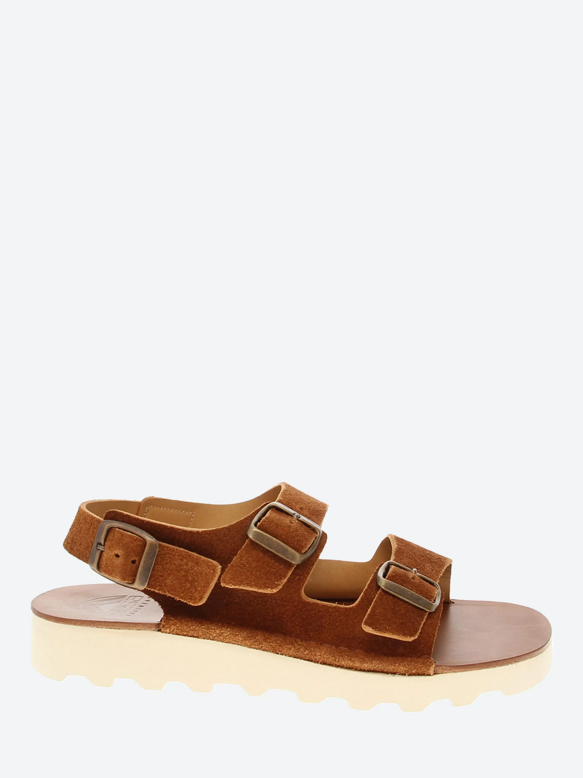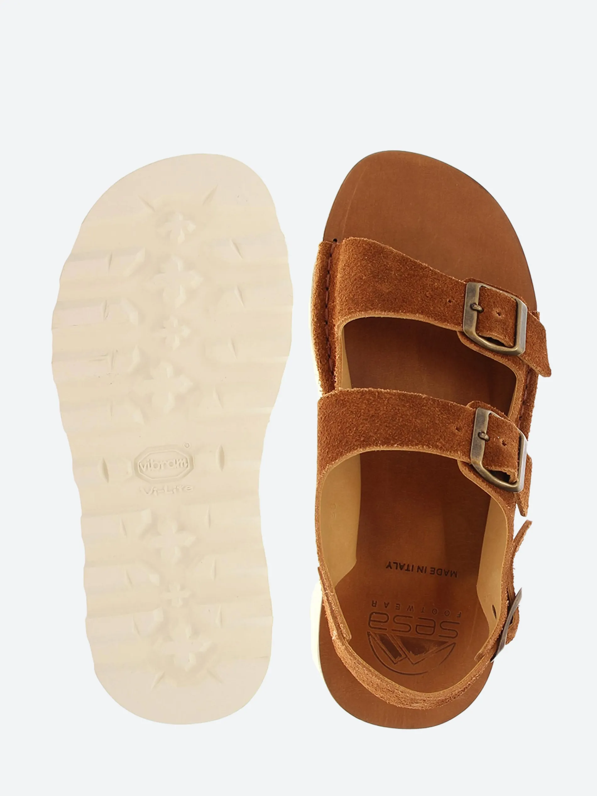 Straps sandals in flesh out vacchetta hide, handsewn in leather midsole, with calf lining and Vibram EVA outsole.