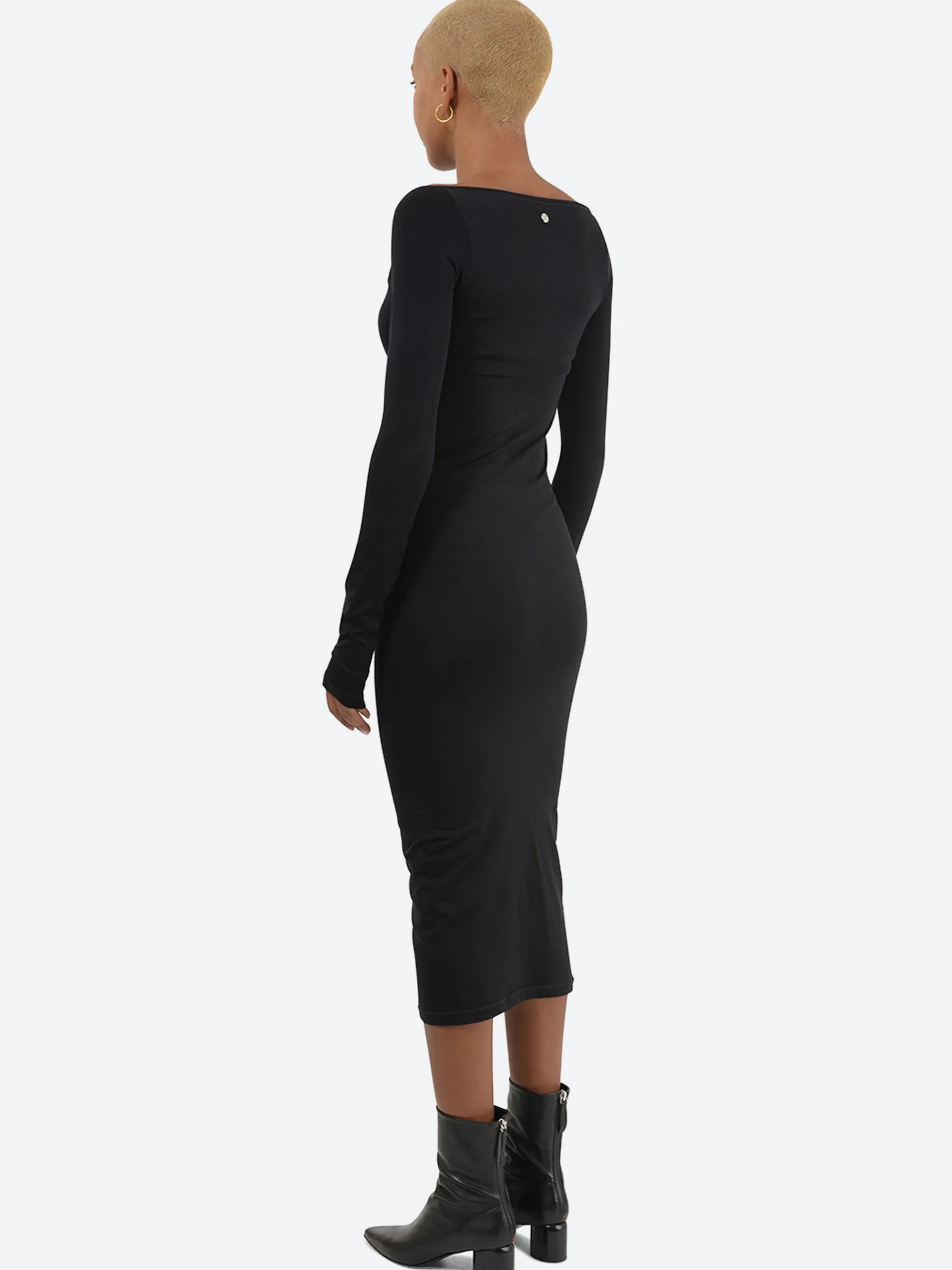 Simon Miller stretch seamless long sleeve dress with sweetheart neckline and built-in padded cups.