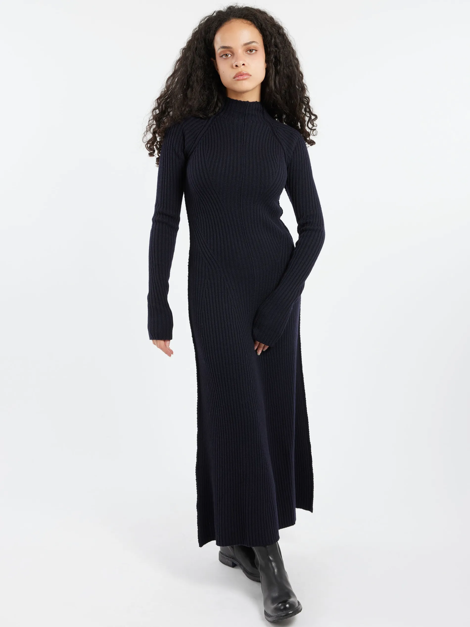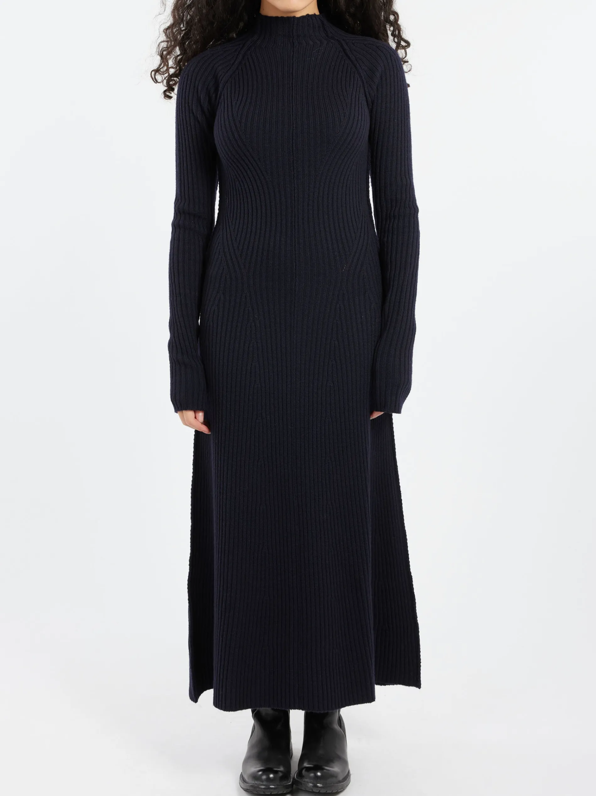 Soeur Beatrice is a long ribbed knit dress. Its flared cut enhances every movement. Perfect for combining comfort and style, it wraps you in elegance and warmth for any occasion.