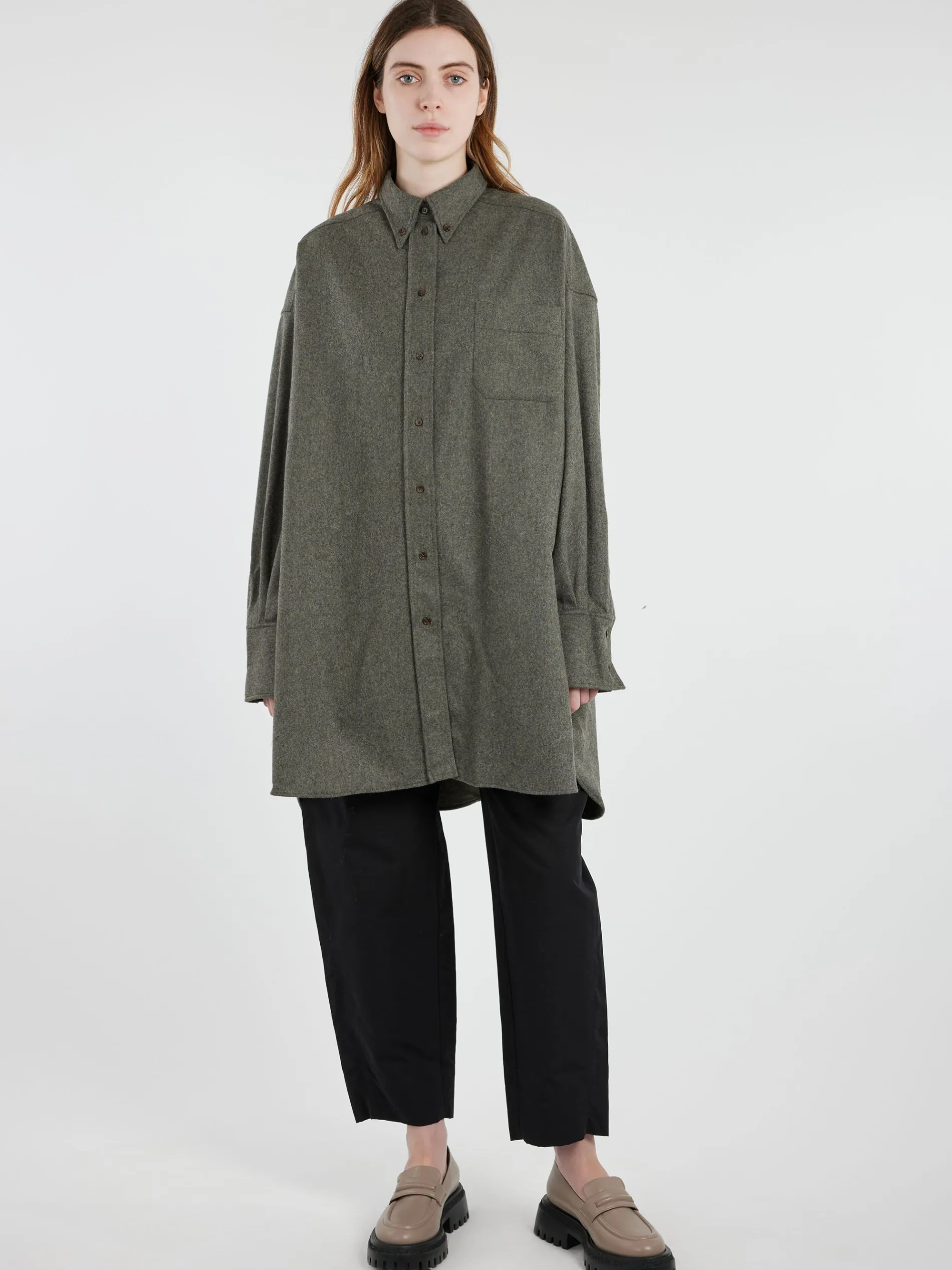 Crafted from a lightweight flannel, the Soeur Candide Shirt Dress features a wide, straight cut that drapes beautifully for a relaxed yet polished silhouette.