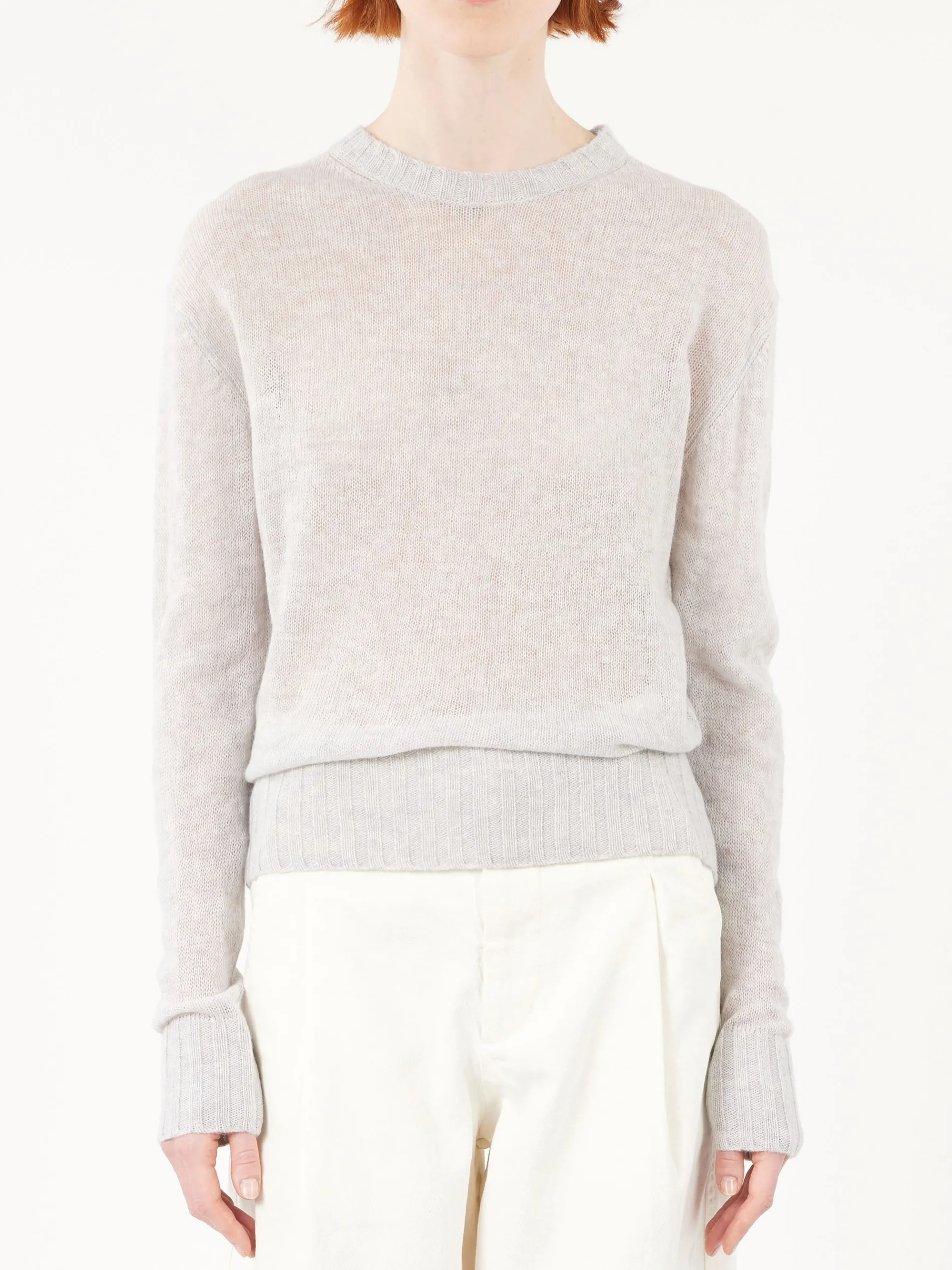 The Dona Pullover is a long-sleeve jumper crafted in a loose knit with a straight, oversized fit for a relaxed and comfortable look. It features long sleeves, a round neck, and ribbed hems and cuffs for added texture. Made from lightweight merino wool, this pullover offers softness and warmth, perfect for layering or wearing on its own.