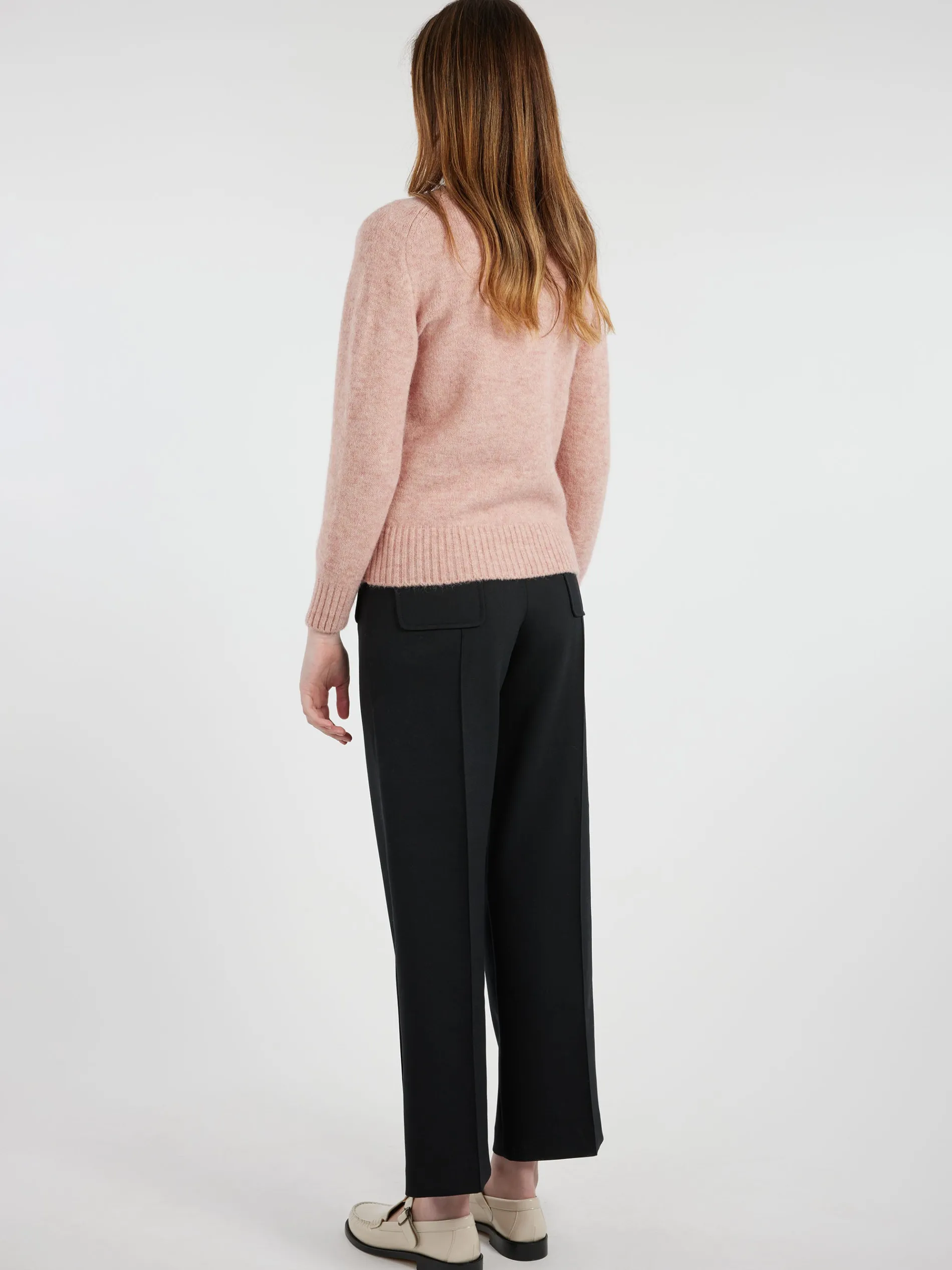 Soeur alpaca wool sweater with a felted finish, has a straight cut and a round neck.