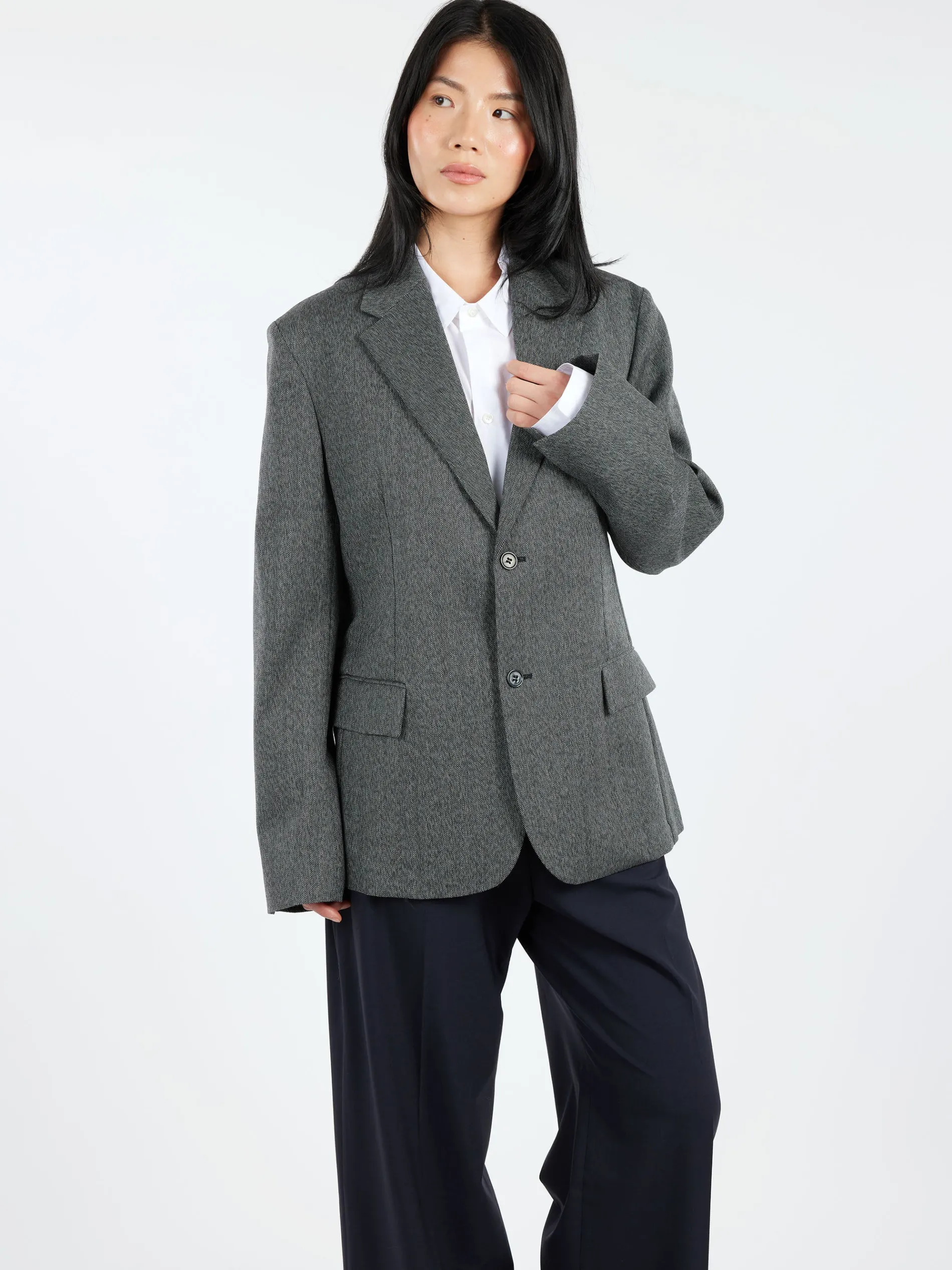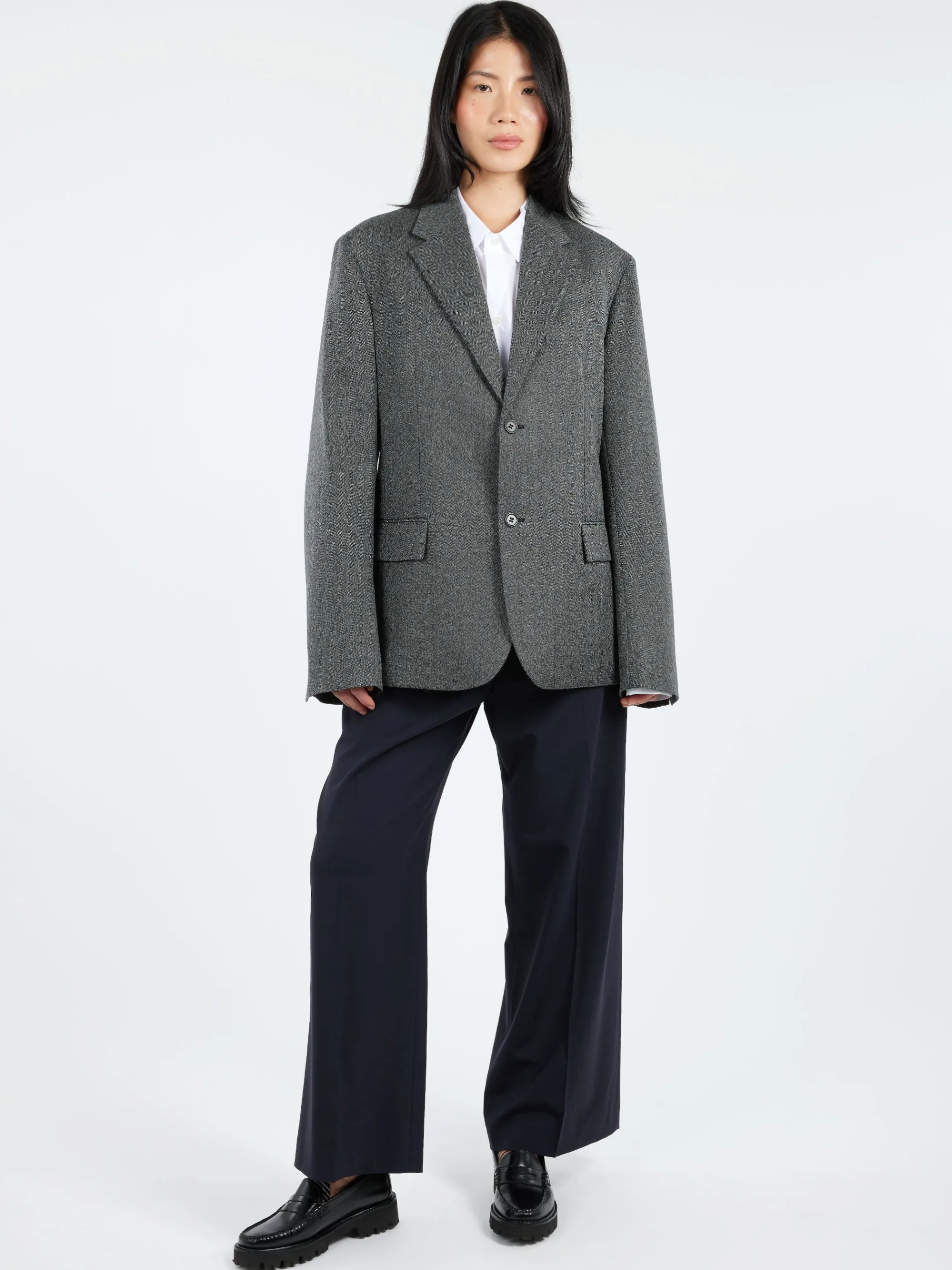 Sofie D’Hoore breasted oversized blazer with notched lapels in wool herringbone.