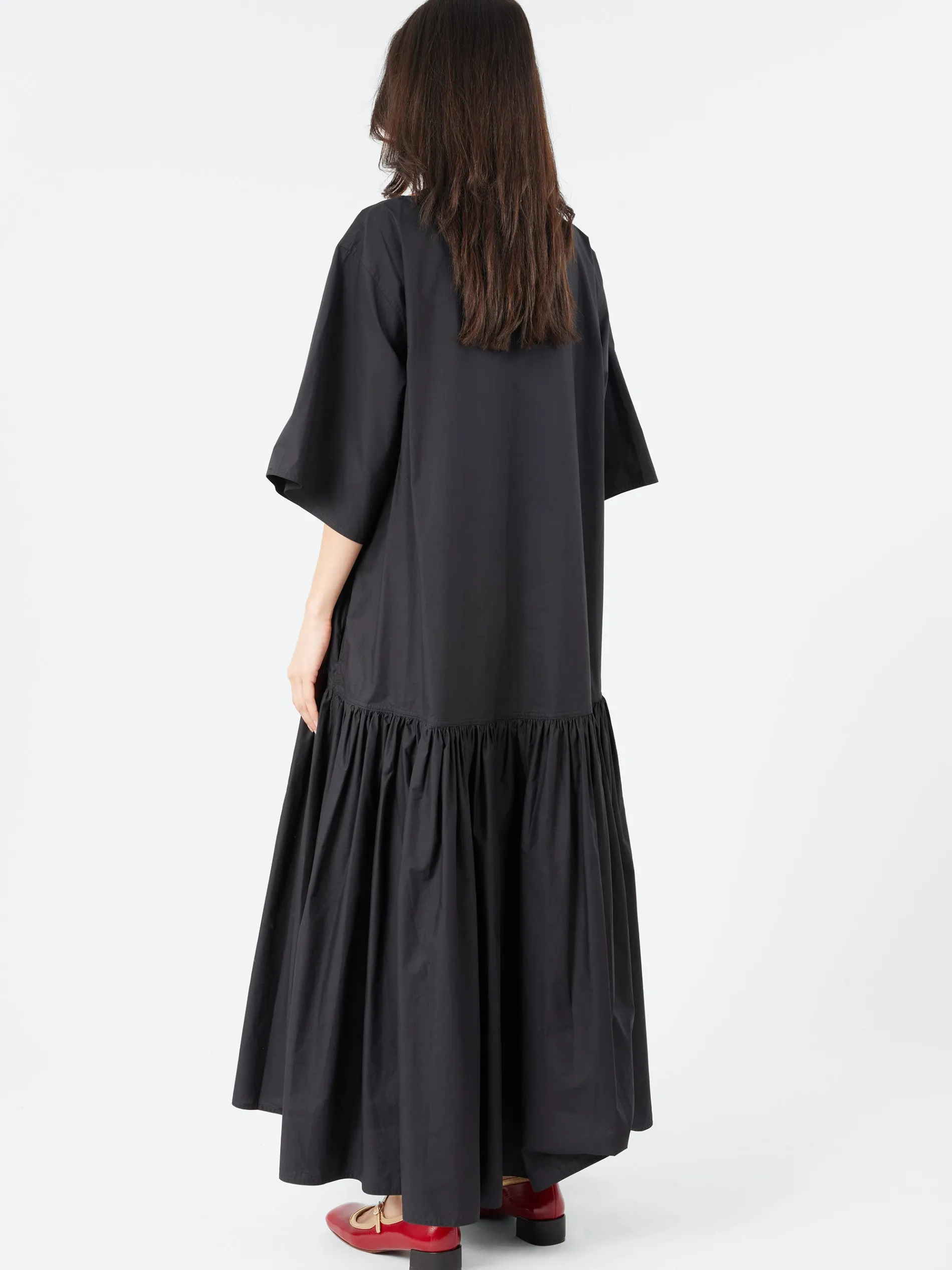 The Sofie D’Hoore Della dress is a timeless piece crafted from soft, breathable 100% cotton. It features a flattering boat neckline and short sleeves, creating a clean, streamlined silhouette. The dress is designed with ruched detailing, adding texture and movement to the fabric. Additionally, two side inset pockets provide functionality. With its relaxed fit, the Della Maxi Dress effortlessly combines comfort and sophistication, making it a versatile choice for a variety of occasions.