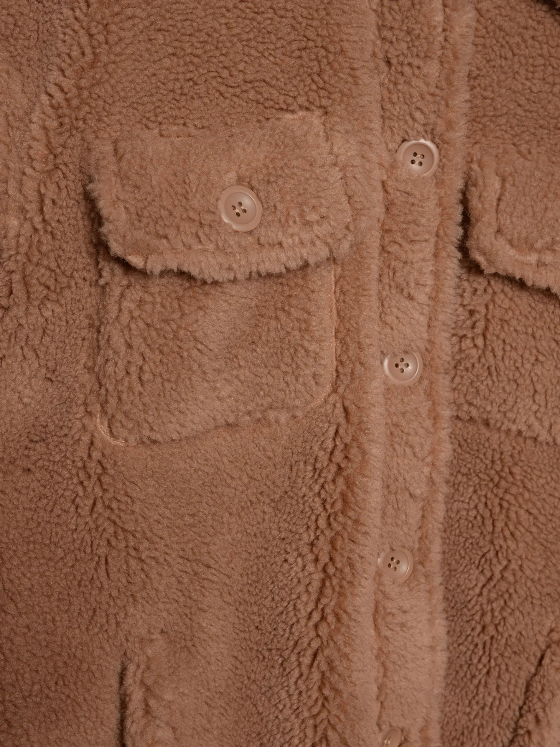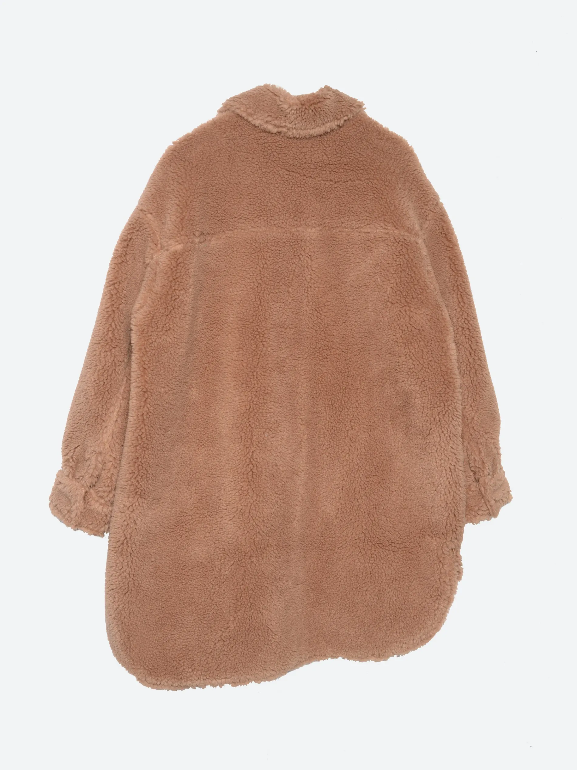 Sabi is an oversized shirt-style jacket crafted from warming wool-blend faux fur. It’s designed with a point collar, breast pockets and front button fastenings. The perfect outer layer for a Sunday stroll.