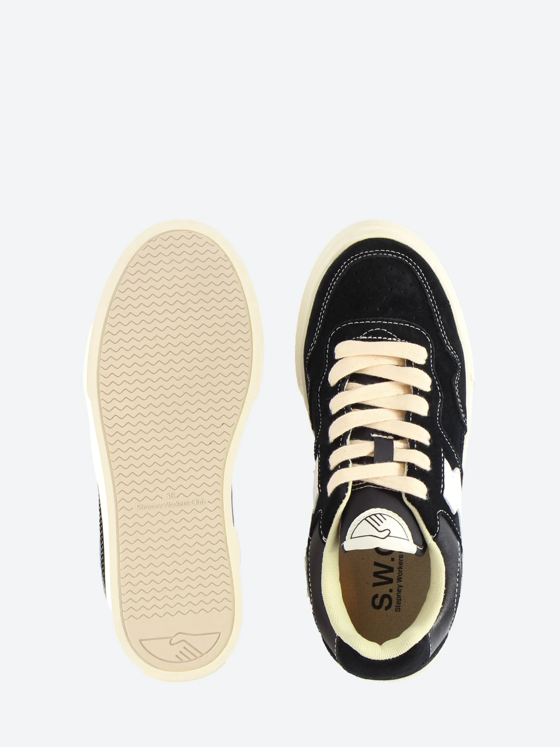 The Pearl silhouette is Stepney Workers Club’s first cupsole construction inspired by court sports sneakers. It features their iconic high-wall foxings with a sidewall stitch which provides added strength.