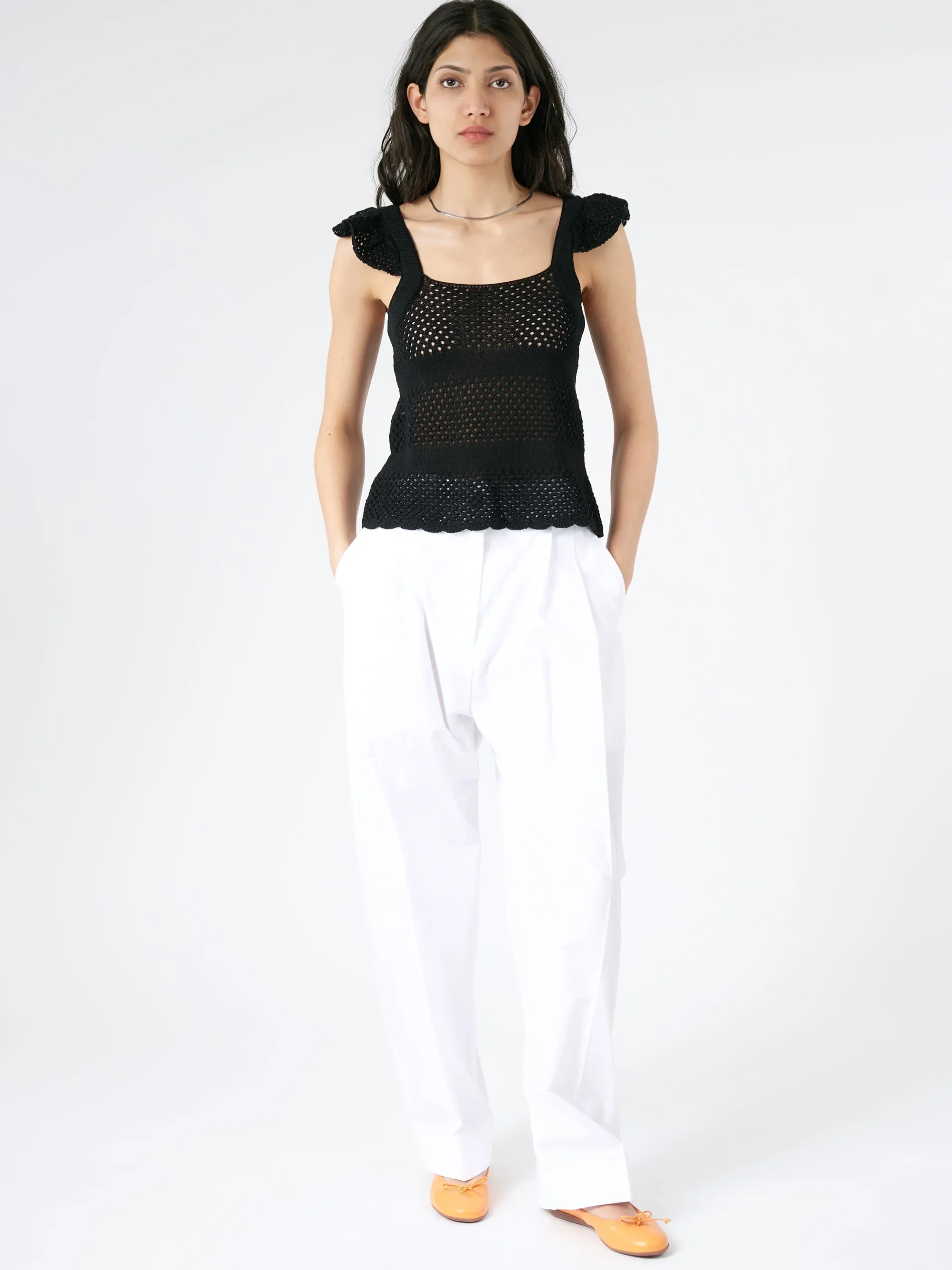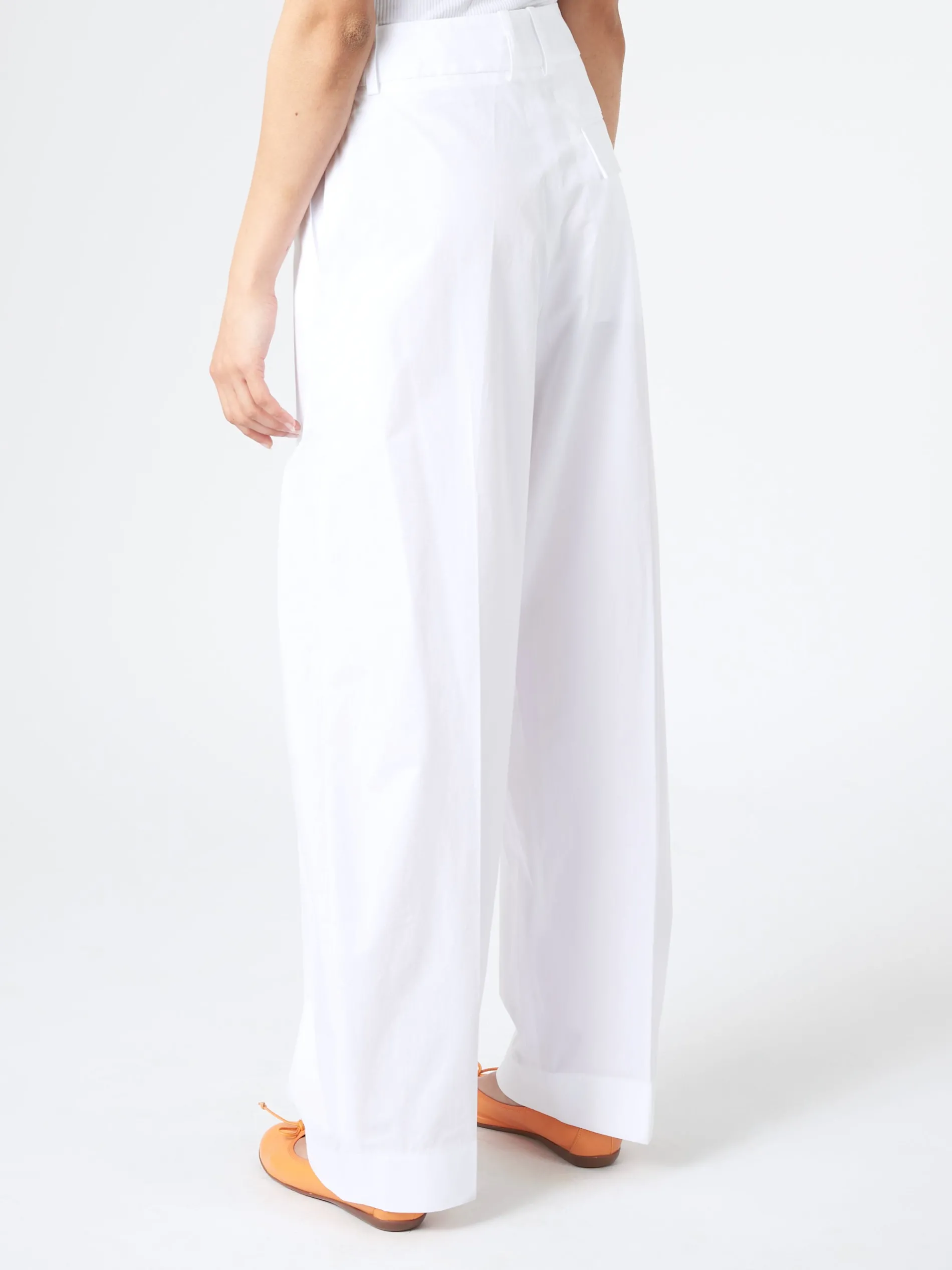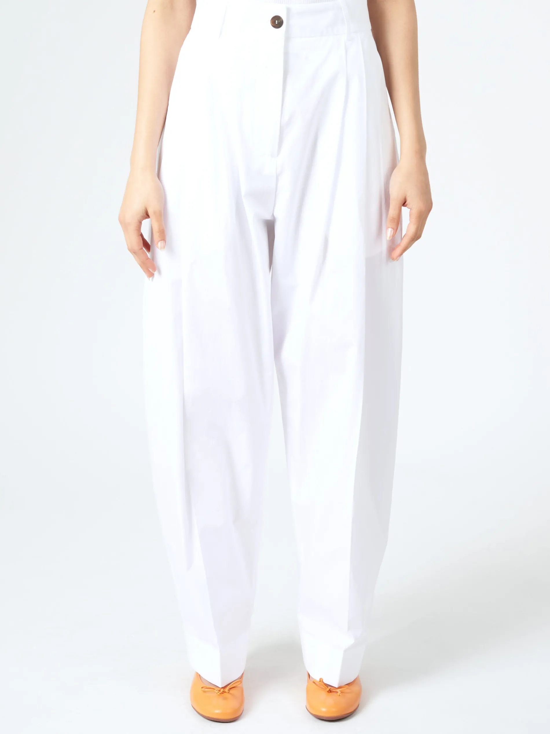 The Acuna pant from Studio Nicholson, crafted in a crisp powder cotton, combines a high rise with voluminous double pleats and a wide, flowing leg.