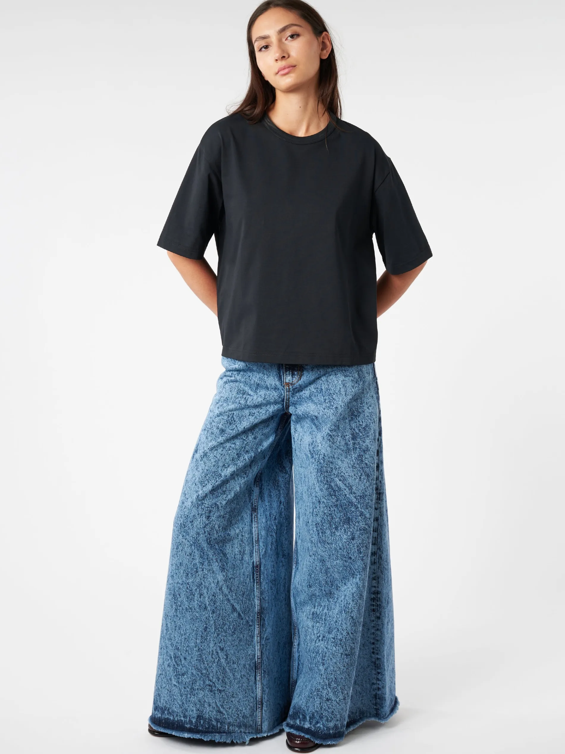 Boxy short sleeve t-shirt made from a mercerized cotton.