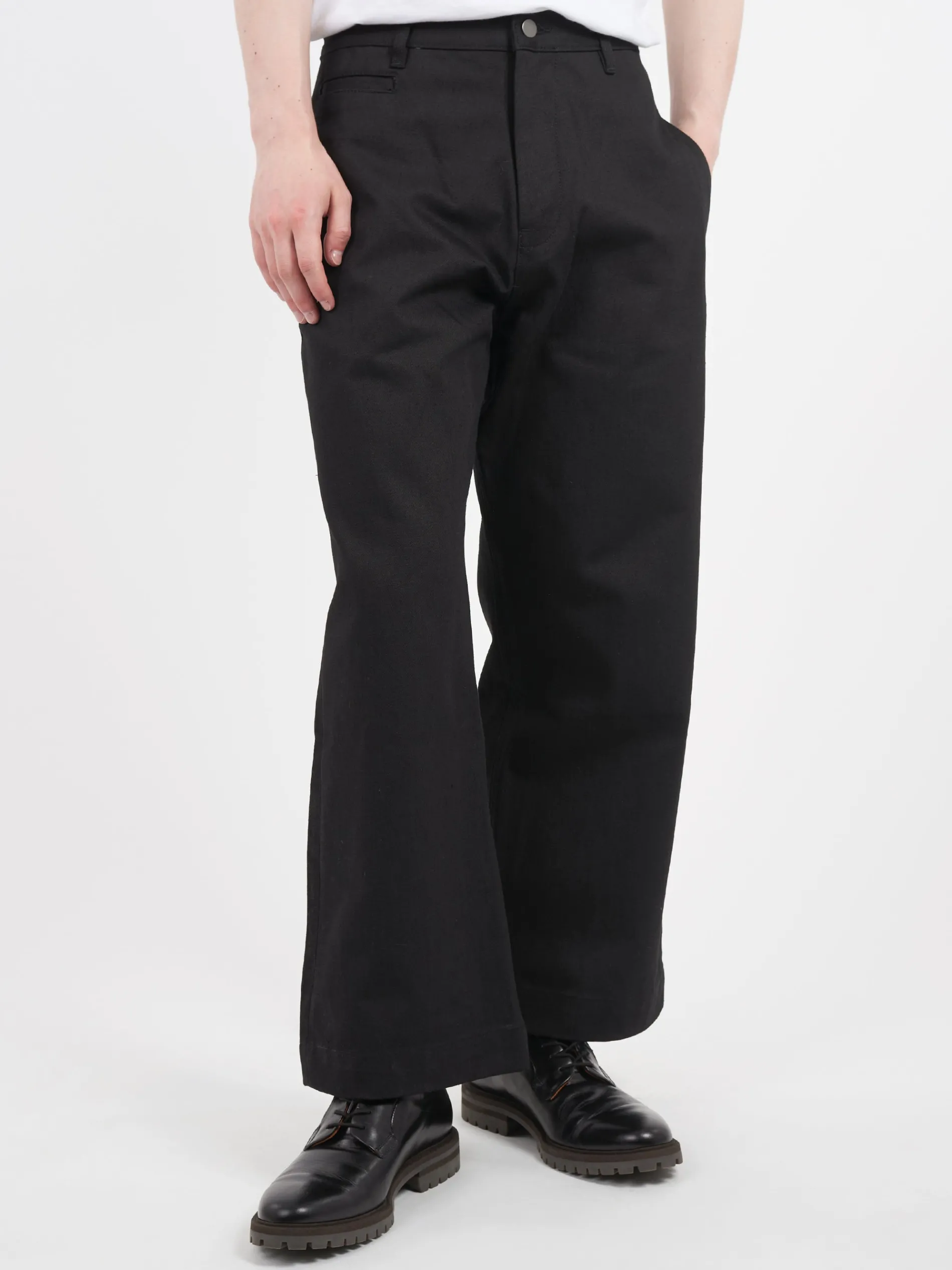 High-waisted wide leg denim pant made from Studio Nicholson’s signature raw denim.