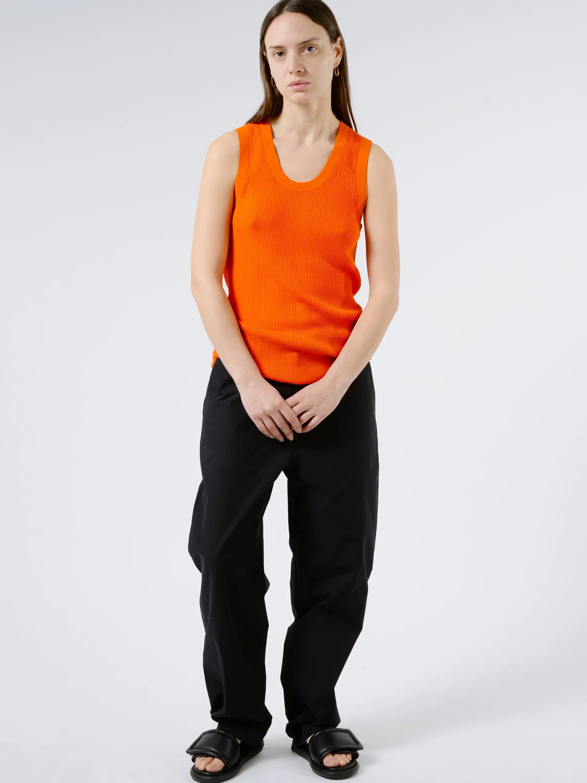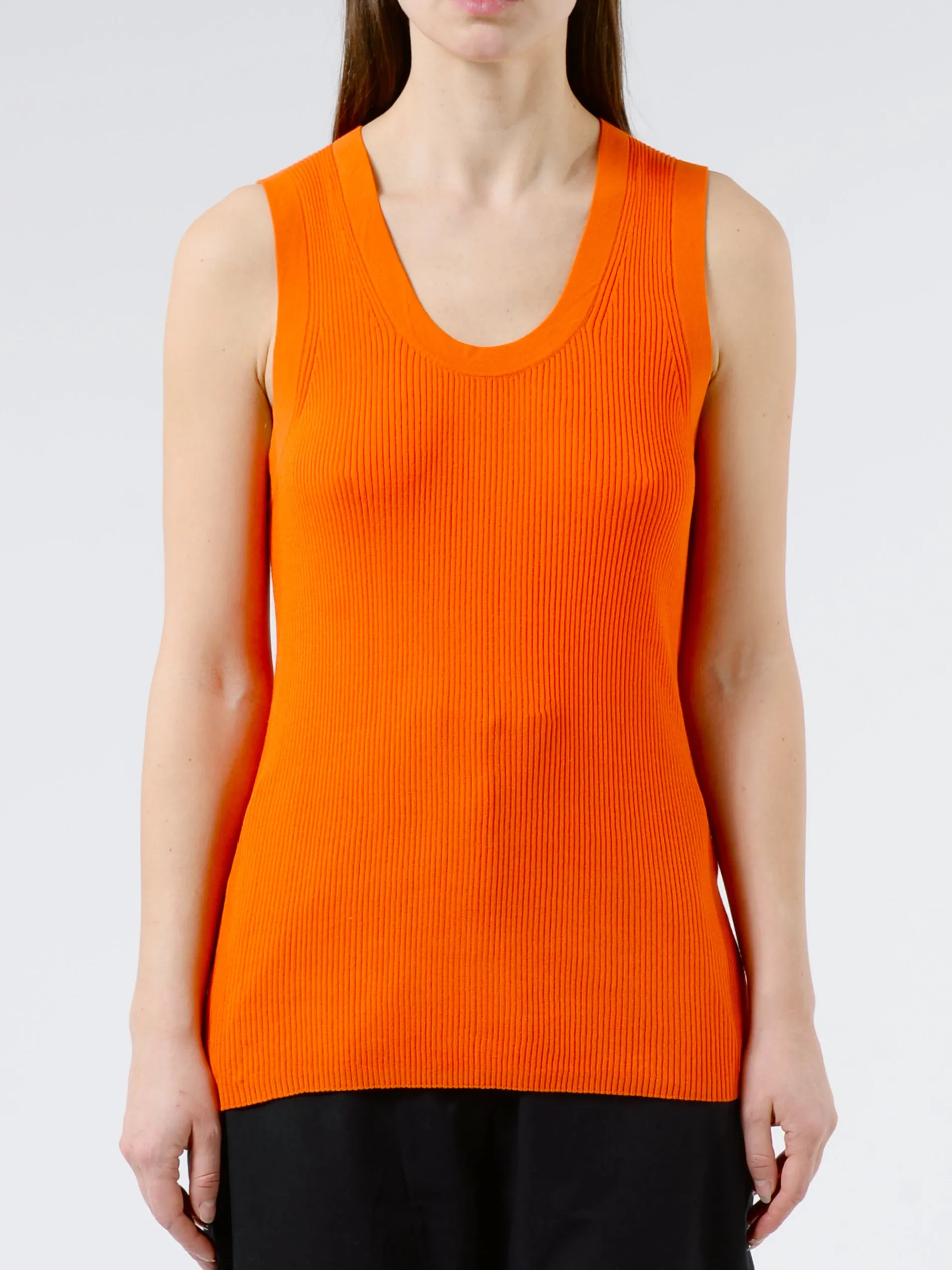 Slim-fitting knit vest made from a fine crepe cotton rib.