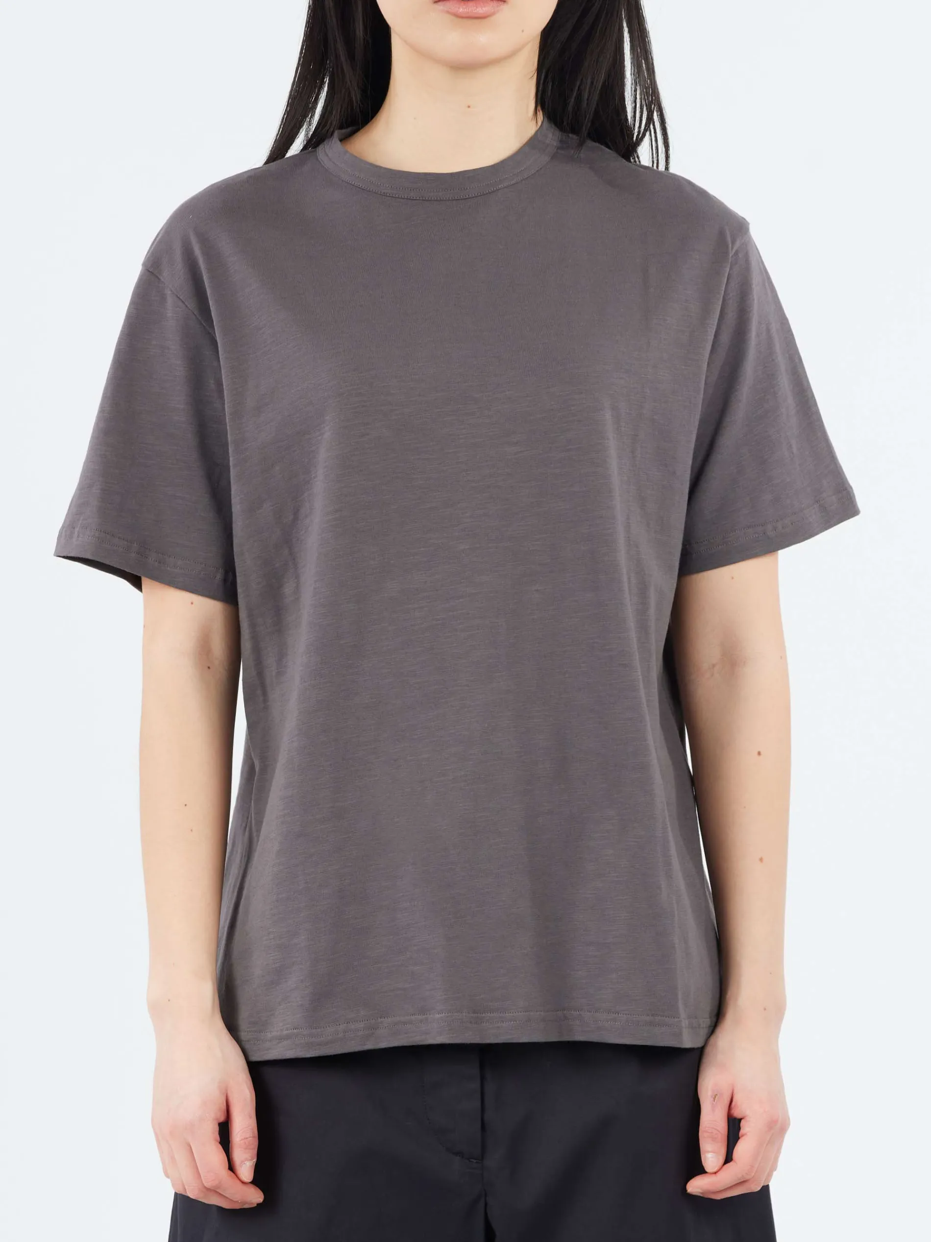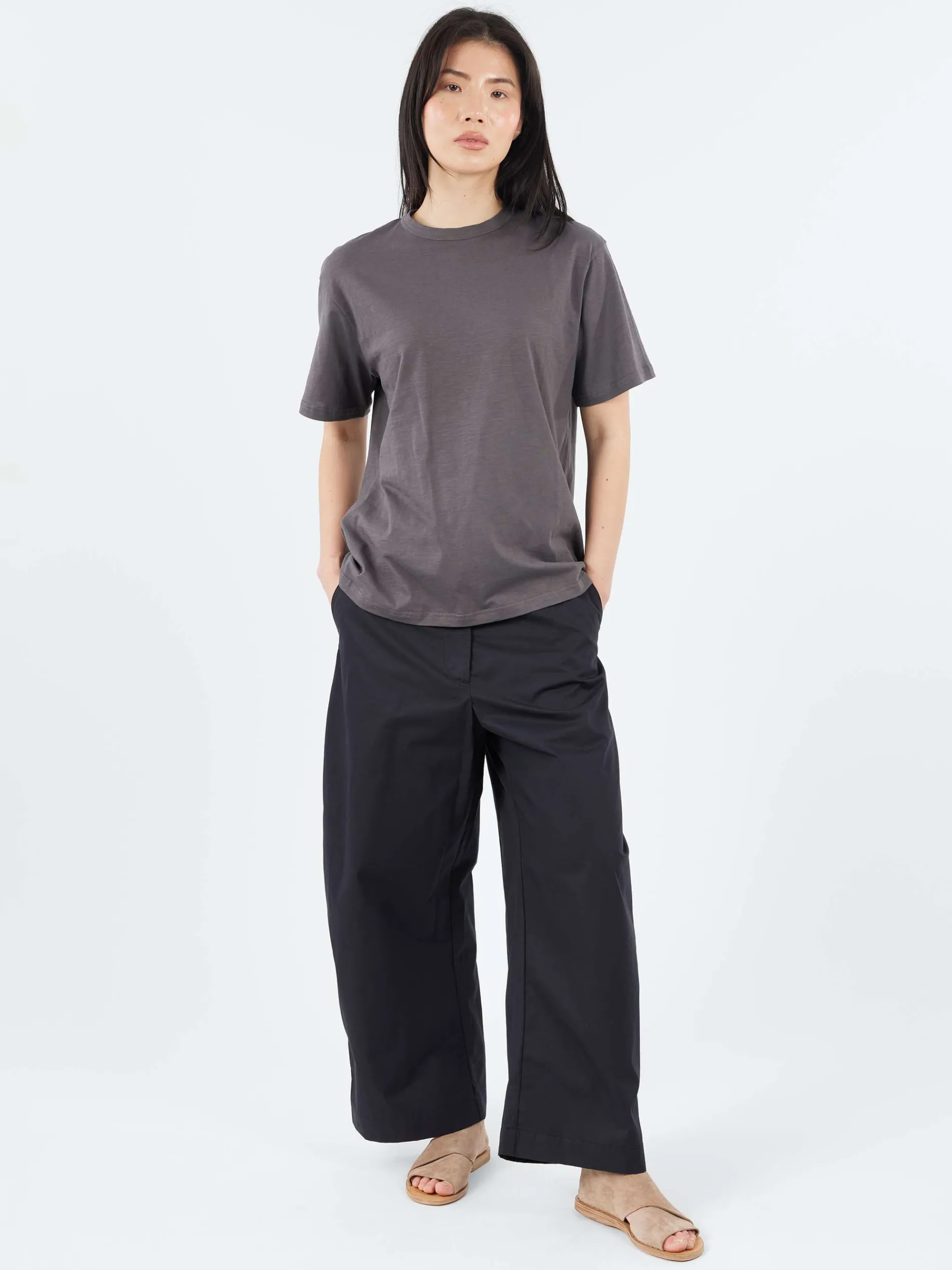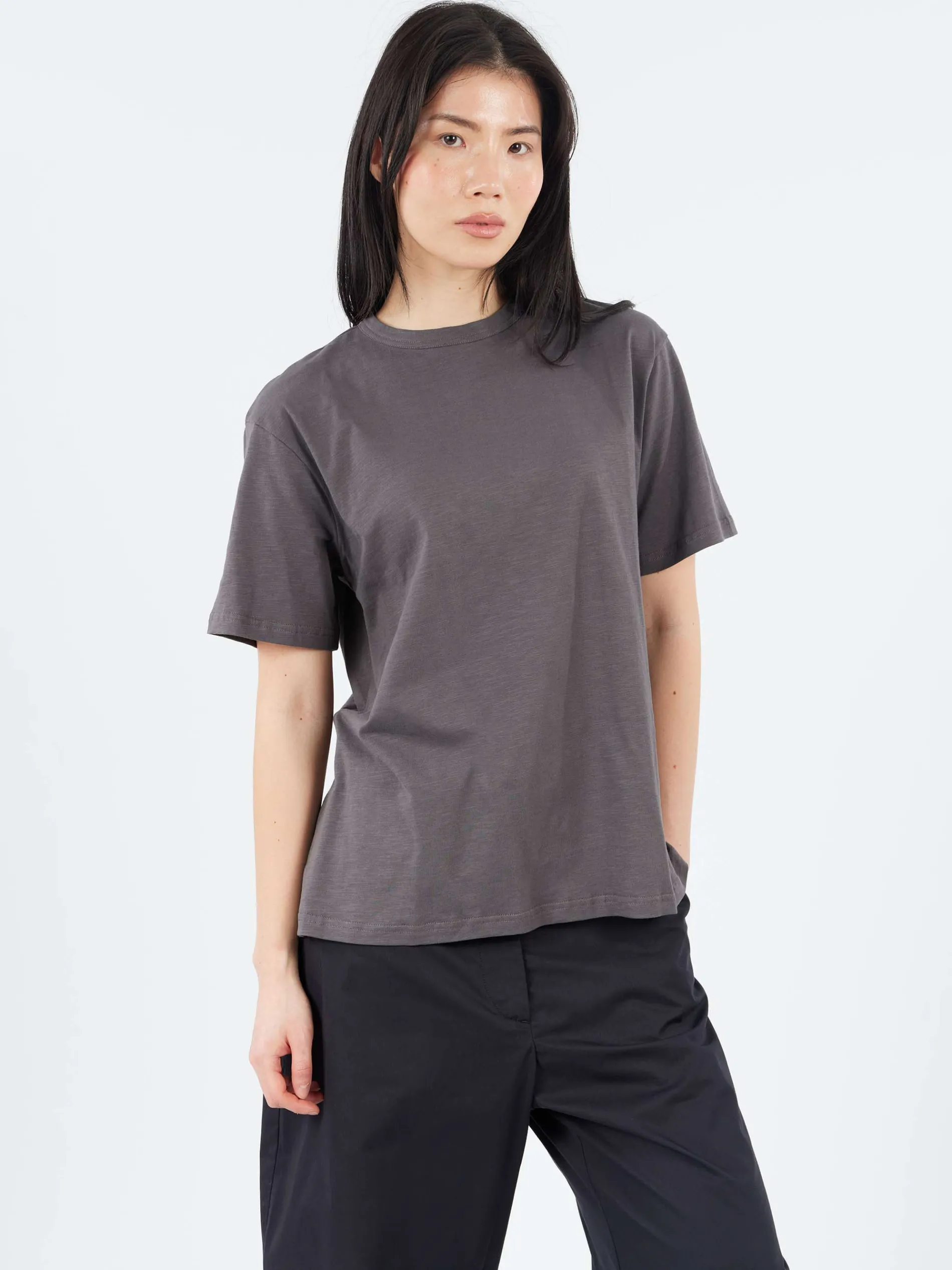 An easy-fitting t-shirt is a key component of any wardrobe and the Rond is cut from organic cotton slub jersey for a soft, textured feel. Constructed with wide sleeves and dropped shoulders, it’s relaxed shape is complemented by the fabric’s fluid character.