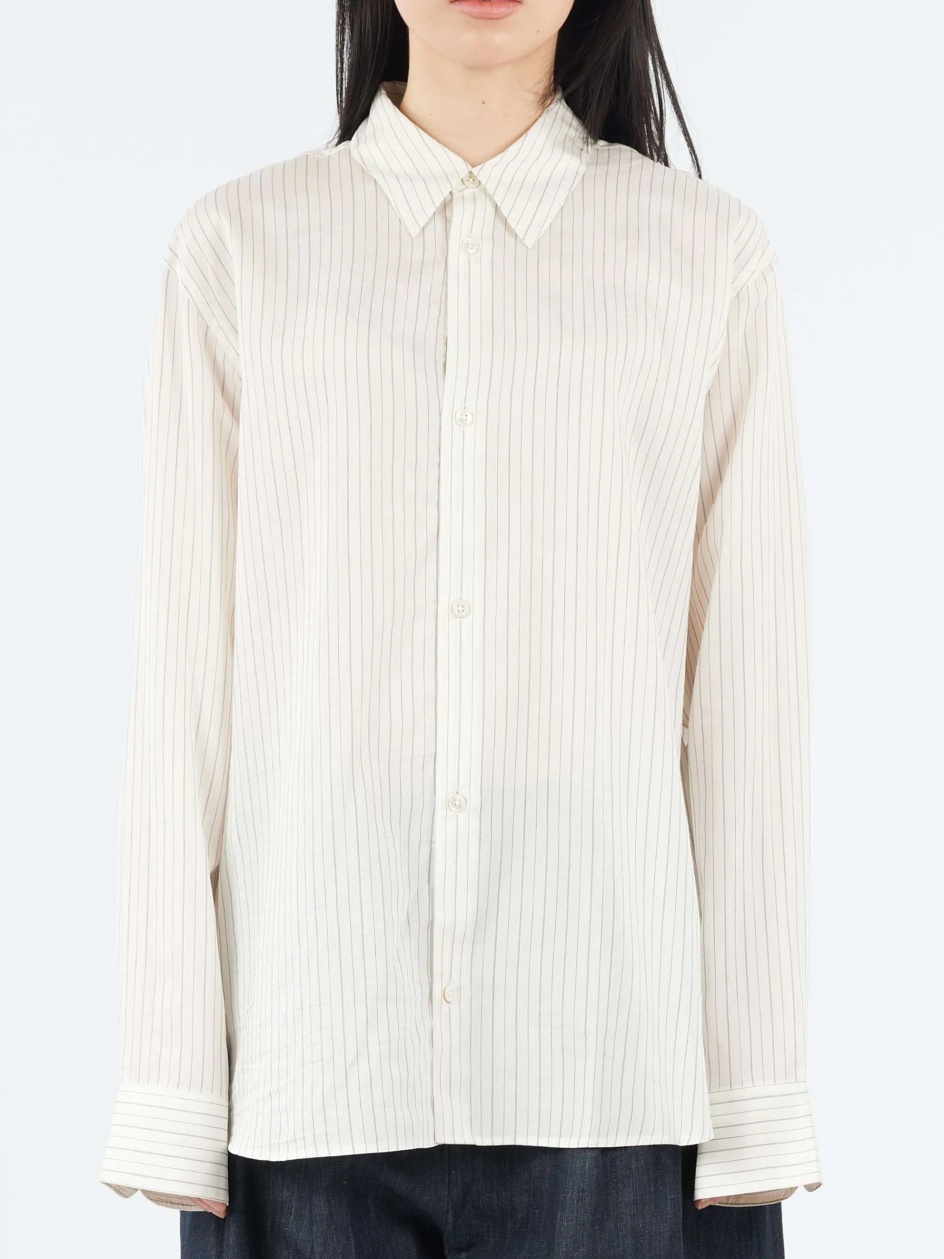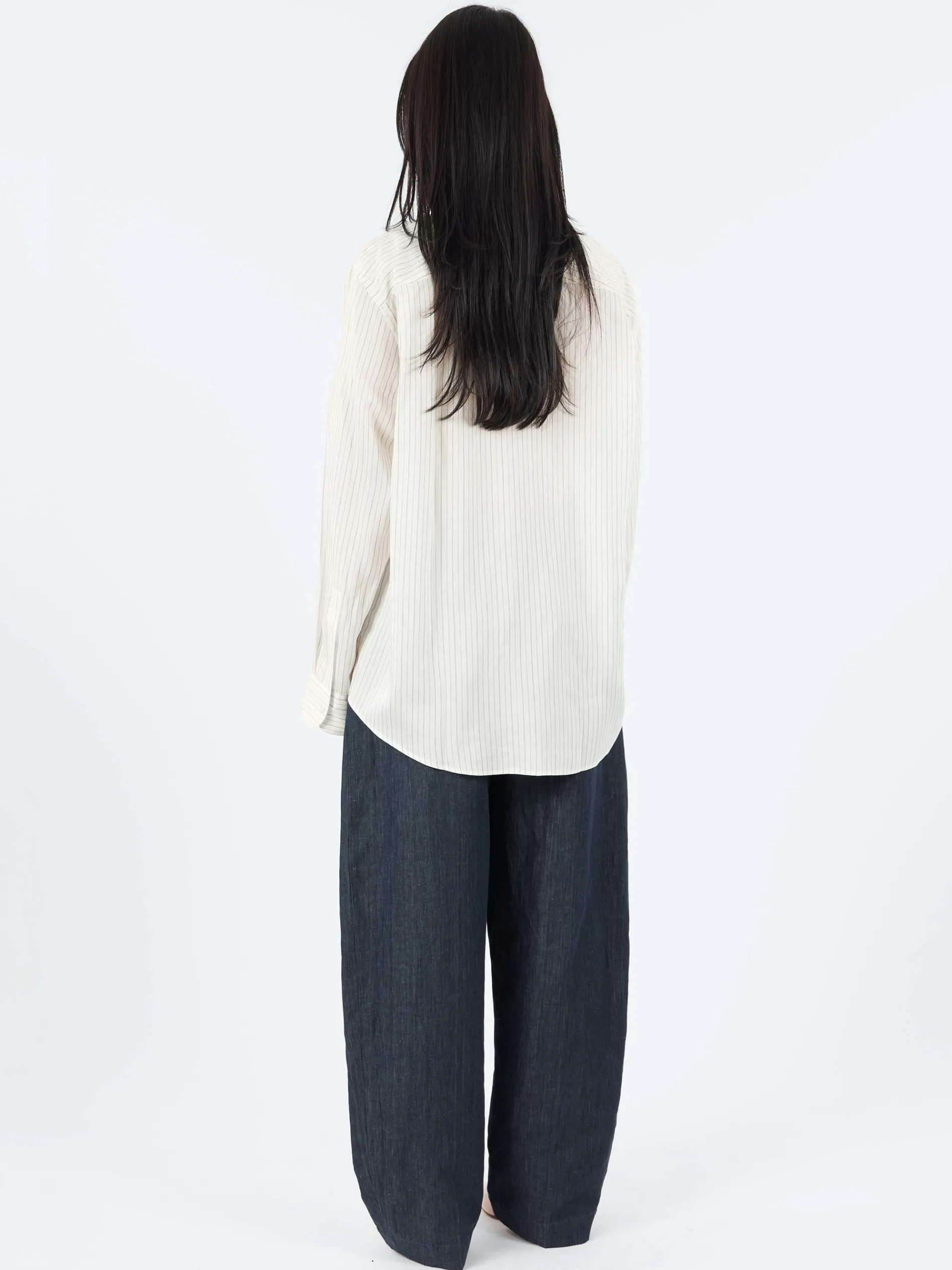Cut from a dry, matte Italian silk, this season’s iteration of the View Shirt is a playful revision of classic men’s shirt styles: tailored, but without the stiffness of a formal shirt. A generous, slightly boxy fit which stops short of being truly oversized.
