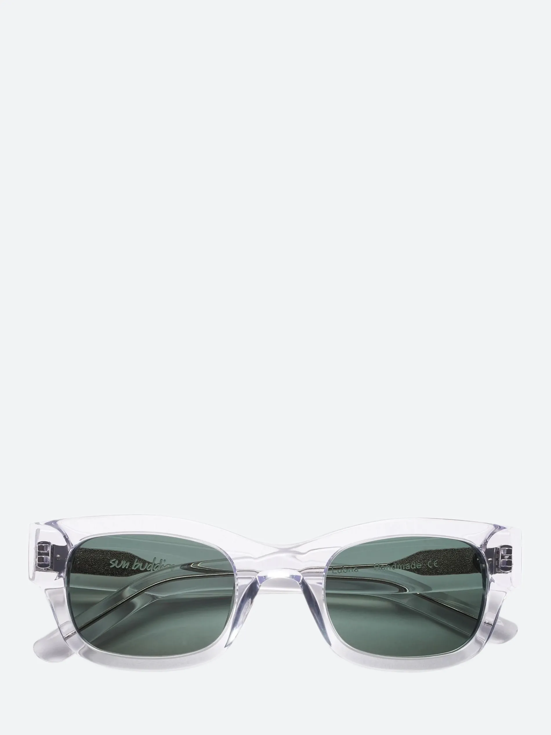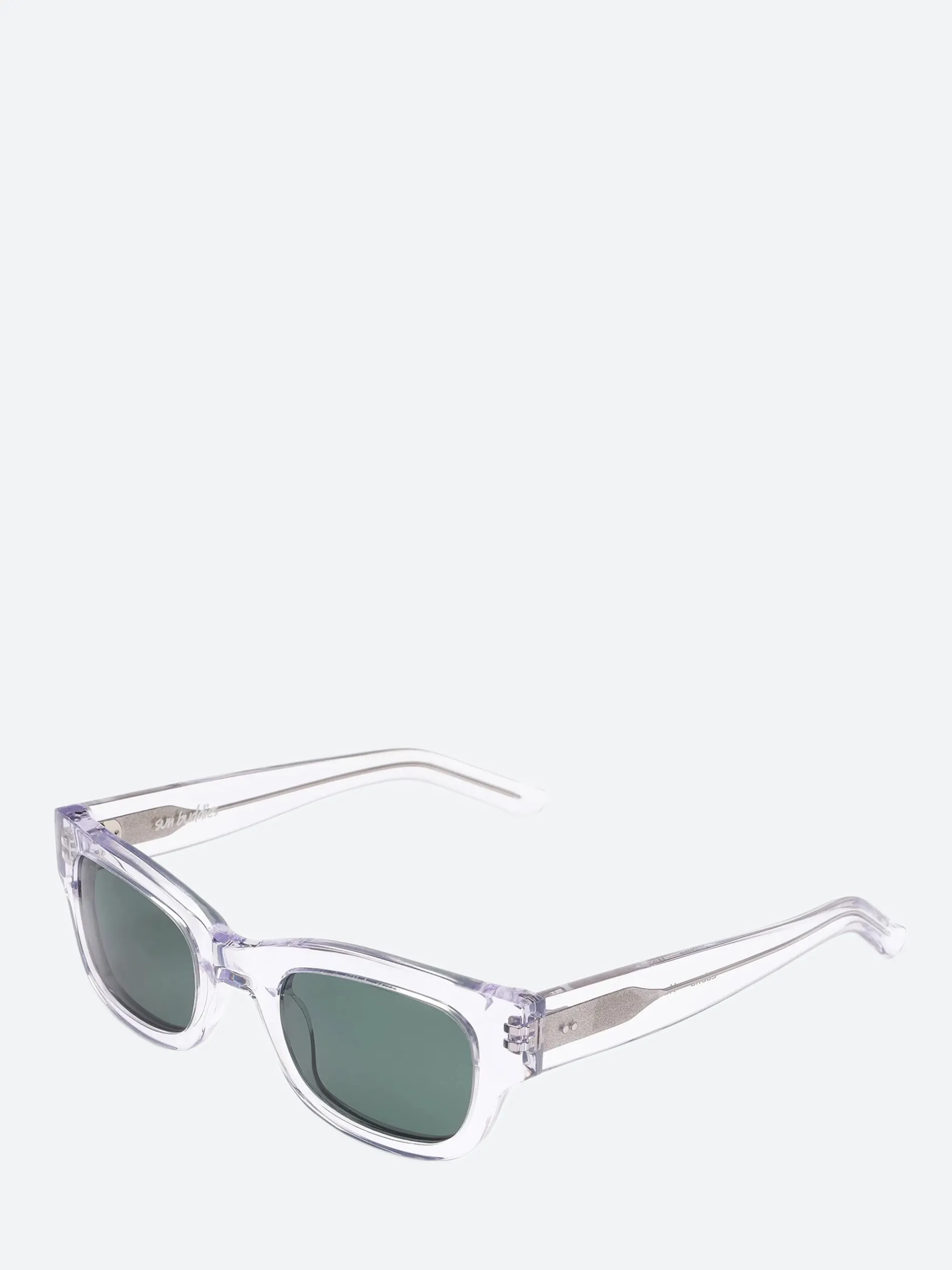 Solid coloured sporty slightly thicker frame in crystal, handmade of Italian acetate.