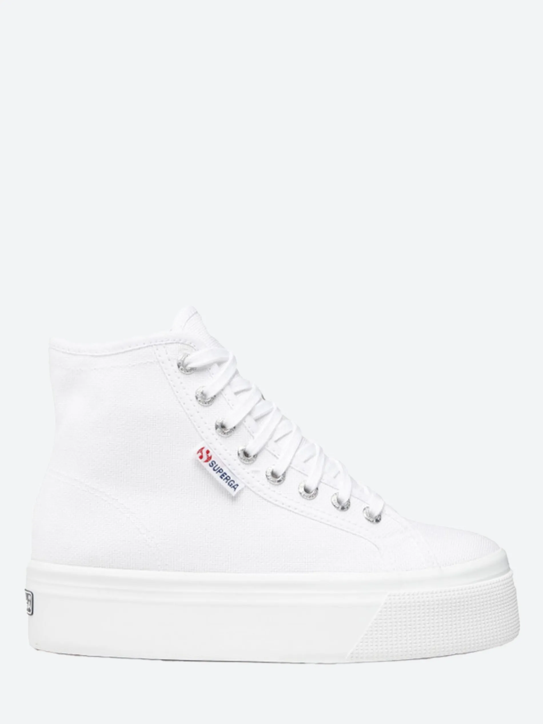The Superga Hi Top is a cross between their classic tennis shoe shape, and a platform shoe, featuring a chunky vulcanized rubber sole for extra height.