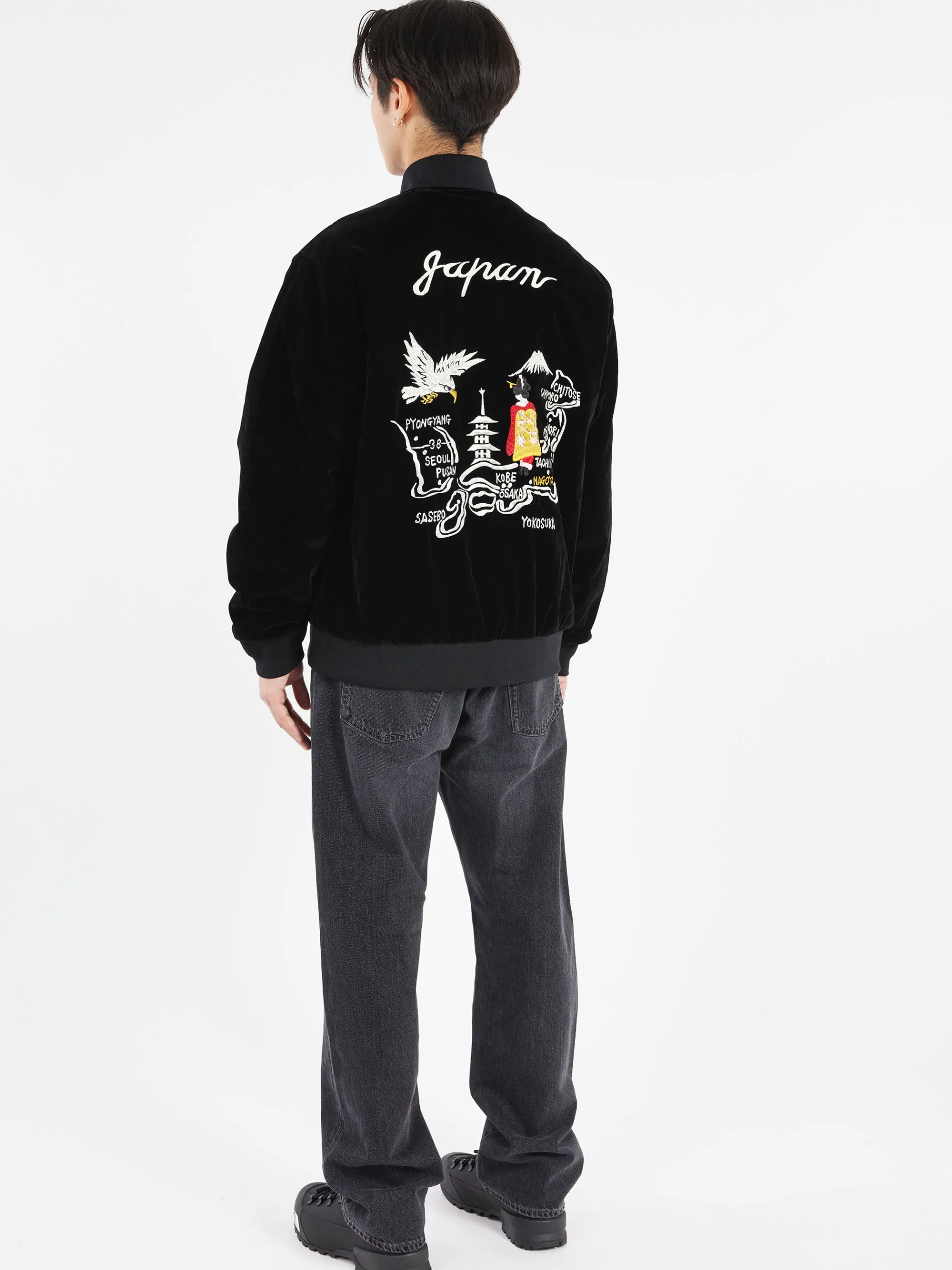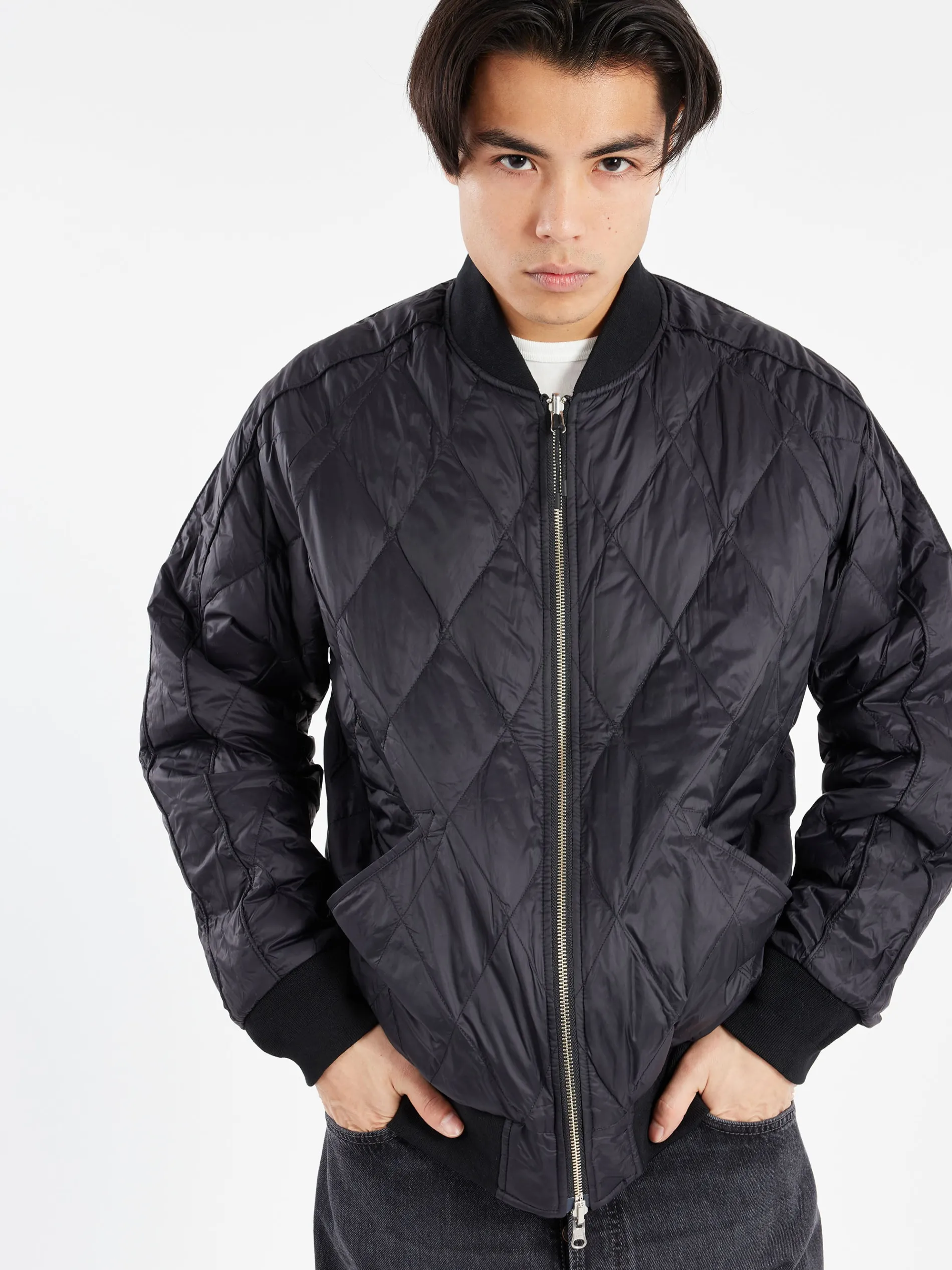 TAION reversible bomber jacket with sukajan embroidery on the front and diamond quilted down on the reverse.
