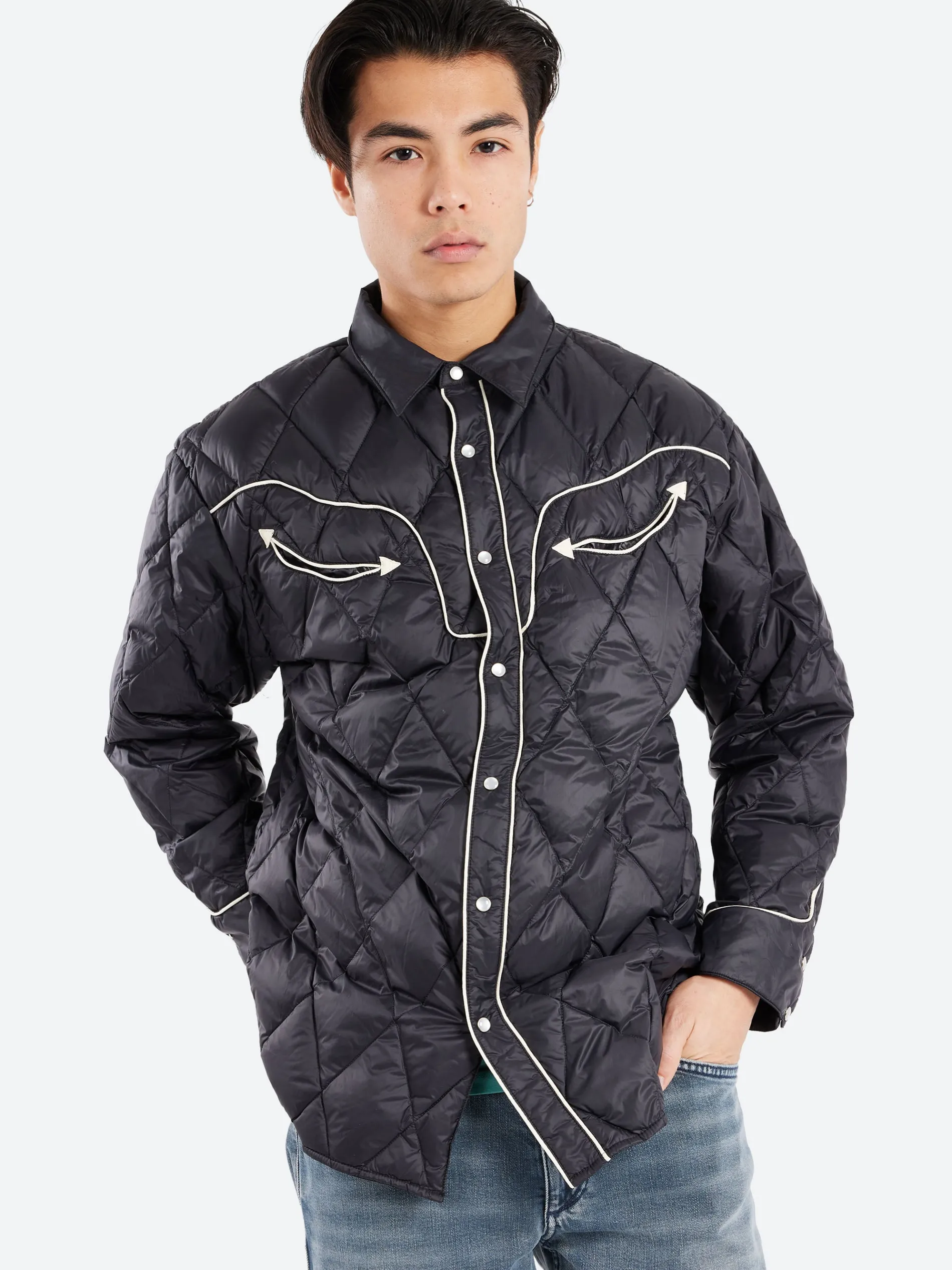 TAION shirt down jacket with western-style piping and diamond quilting. It can be stored compactly and is convenient to carry. Perfect for going out and traveling.