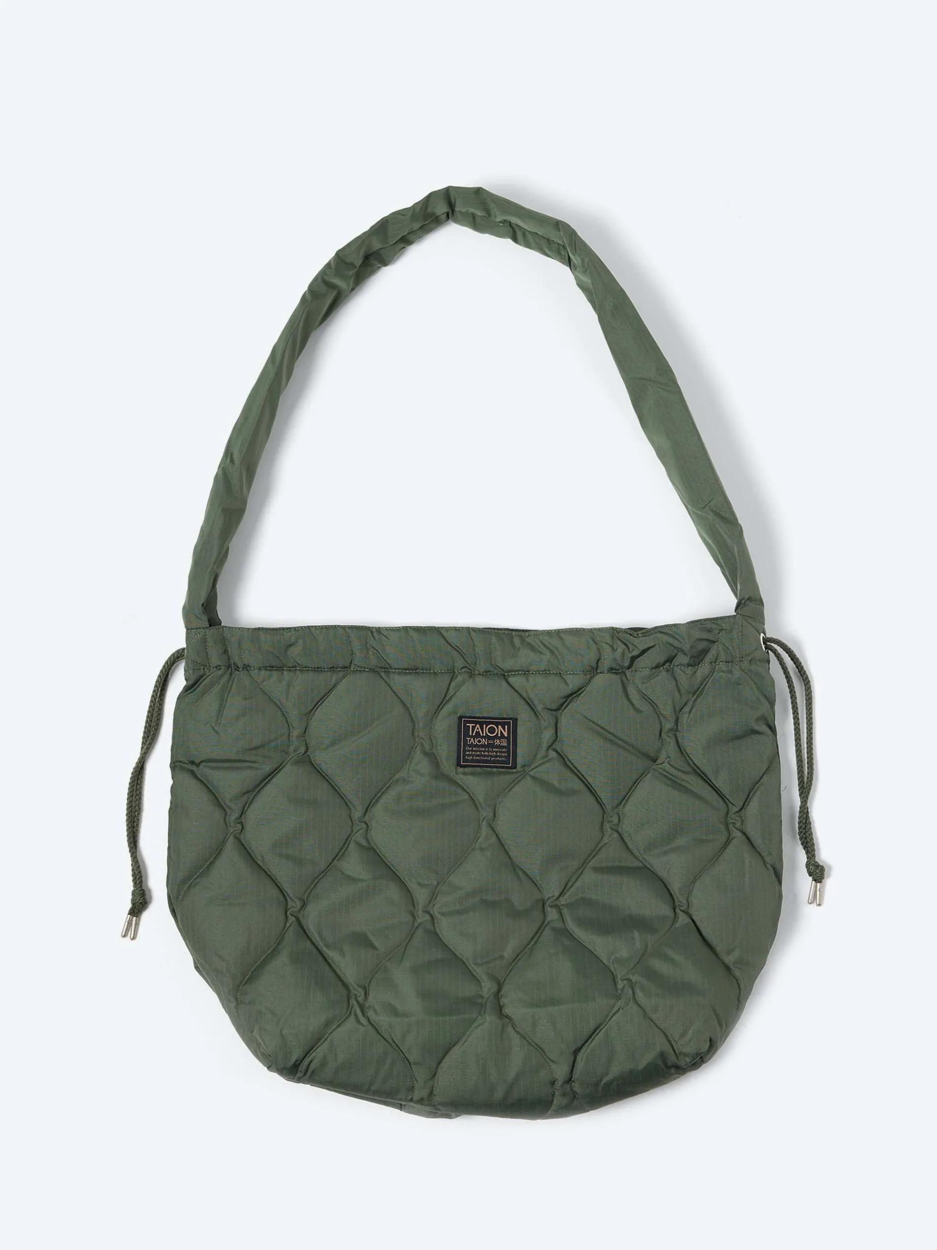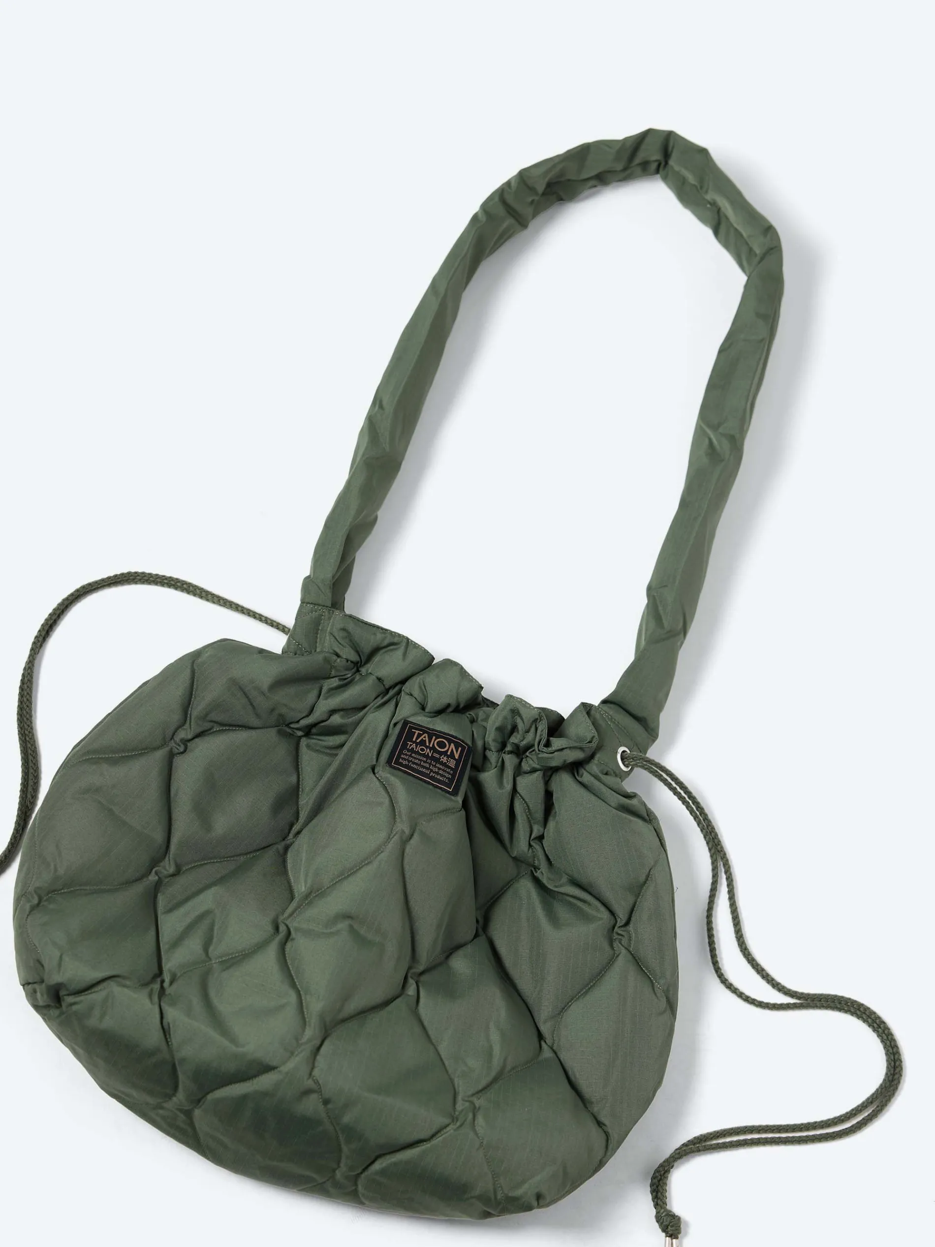 TAION military shoulder bag that can be worn two ways, either as a classic shoulder bag for everyday use or a string bag that tightens at the top and can be packed with everyday essentials.