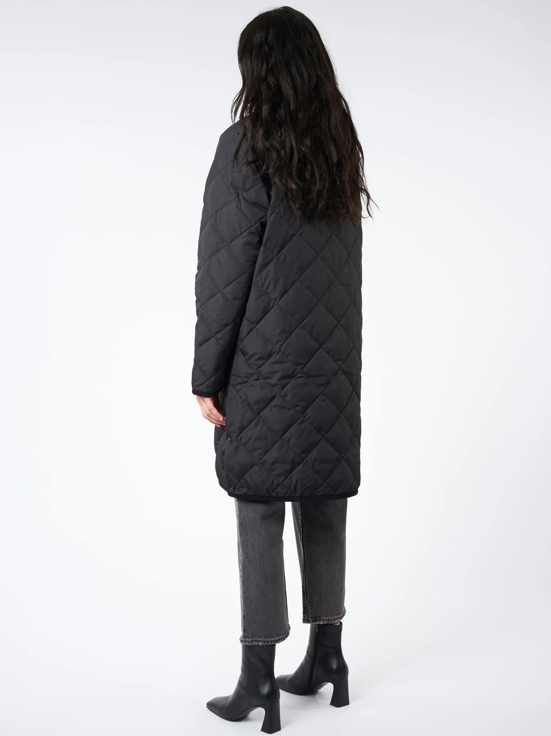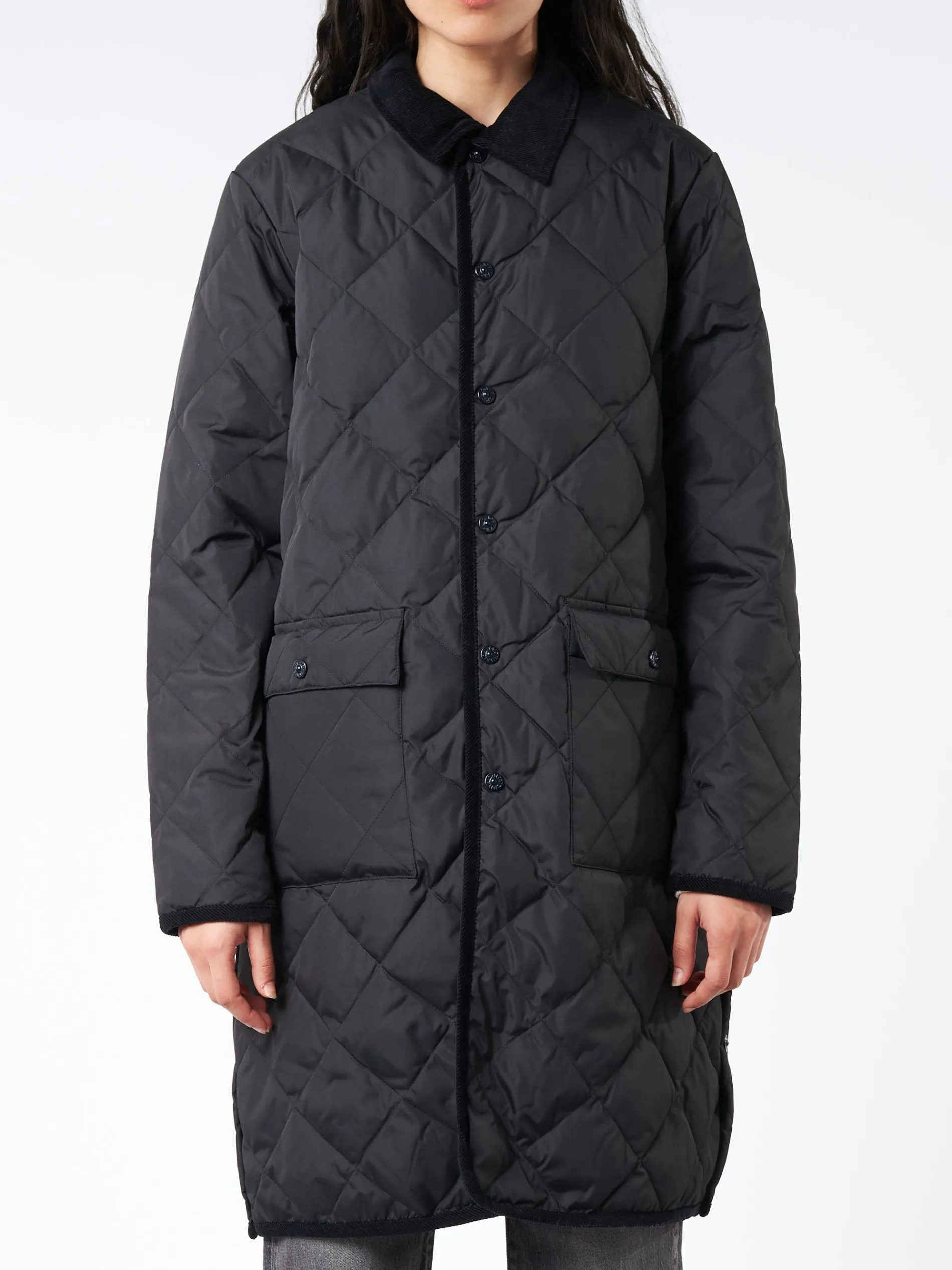 TAION down jacket that can be worn in a variety of situations, from casual to formal. Recommended as a light outerwear or as an inner layer under a coat in the cold winter. Made of comfortable stretchy fabric with diagonal quilting, and is finished with corduroy fabric piping.
