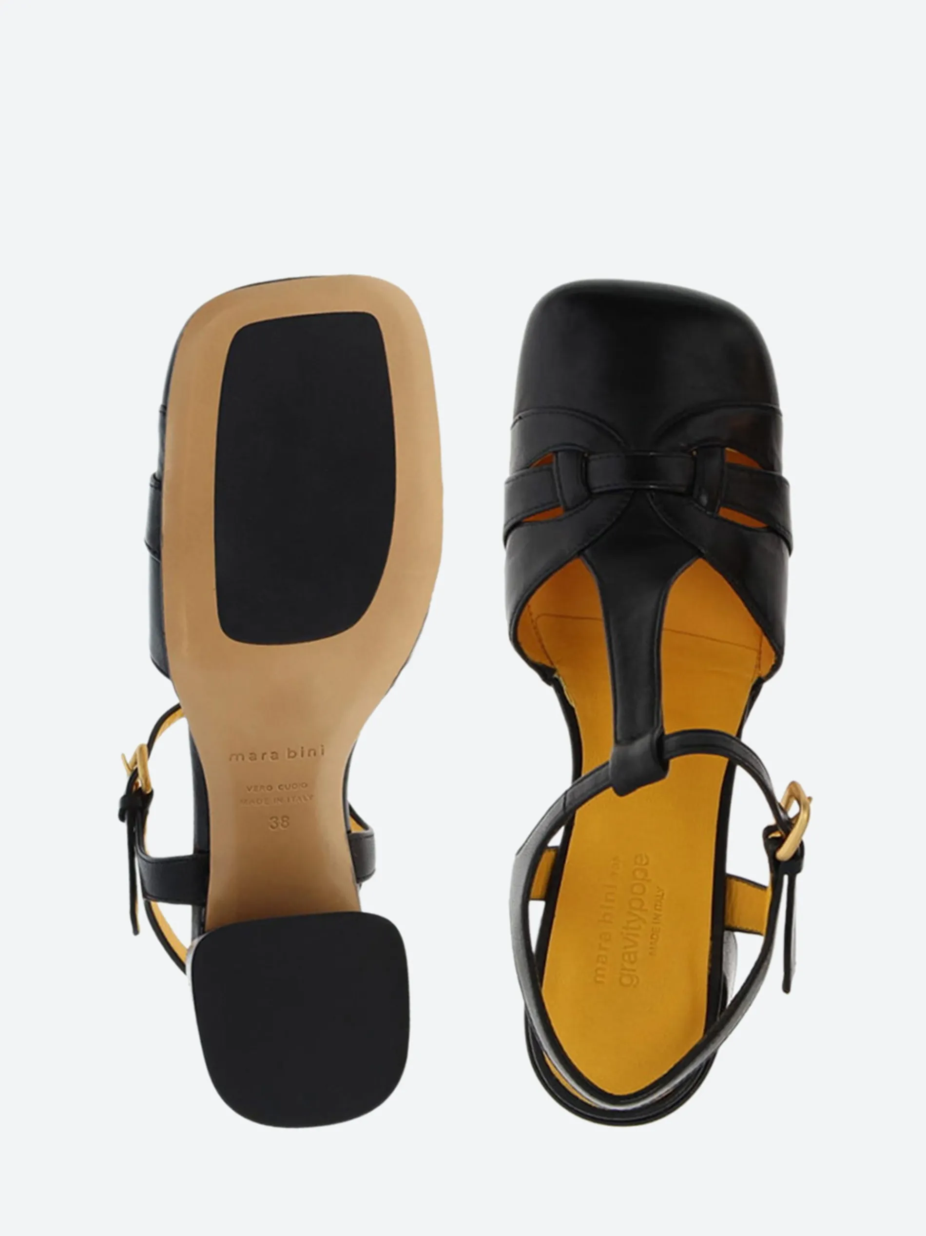 Mara Bini T-strap sandal is minimally designed with an on-trend square toe.