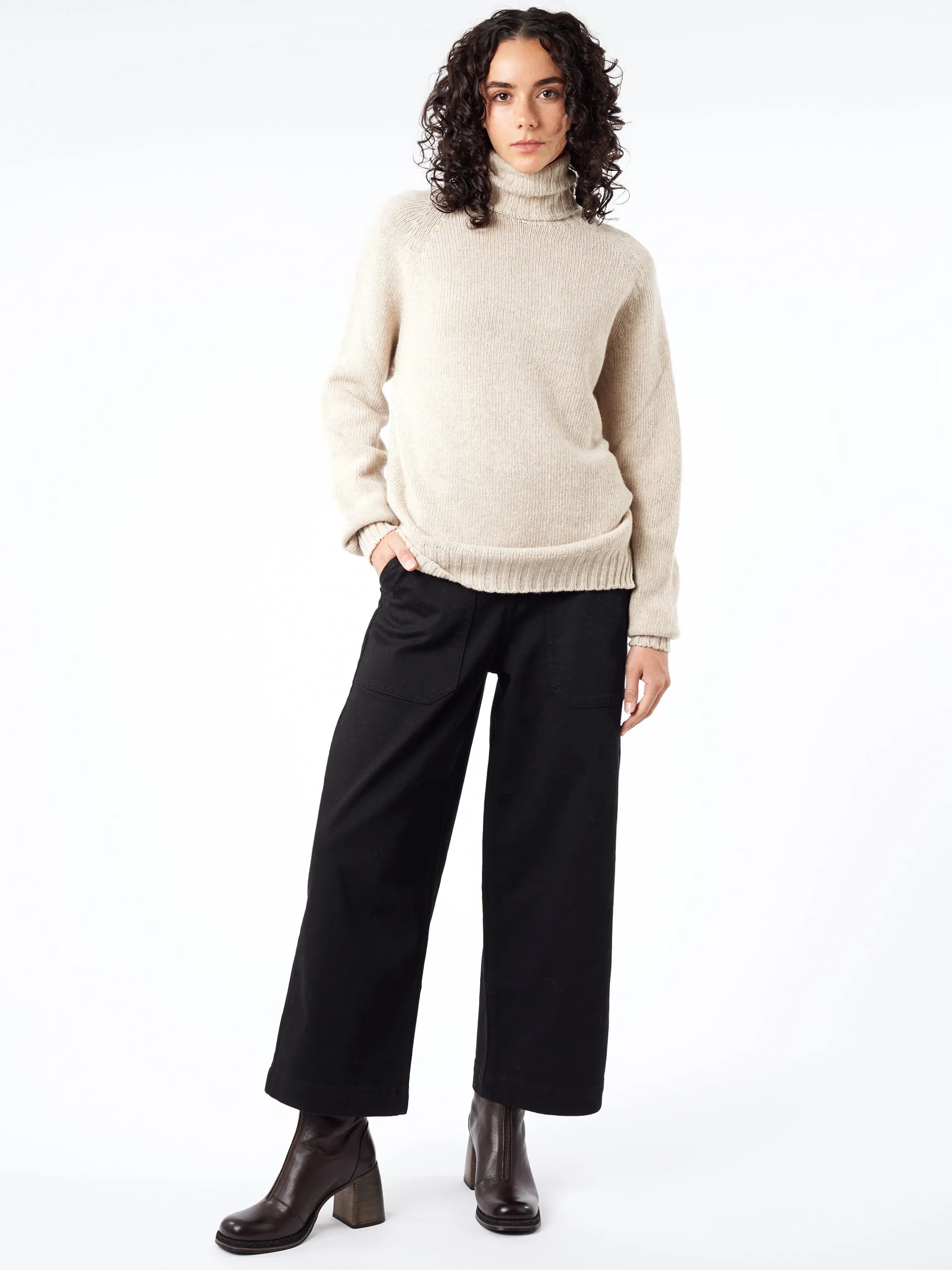 TOAST Annie trousers feature deep patch pockets at the sides that nod to workwear pieces. Crafted from organic cotton denim with a touch of stretch to fit neatly at the waist with long-cropped legs. The horn used for these buttons is a by-product of food production and has been carefully sourced.