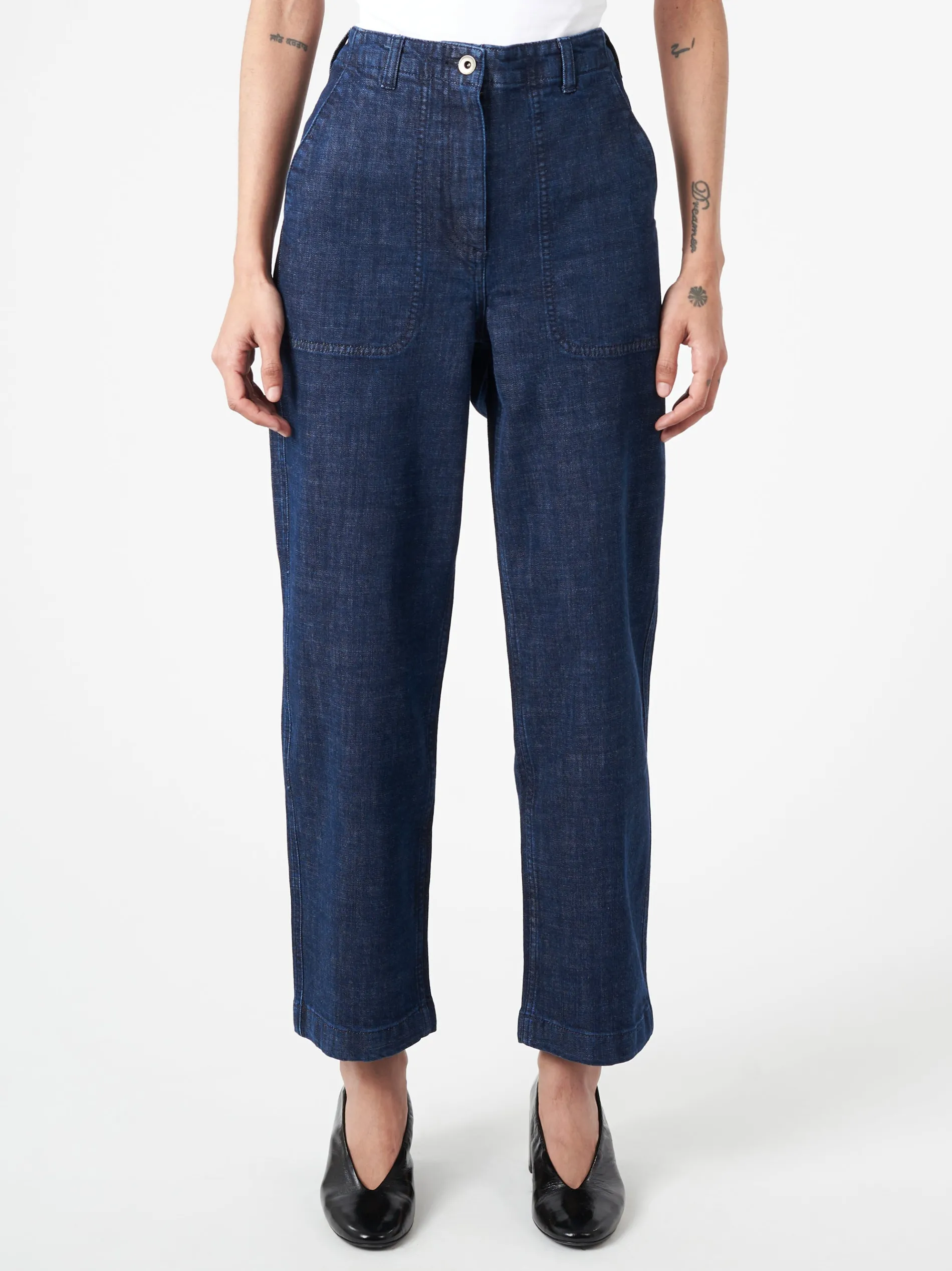 Ashley Jeans are cut with easy, straight legs that fall to long cropped hems for an unstudied air. Crafted from organic cotton denim dyed with indigo-coloured dye, through a technique that uses up to 70% less water than regular processes.