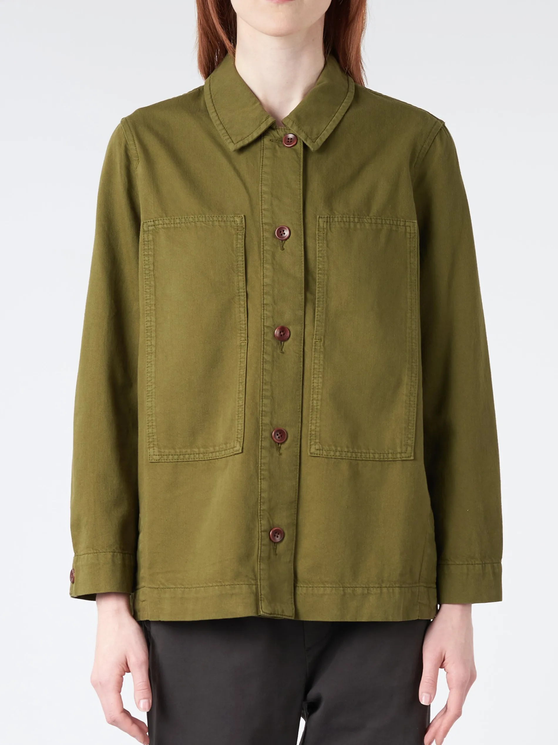 The exaggerated patch pockets accenting TOAST’s shirt are accessed via center-side openings. Crafted from organic cotton denim to an easy shape.