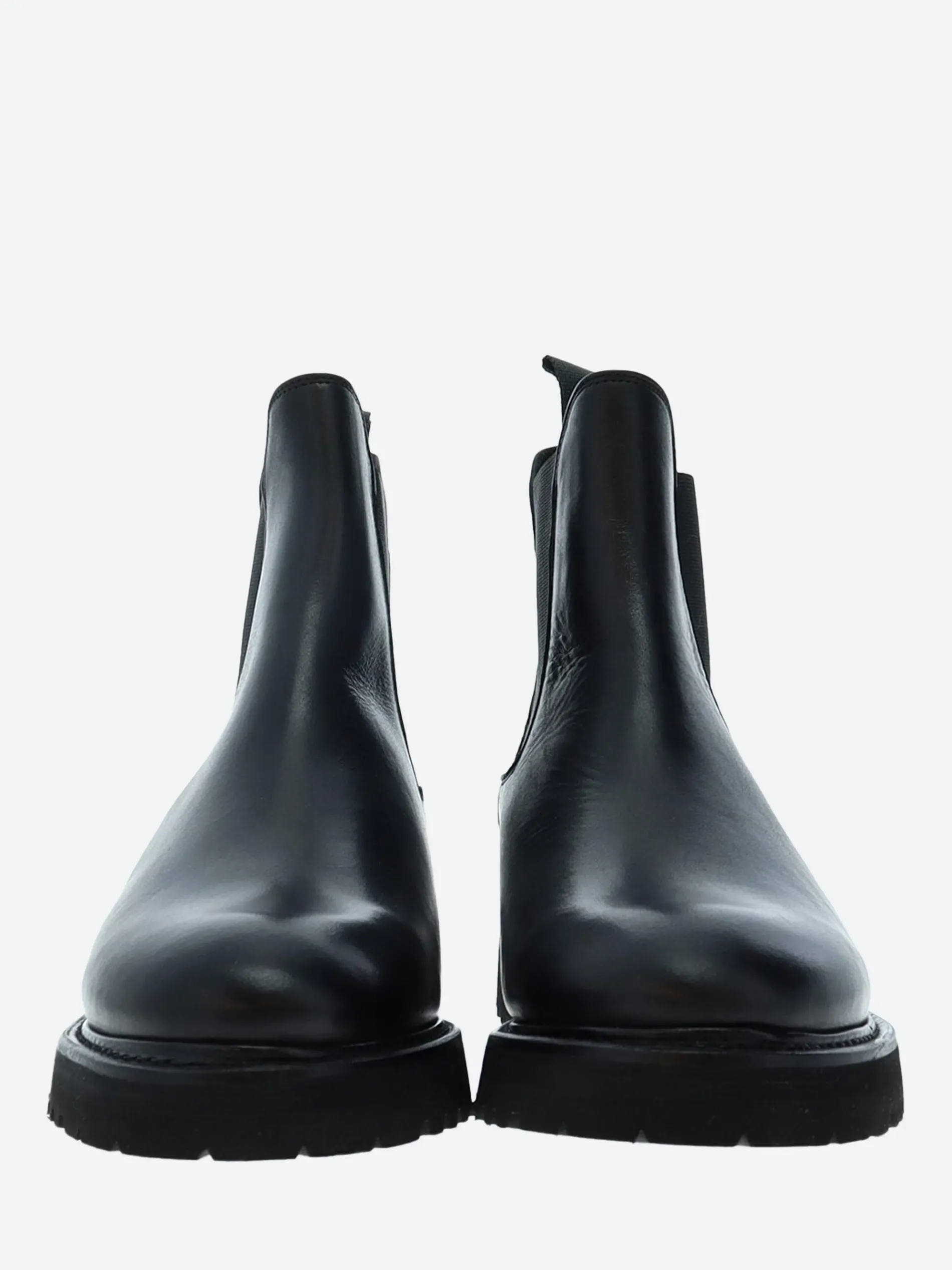 Chelsea boot has a Vibram commando rubber sole for a rugged look.