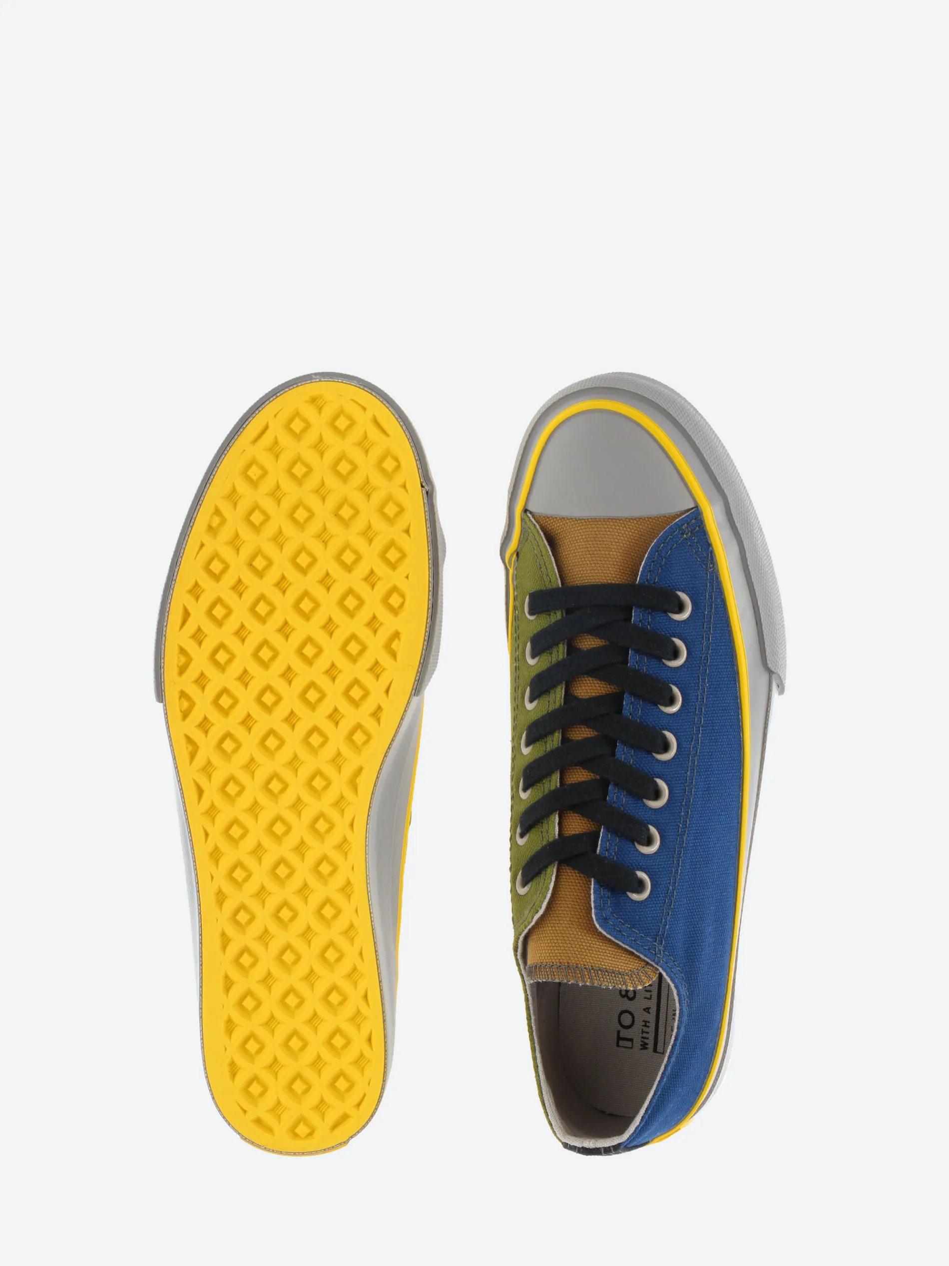 Yukitsugu by TOu0026amp;CO. is a stylish women’s sneaker crafted from multi-colored canvas panels. Featuring a round toe and a rubber insert at the toe cap, this sneaker combines classic design with modern comfort.
