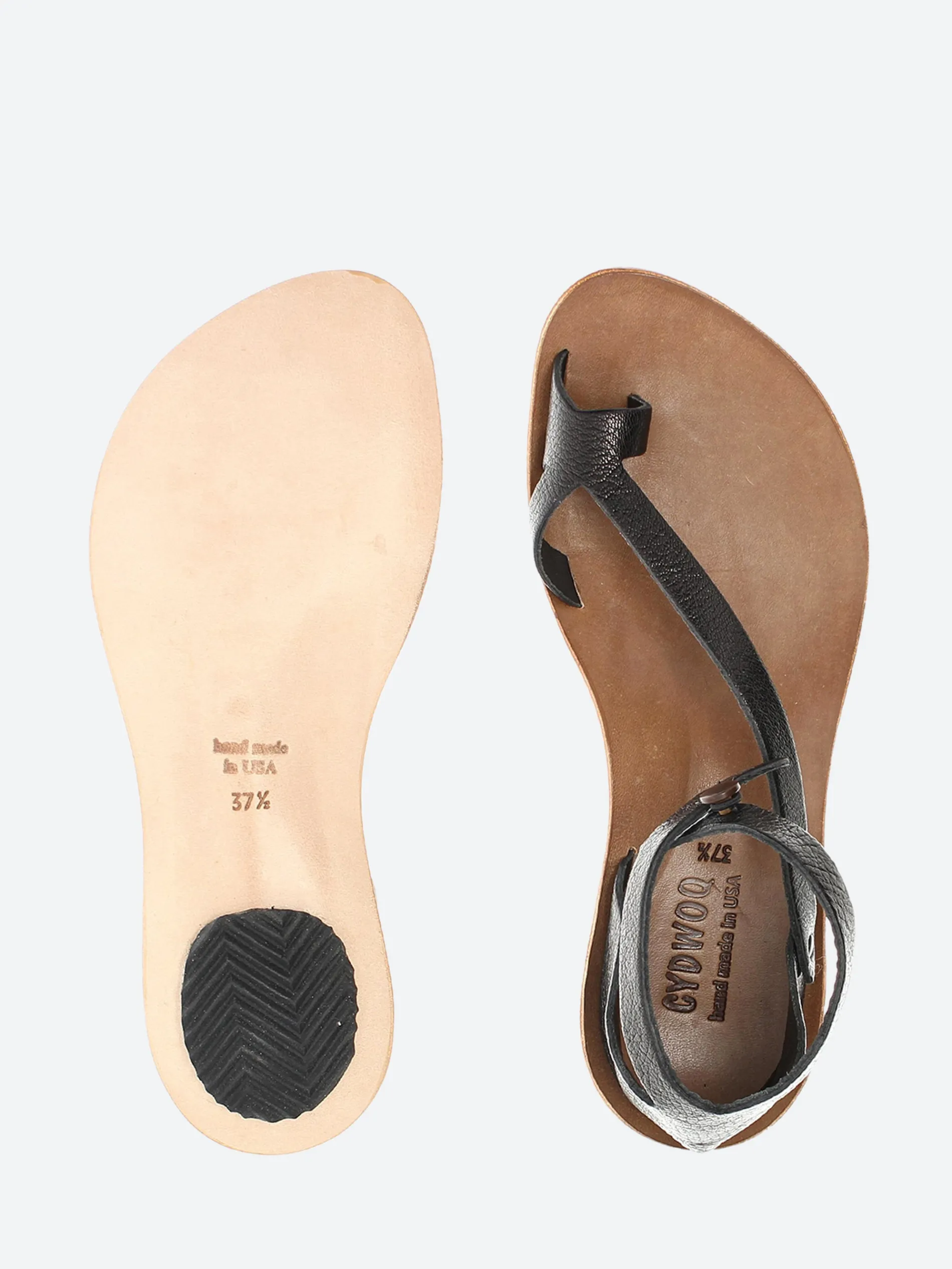 Cydwoq simple sandal in metallic leather. The all leather construction offers arch support.