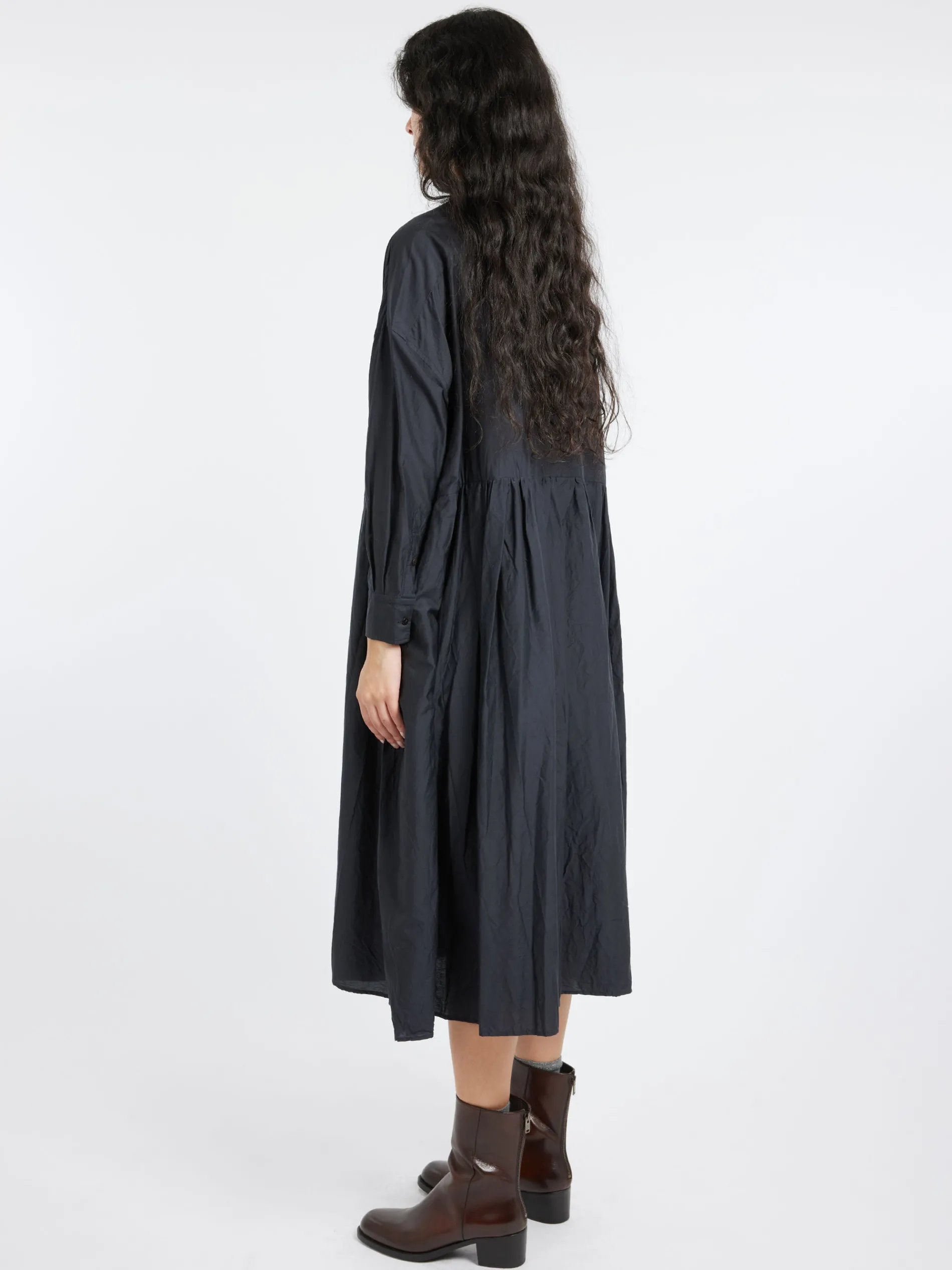 Toujours shirt dress with gathered waist and concealed button full placket in small checked cotton silk blend.