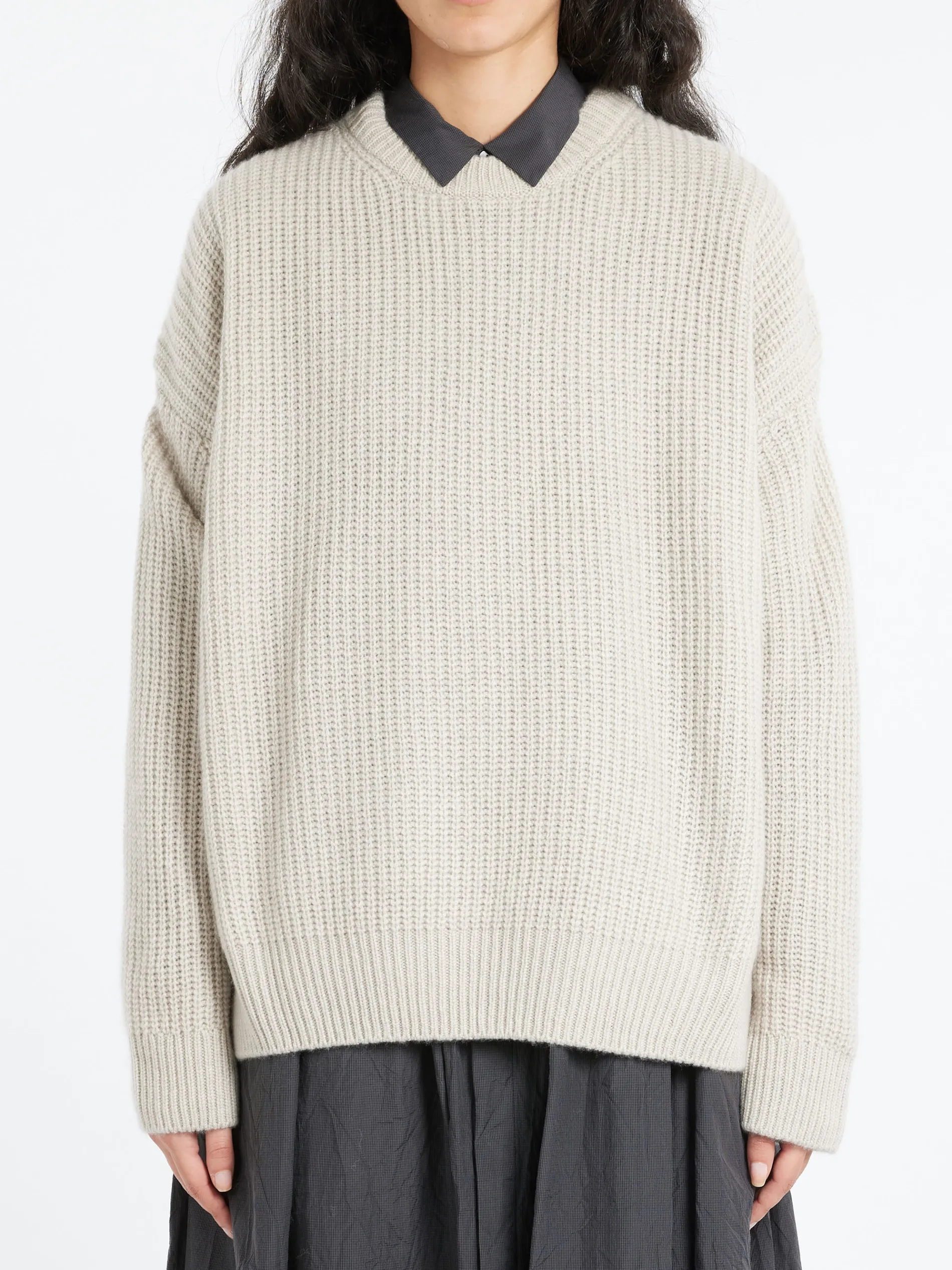 Toujours crewneck sweater made from a super fine cashmere knit. The knit has a modern silhouette with ribbed finishes and a relaxed cut for easy wearing.