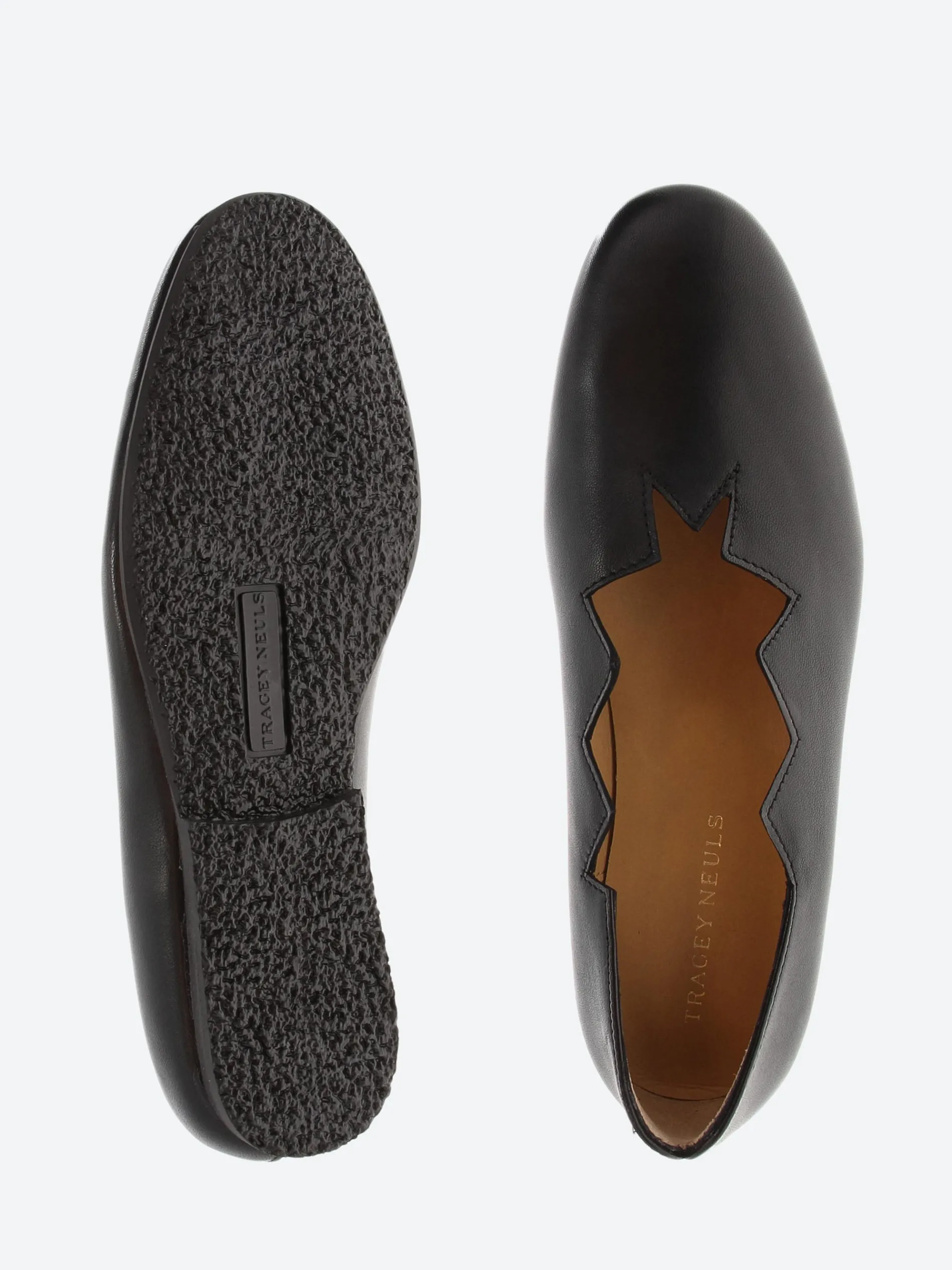 Angular cuts of leather, zig-zag around your feet. The shoe and your foot become equal parts of the design.