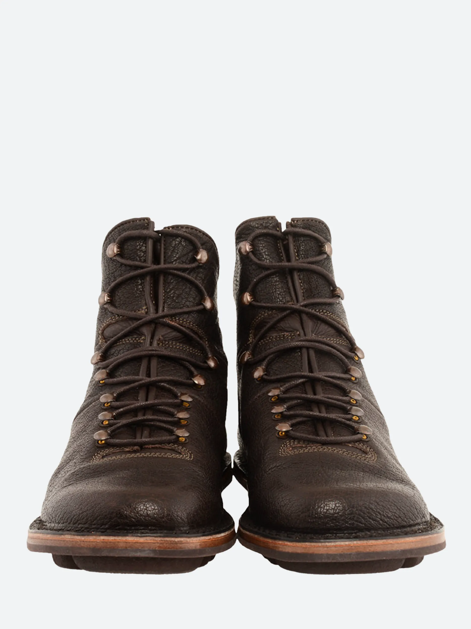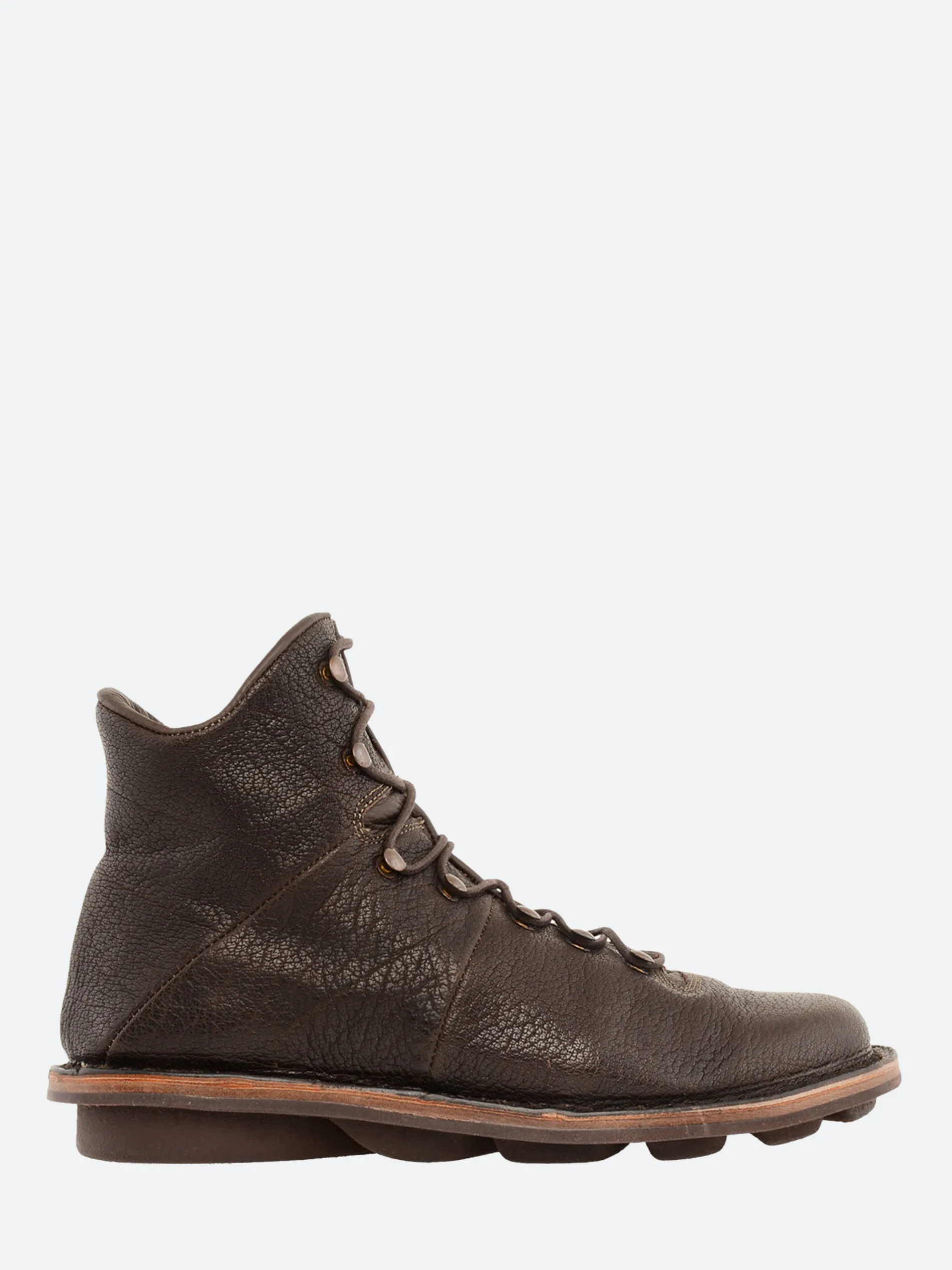 Trippen lace-up boot featuring hooks and eyes in the style of classic mountain boots.