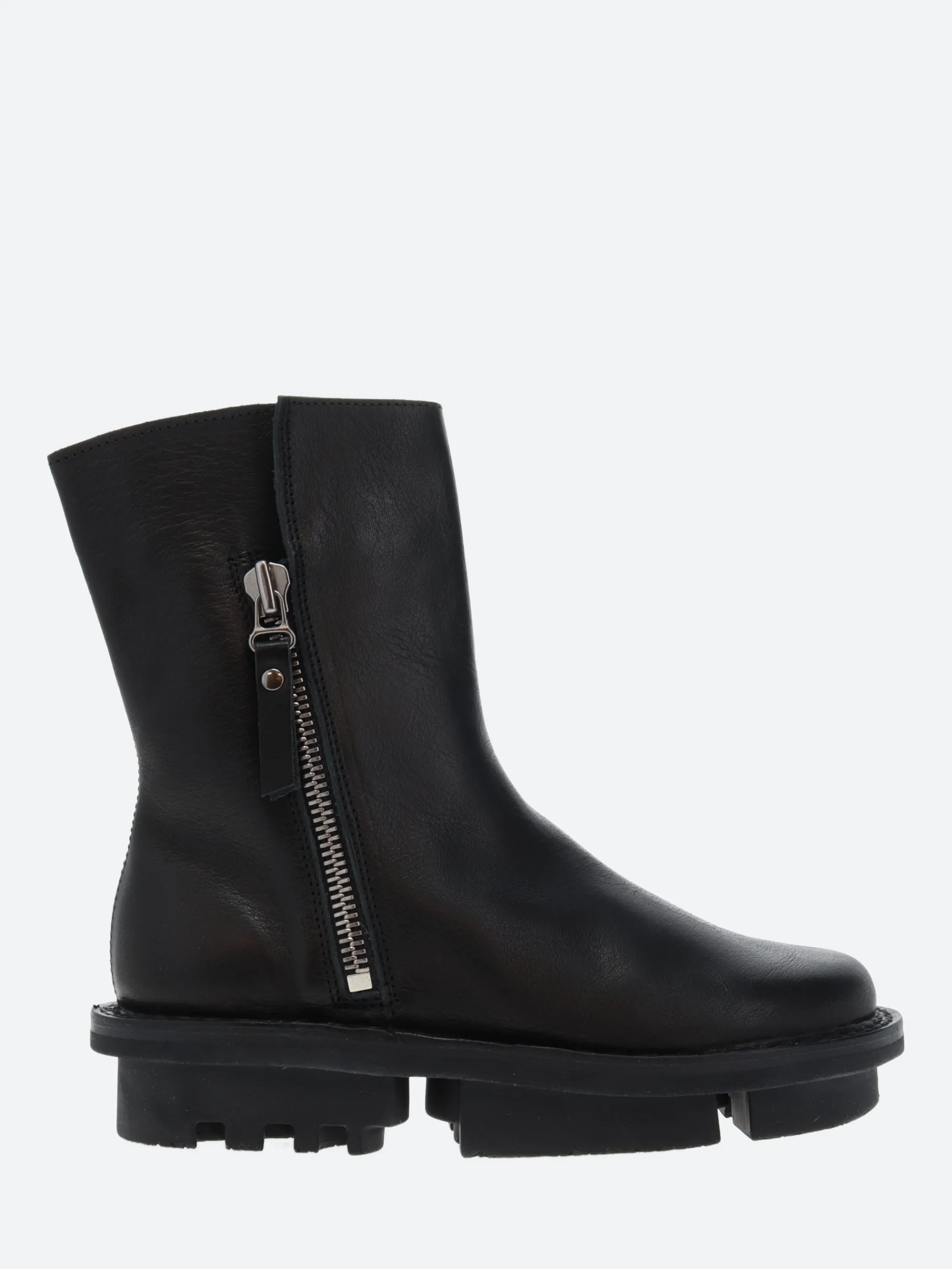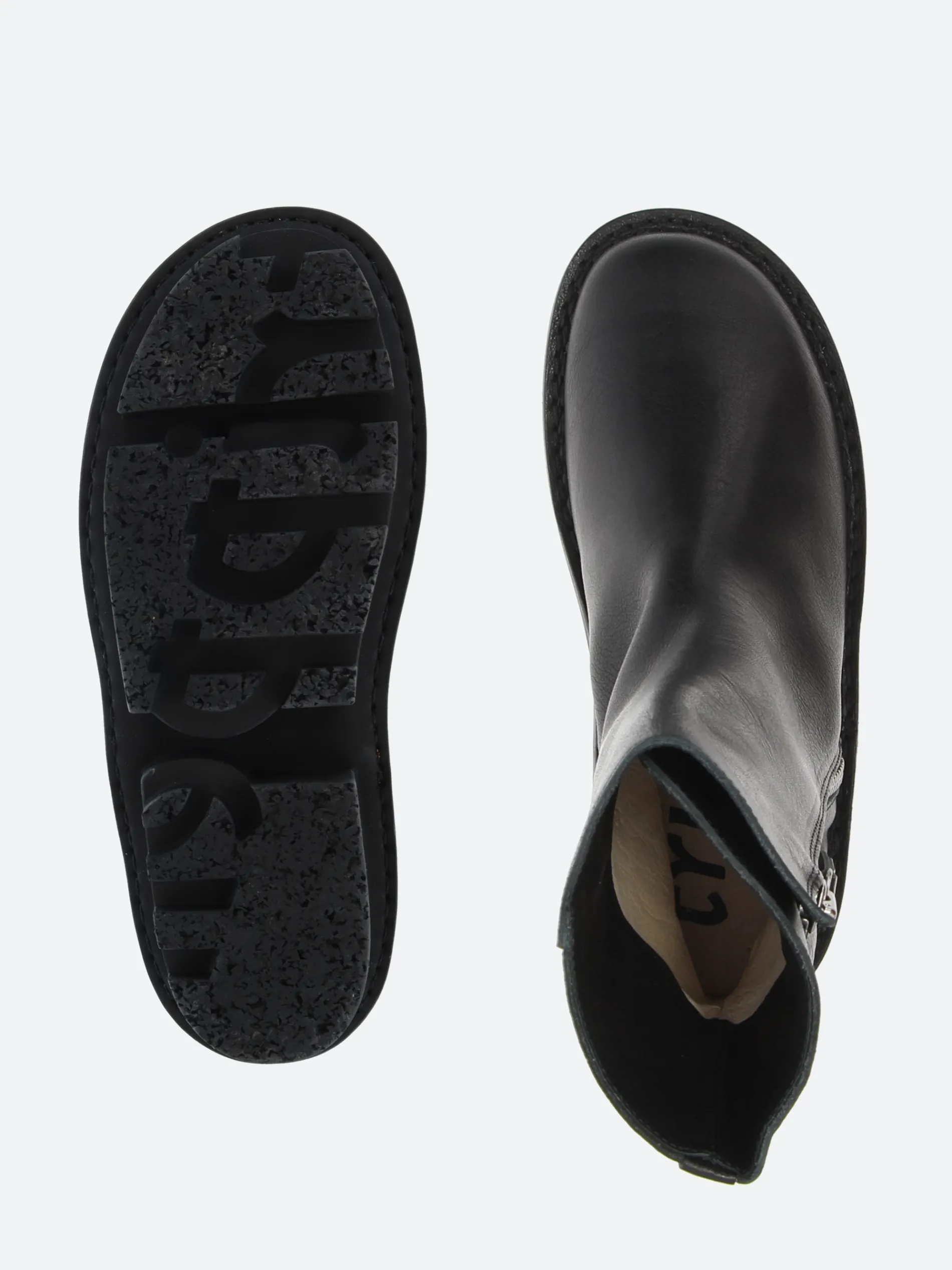 Trippen ankle boot with exterior metal zip fastening. Thanks to the large underlay and leather lining, the upper can be turned decoratively inside out at the top.