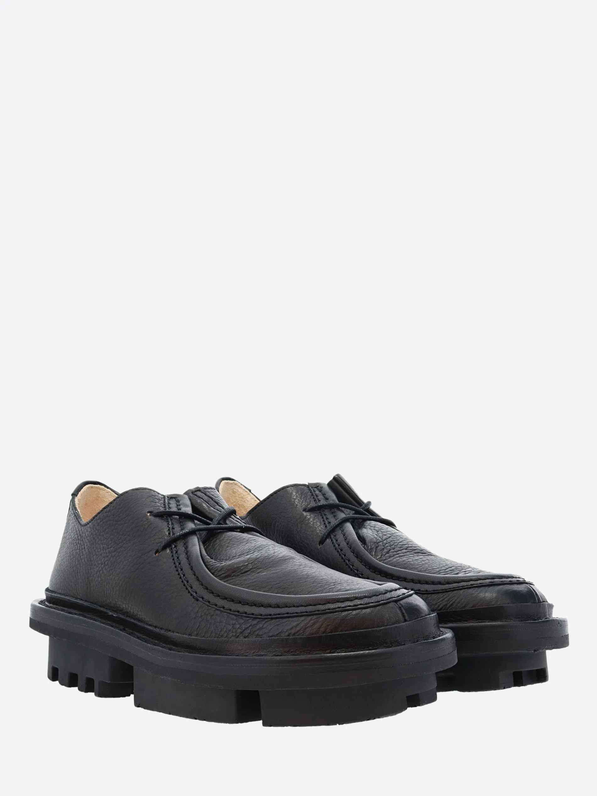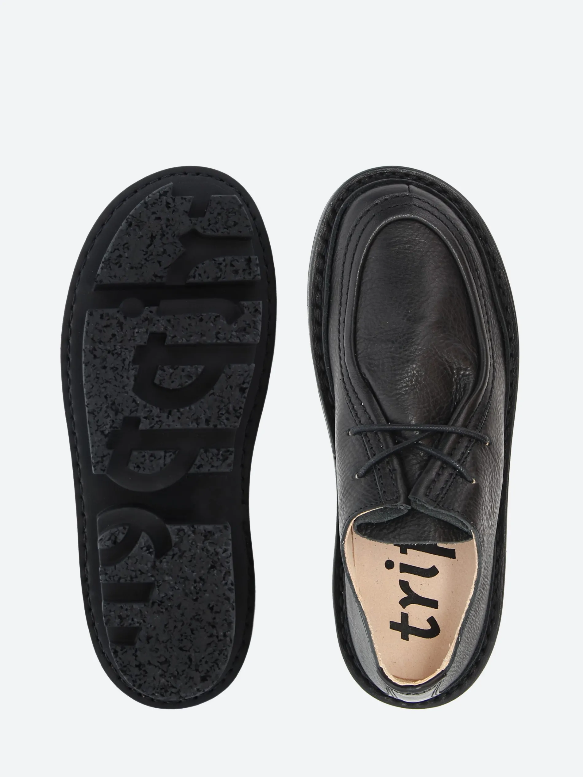 Trippen Goblet is a classic lace-up shoe with a dust flap and a dominant moccasin seam featured on the vamp.