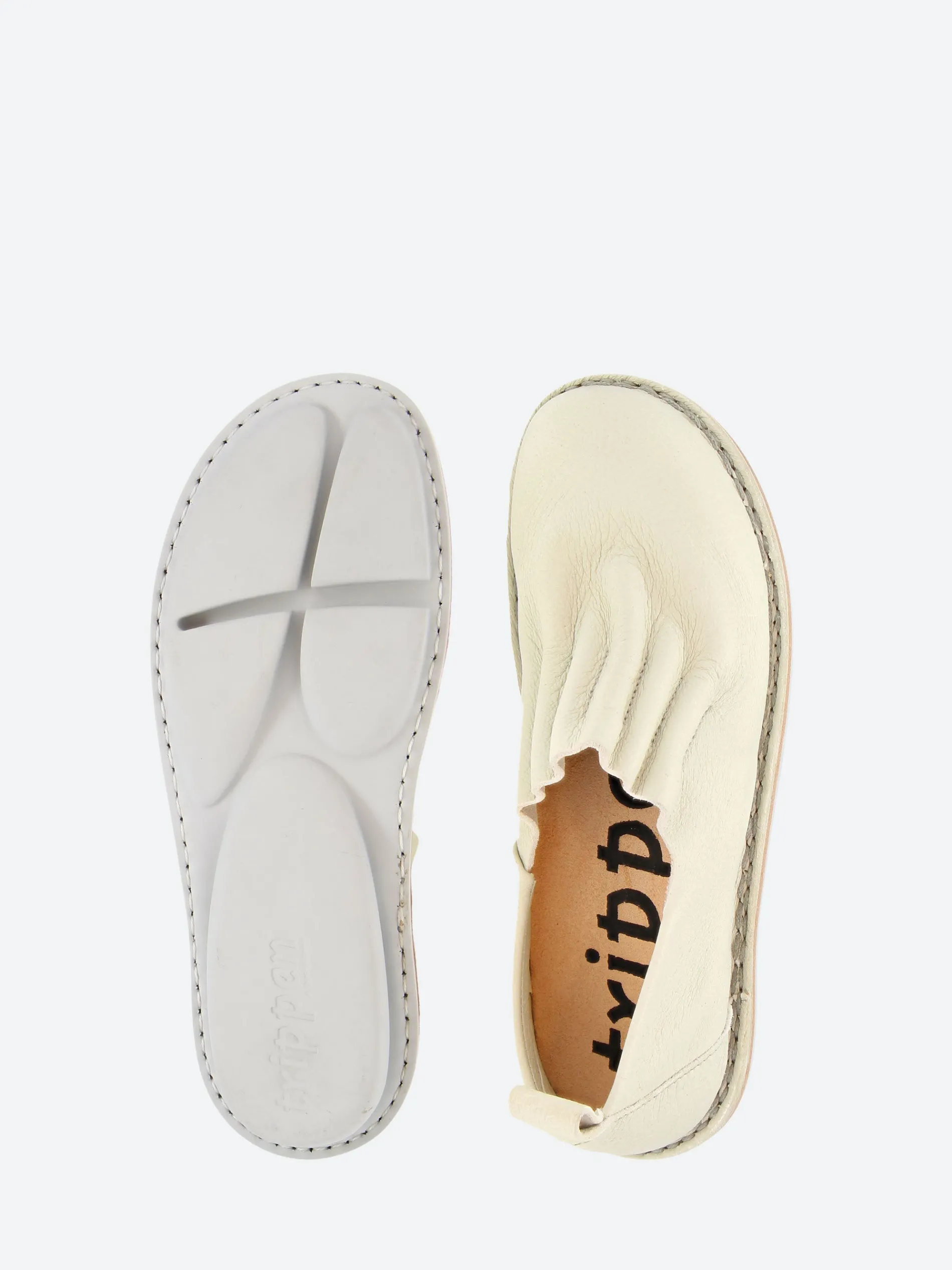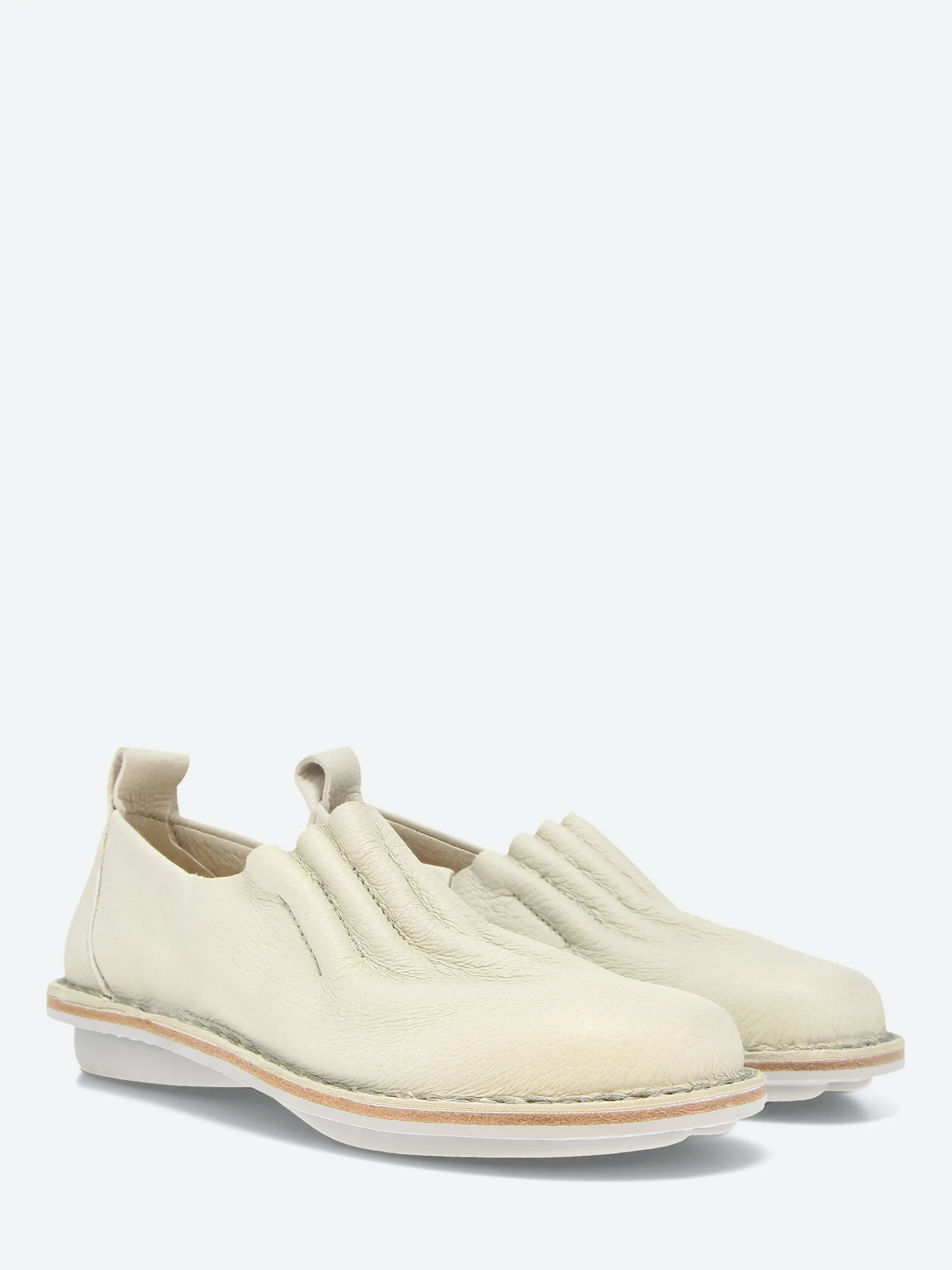 Soft and lightweight slip-on shoe, held in place by an inner elasticated band, which creates a delicate crease in the leather over the instep. The Closed have removable soles and insoles which can be easily replaced by own individual soles.