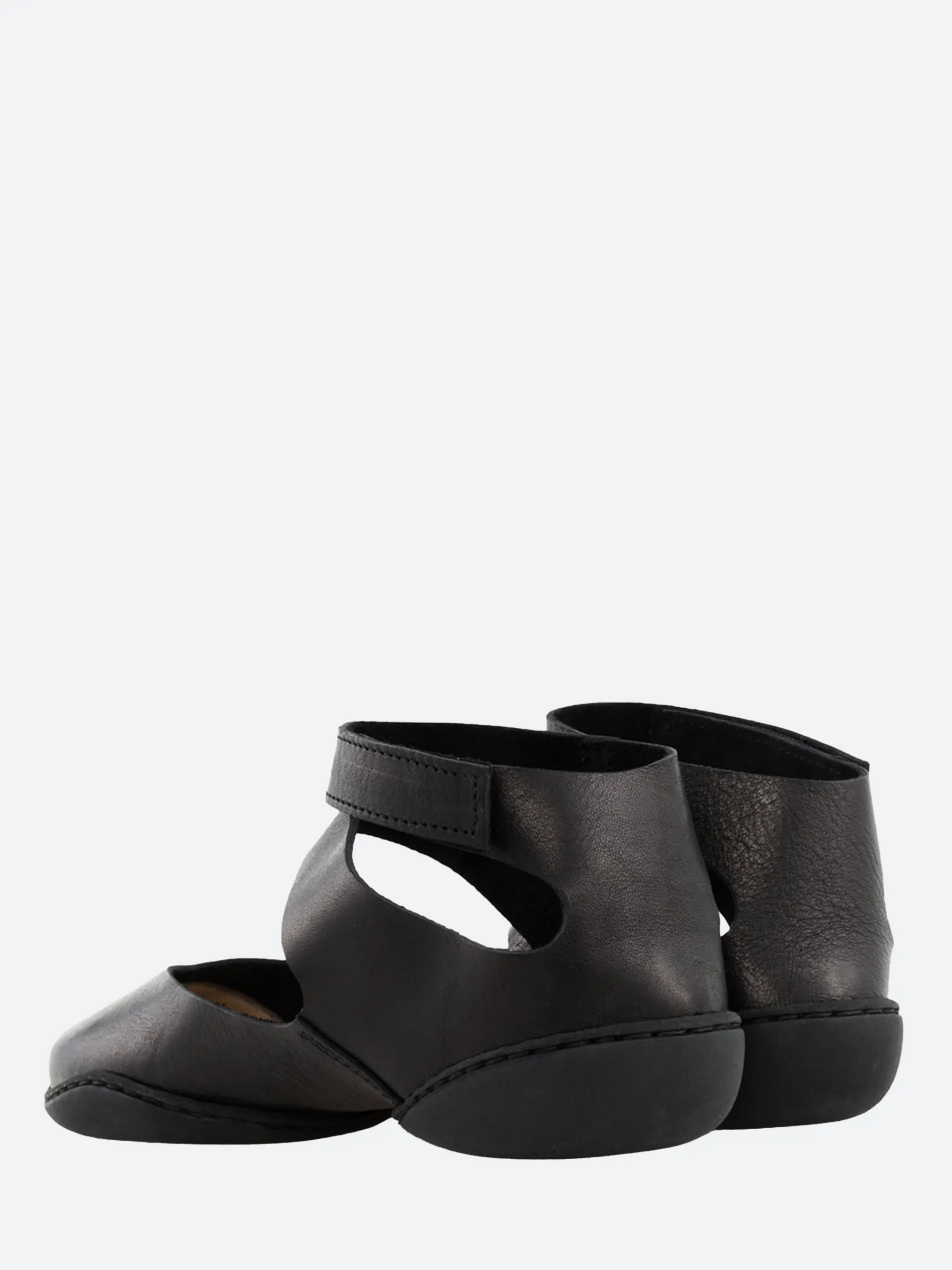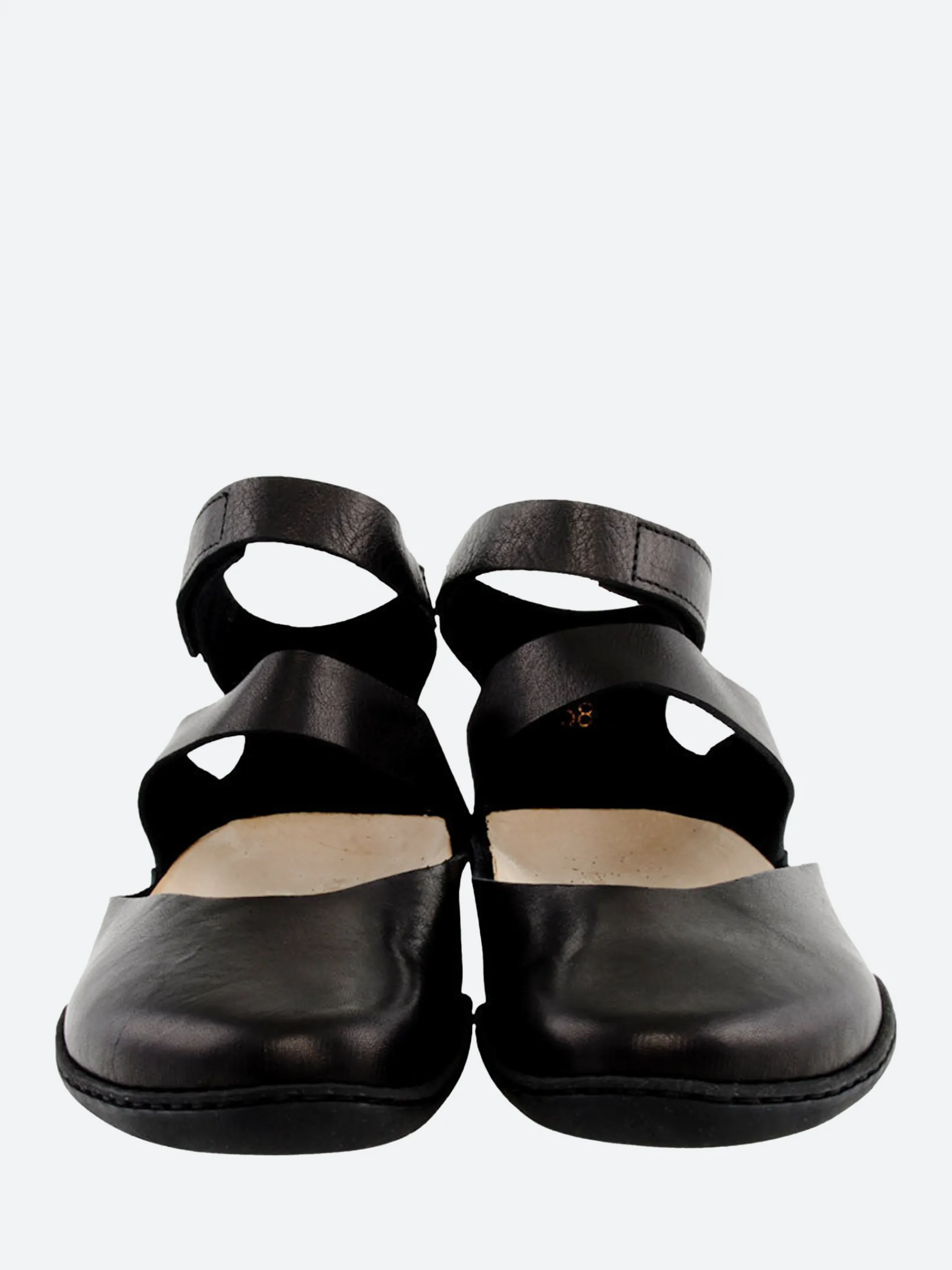 Low cut ballerina. While the front strap sits loose on the instep, the second strap has a Velcro fastening.