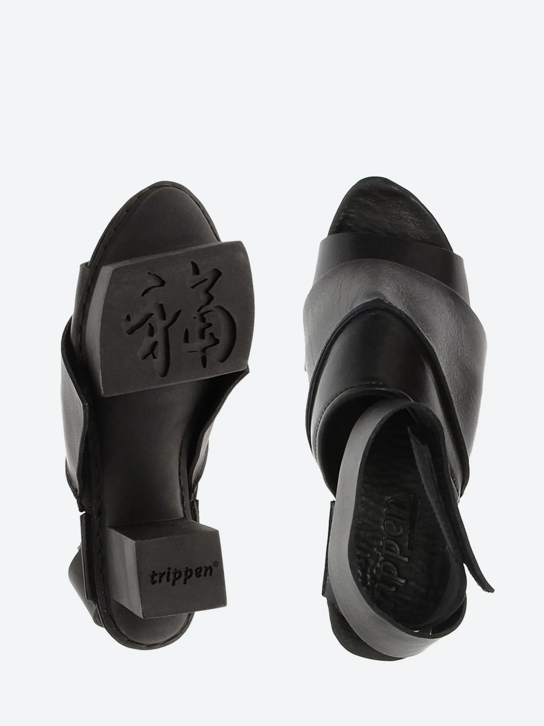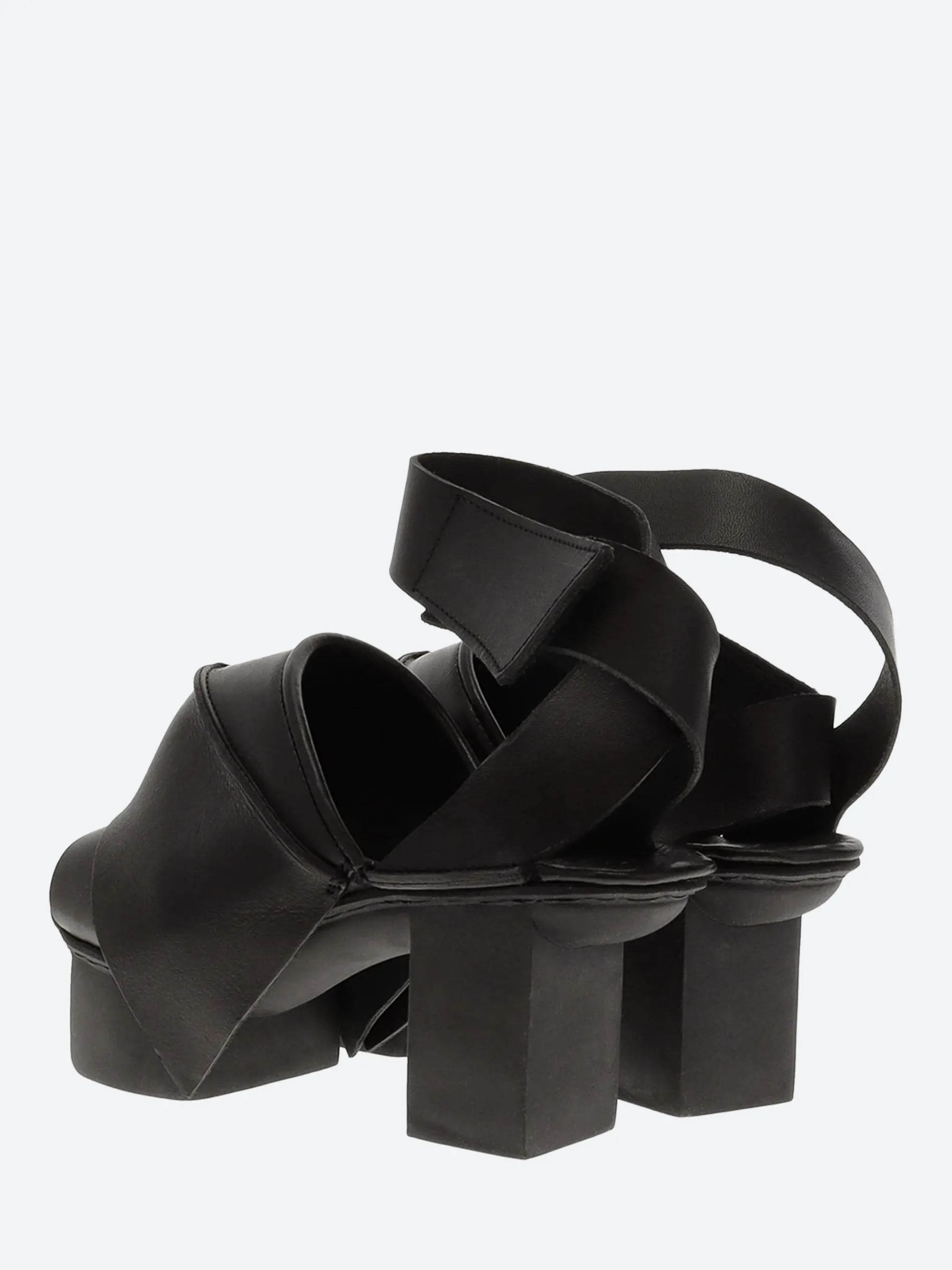 Trippen Happy Vigilant, a cubist three-dimensional sandal with an elegant crossed ankle strap to secure the foot.