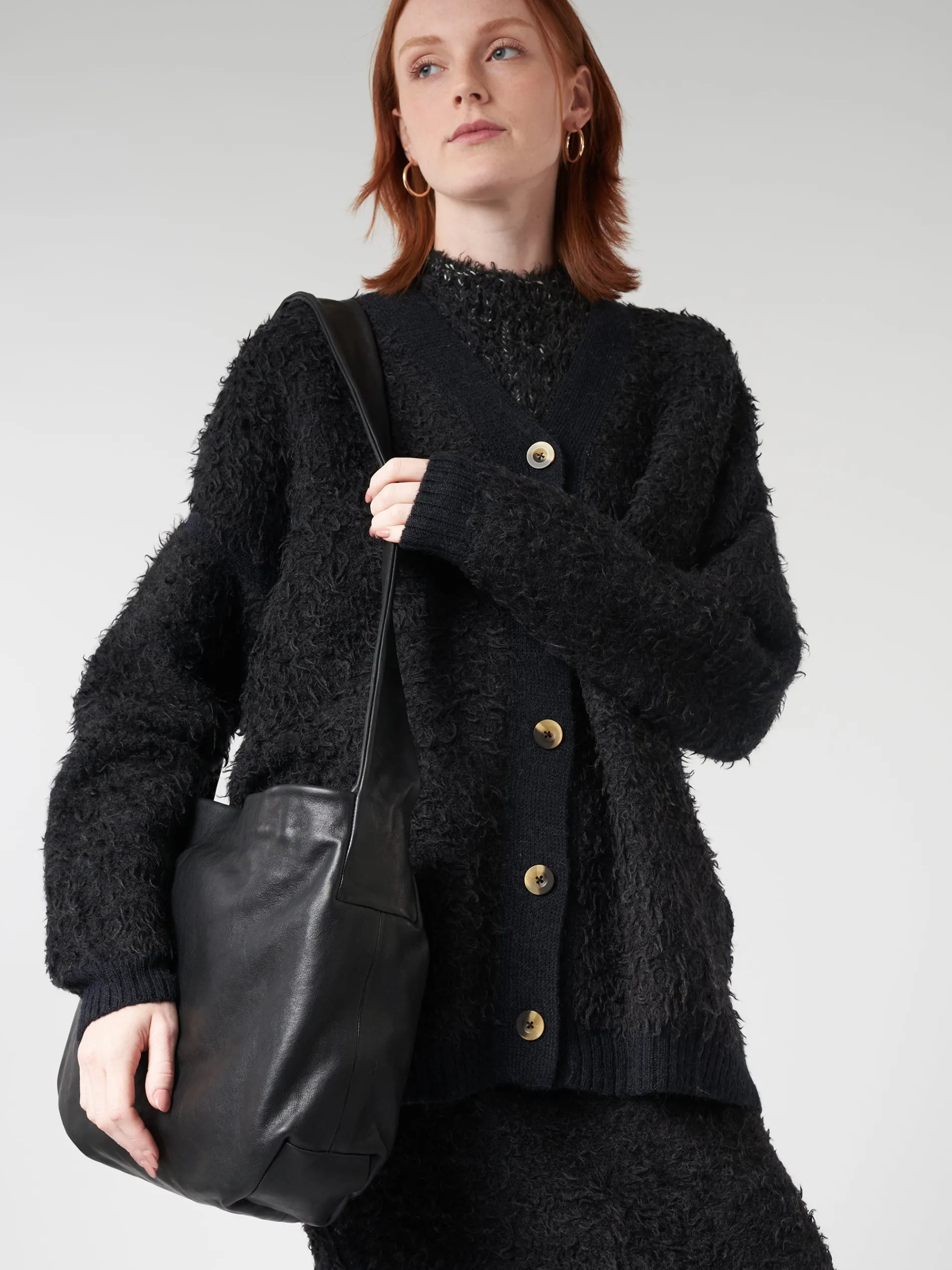 Shoulder bag with subtle details at the corners and the base of the strap, with inner pocket and zip fastening.