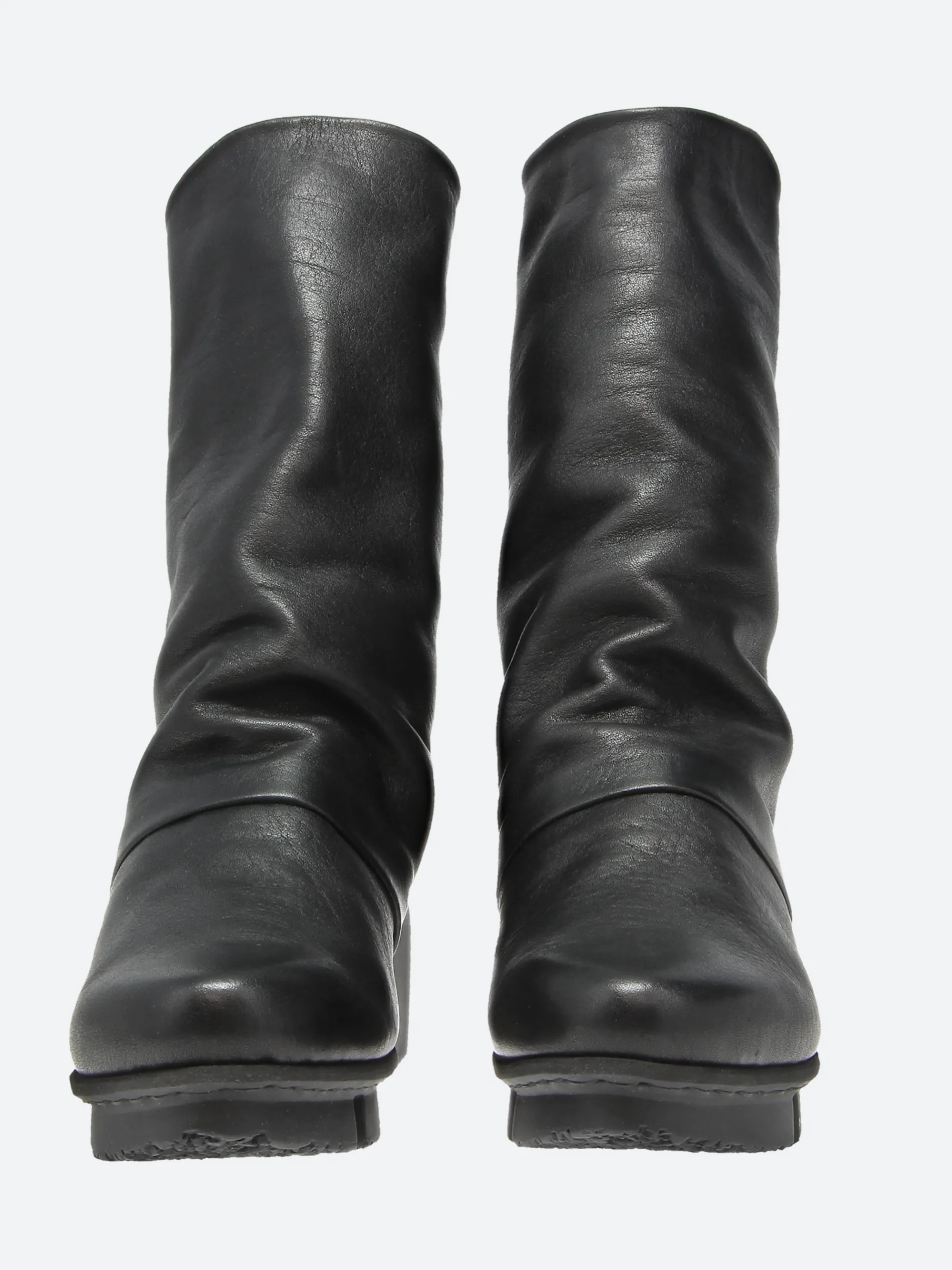 Mid-high, softly crafted boot that folds over the instep in soft pleats. The strikingly raised front part of the shaft promises a special standing.
