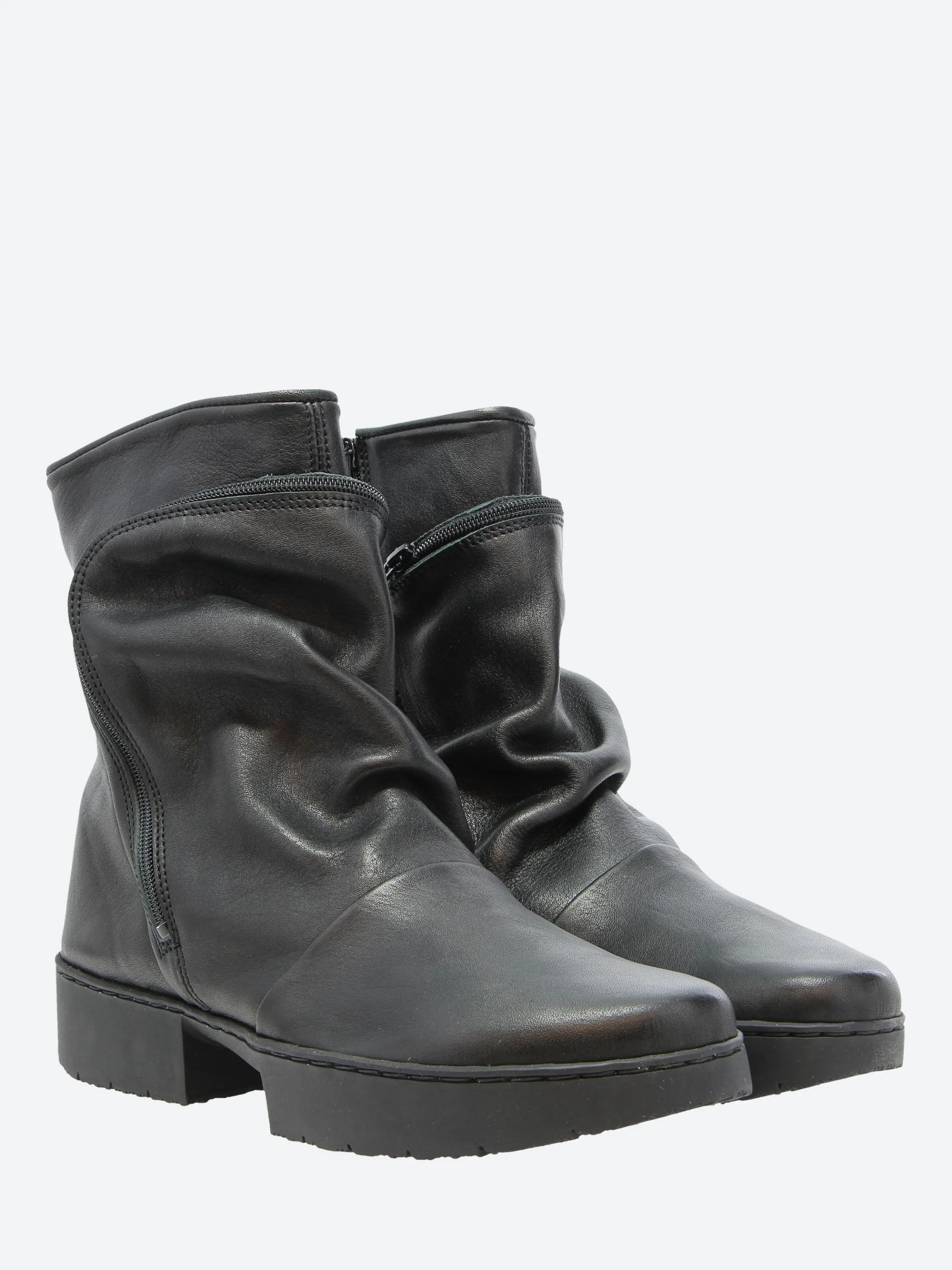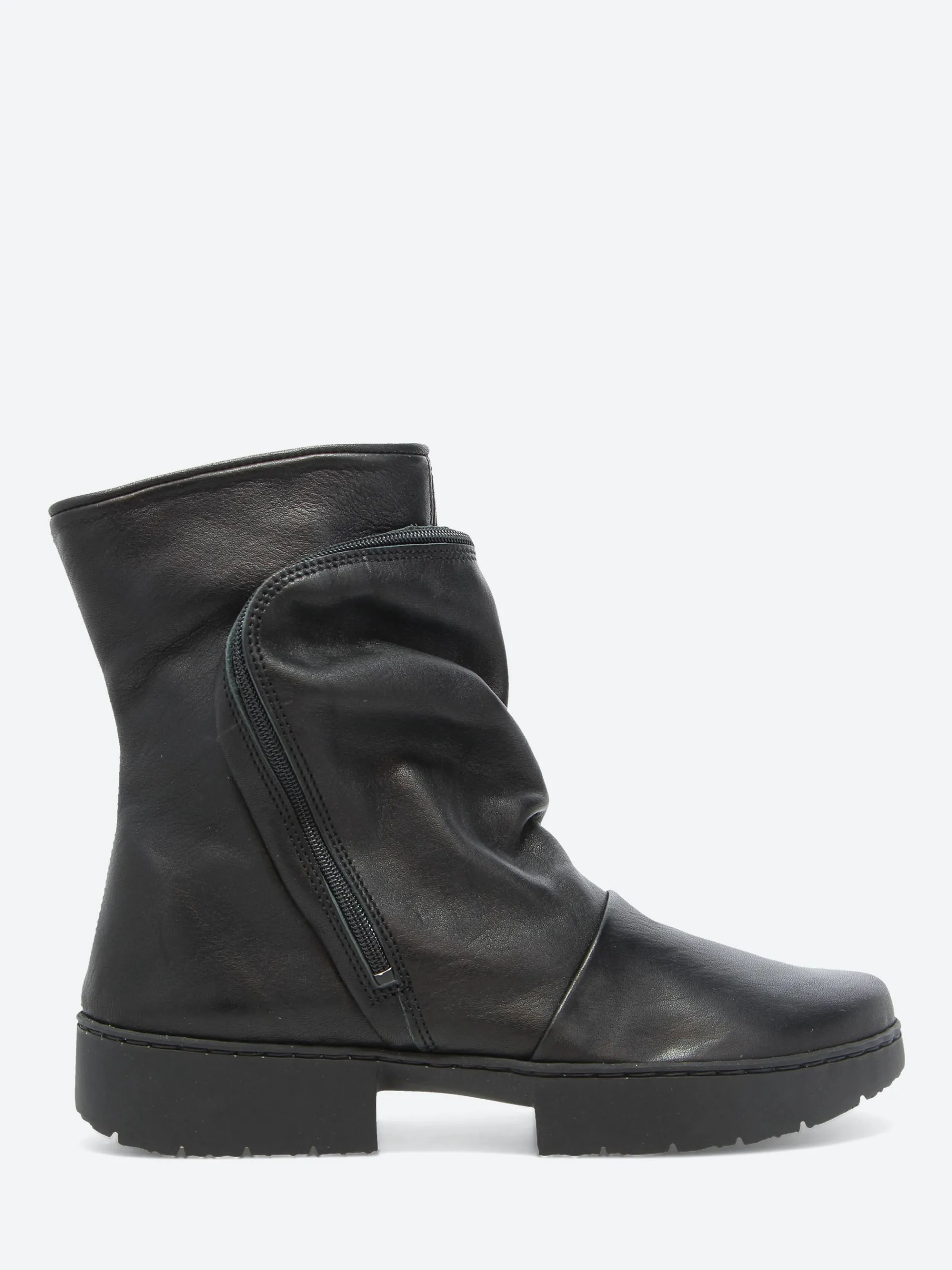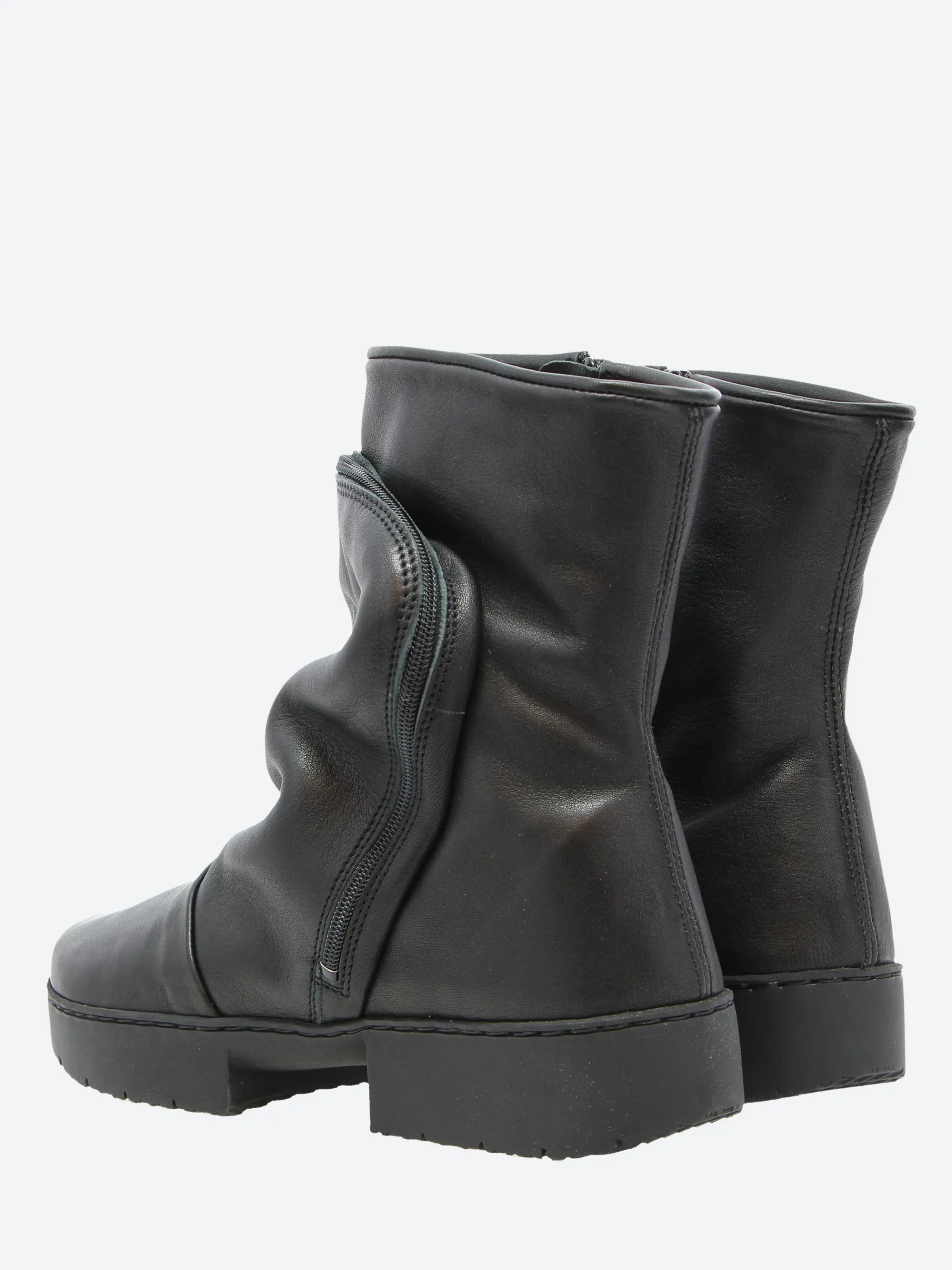 Ankle boot with distinctive zip which is as aesthetic as it is functional. The working pocket attached to the front of this style can be filled and creates a casual impression.