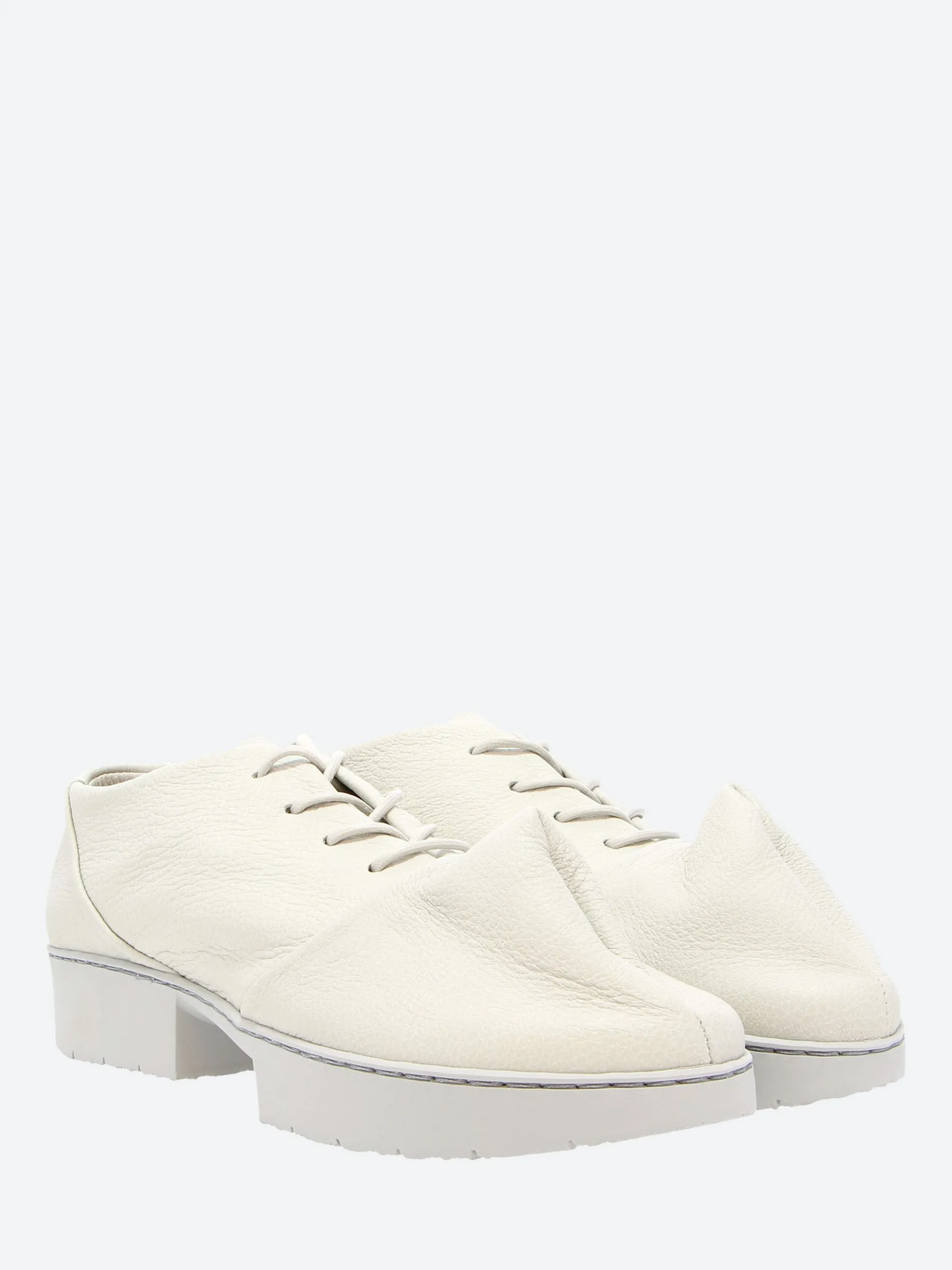 Trippen Haze lace-up shoe crafted from white leather. The upper acquires its form through the crease at the toe box.