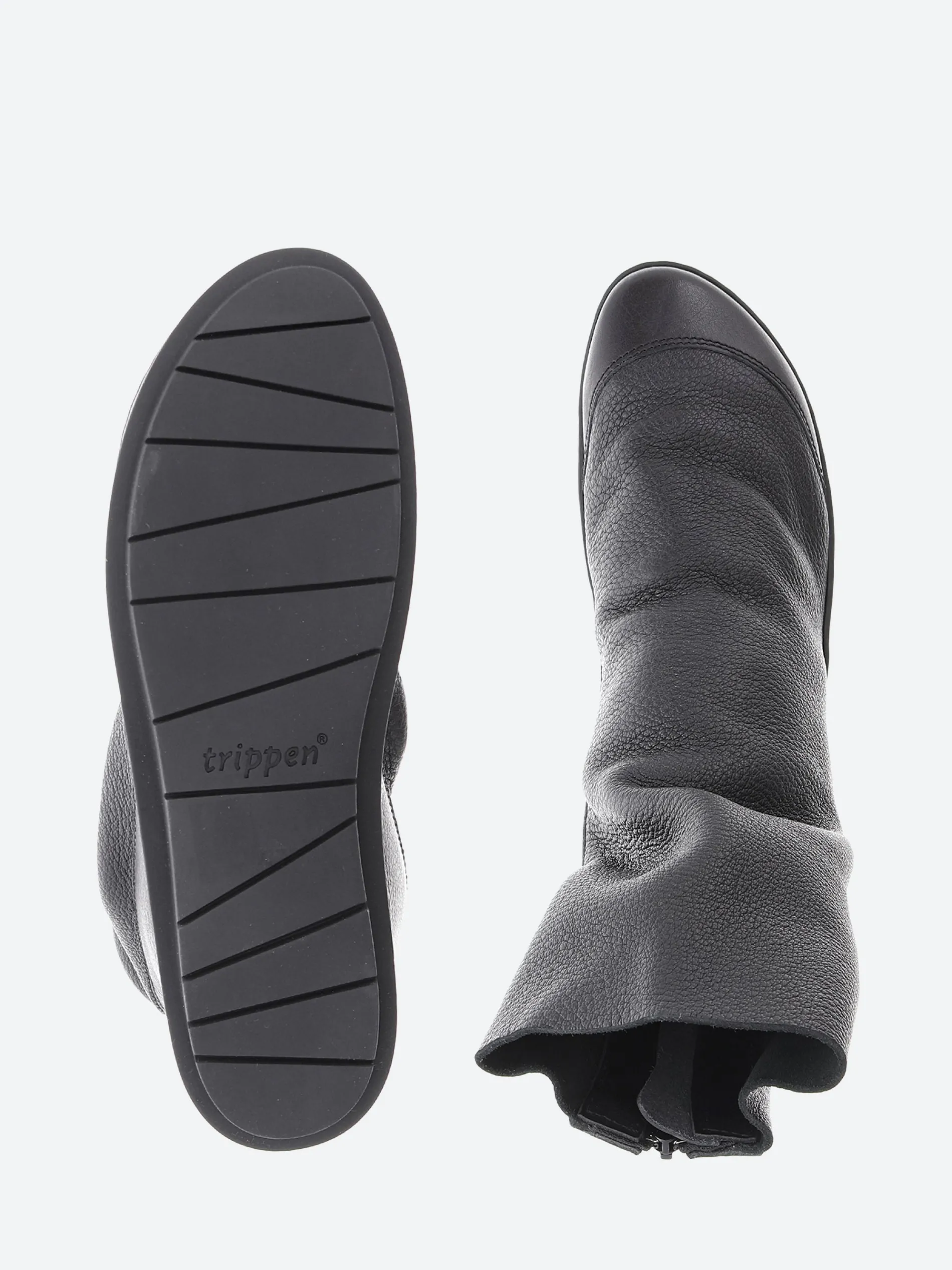 Trippen Shovel ankle boot with subtle draping effect. The robust leather sections on the heel and toe provide a stable framework for the softer leather of the upper.