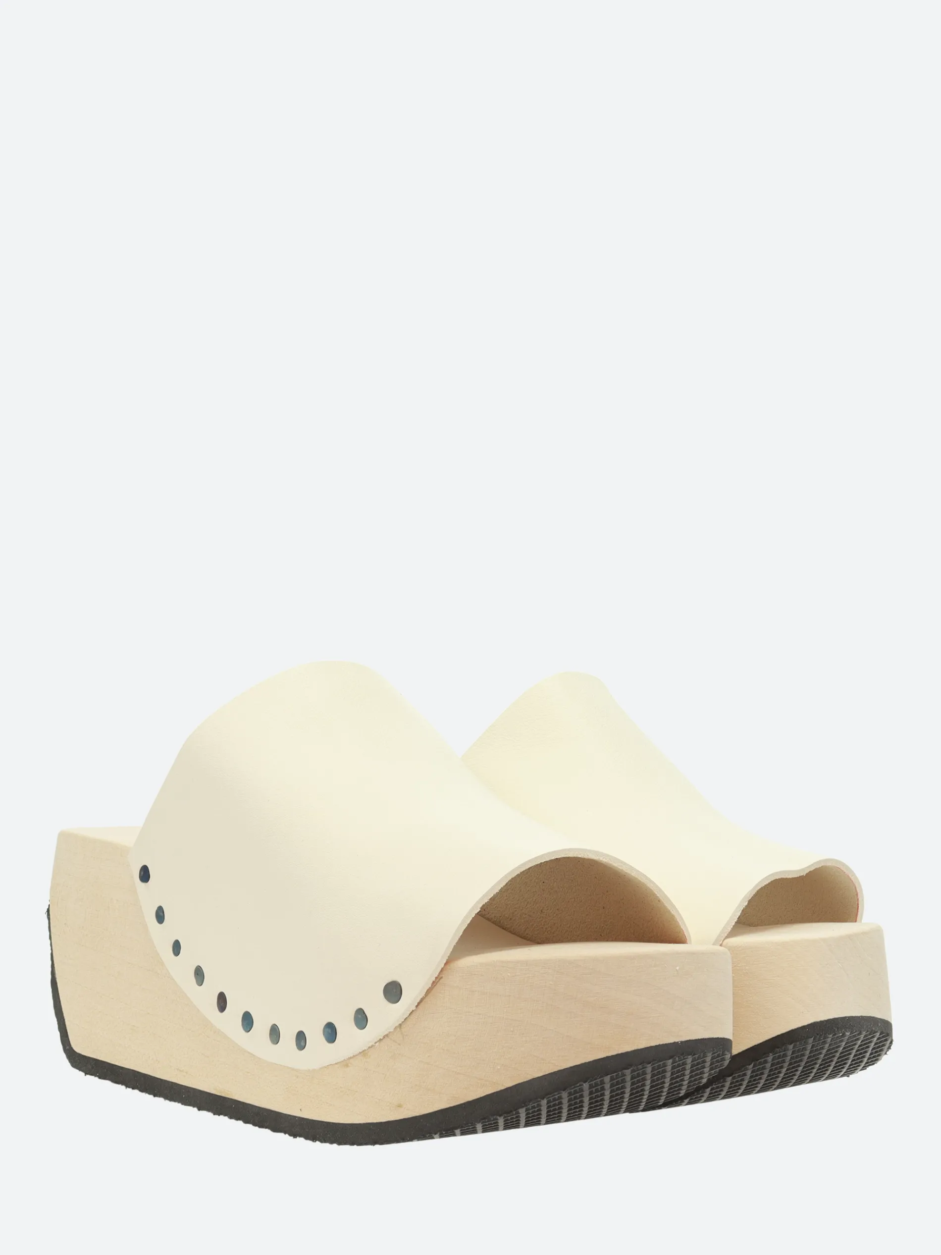 - Wood wedge sole with rubber tread