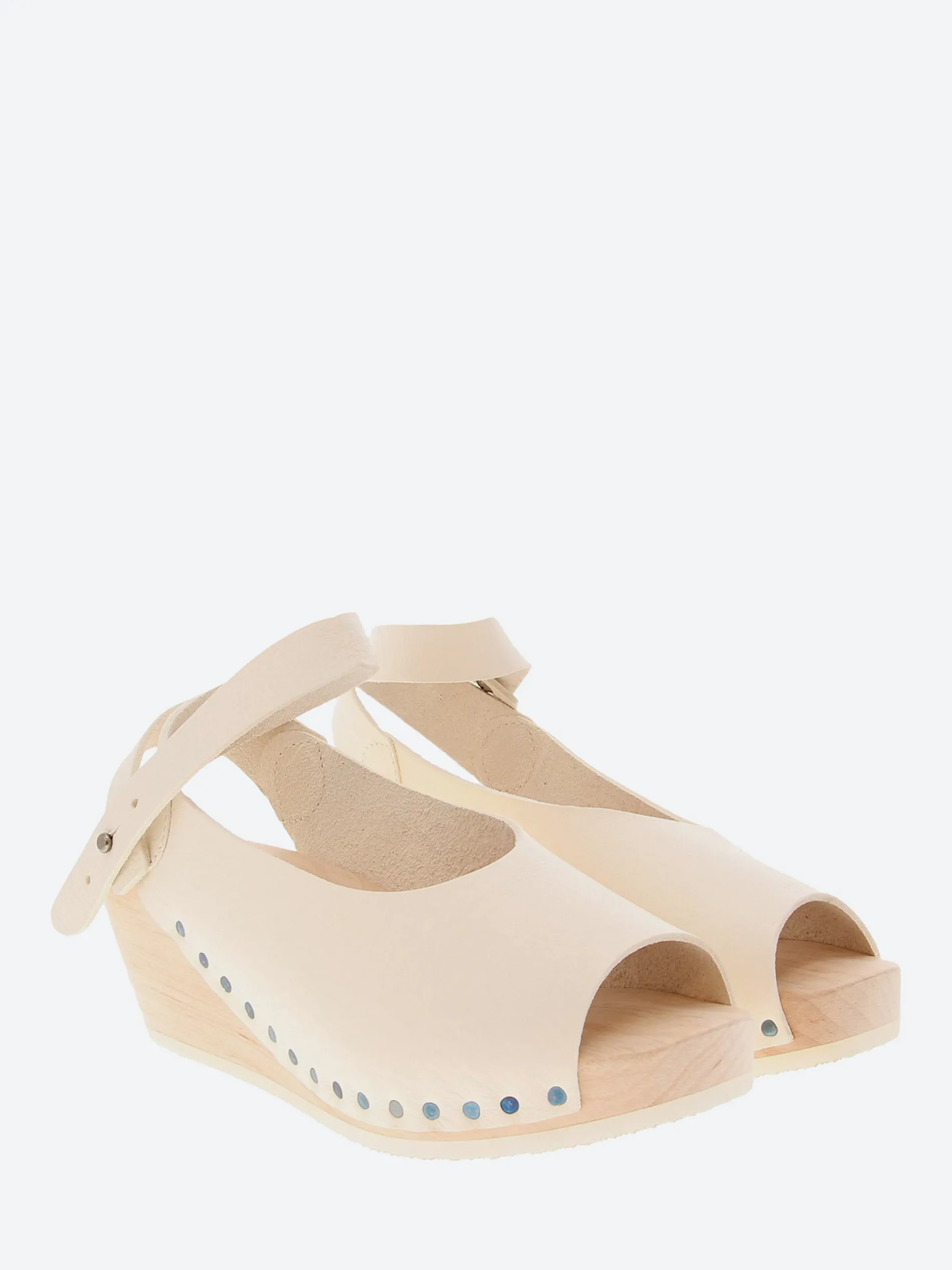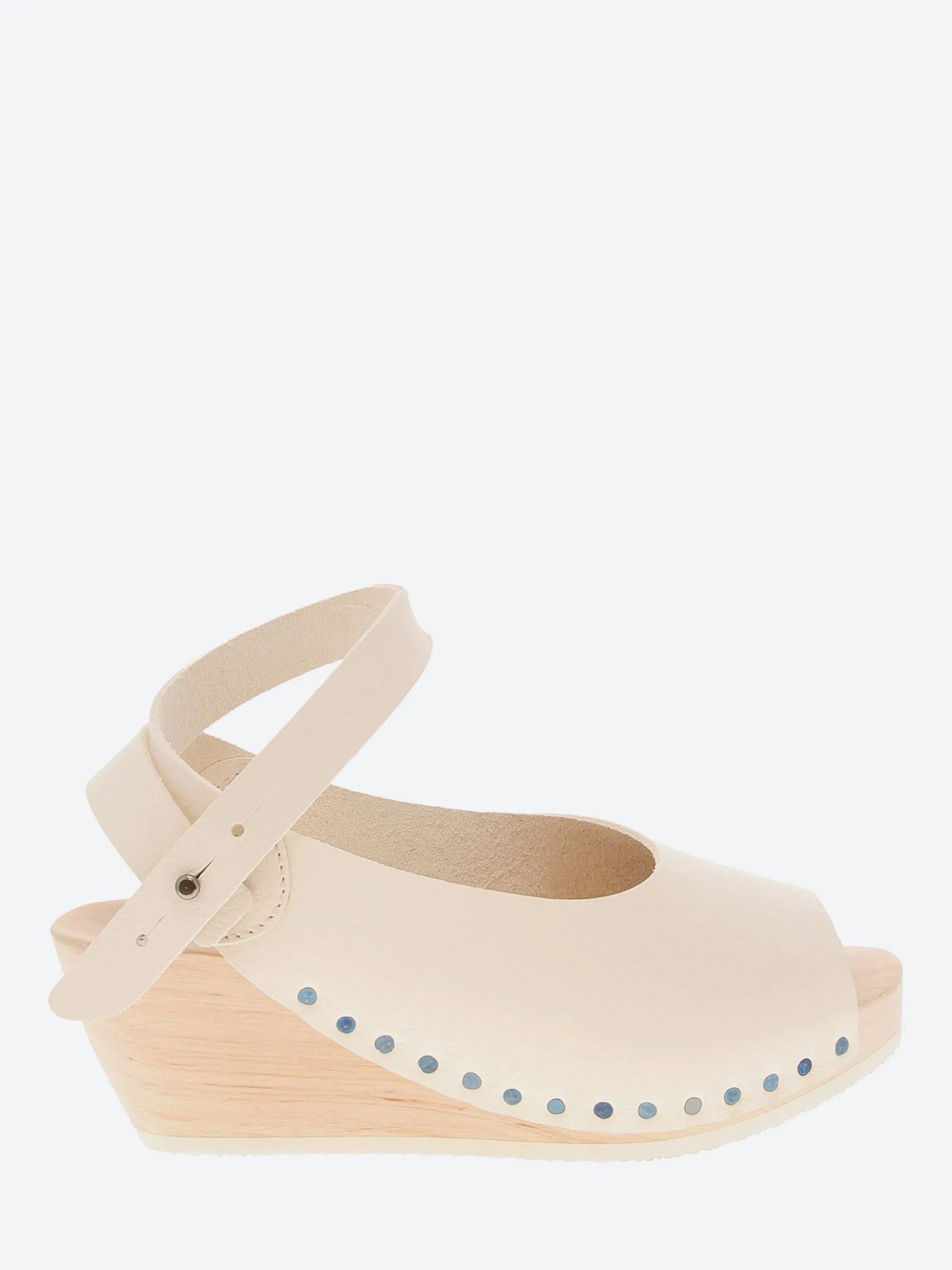 - Wood wedge sole with rubber tread